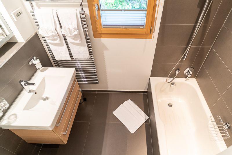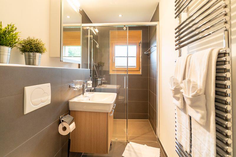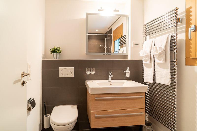 Das Apartment im 1. Obergeschoss verfügt über zwei Bäder, eins mit Dusche und das ander mit Wanne. 3 Zimmer bieten komfortablen Platz für 6 Personen, wobei ein Zimmer über ein Doppelbett und die anderen beiden Zimmer über Einzelbetten verfügen, die aber auch zusammen gestossen werden können.