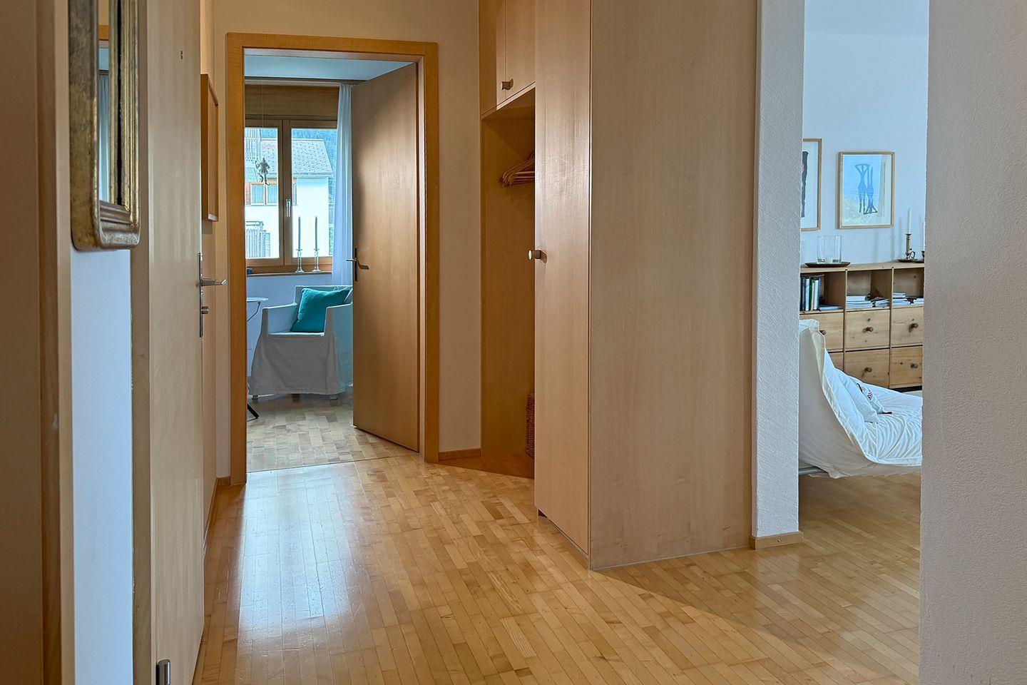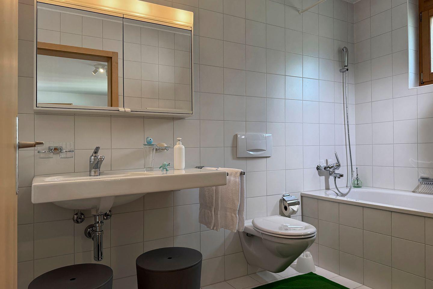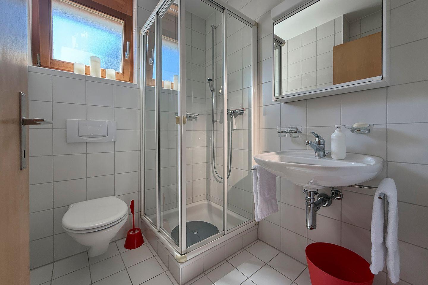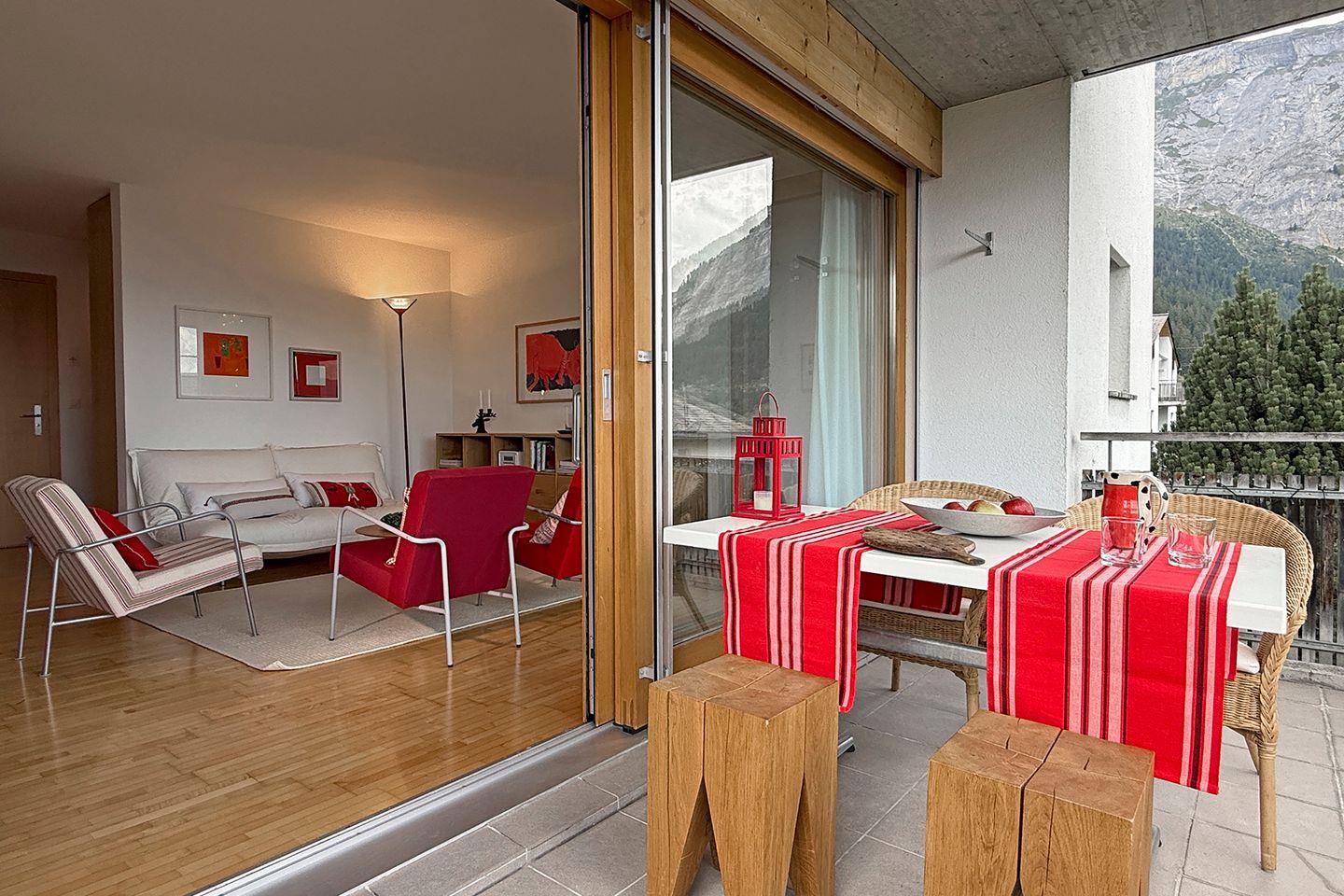 Nebst dem offenen Wohnraum und Essbereich mit direktem Zugang zum Balkon, welcher Ihnen einen einzigartigen Ausblick auf das Dorf Flims, den nebenliegenden Wald und die umliegende Bergwelt bietet, finden sich insgesamt 3 Schlafzimmer und 1 Badezimmer mit Dusche, WC und Lavabo sowie 1 Ensuite Bad.