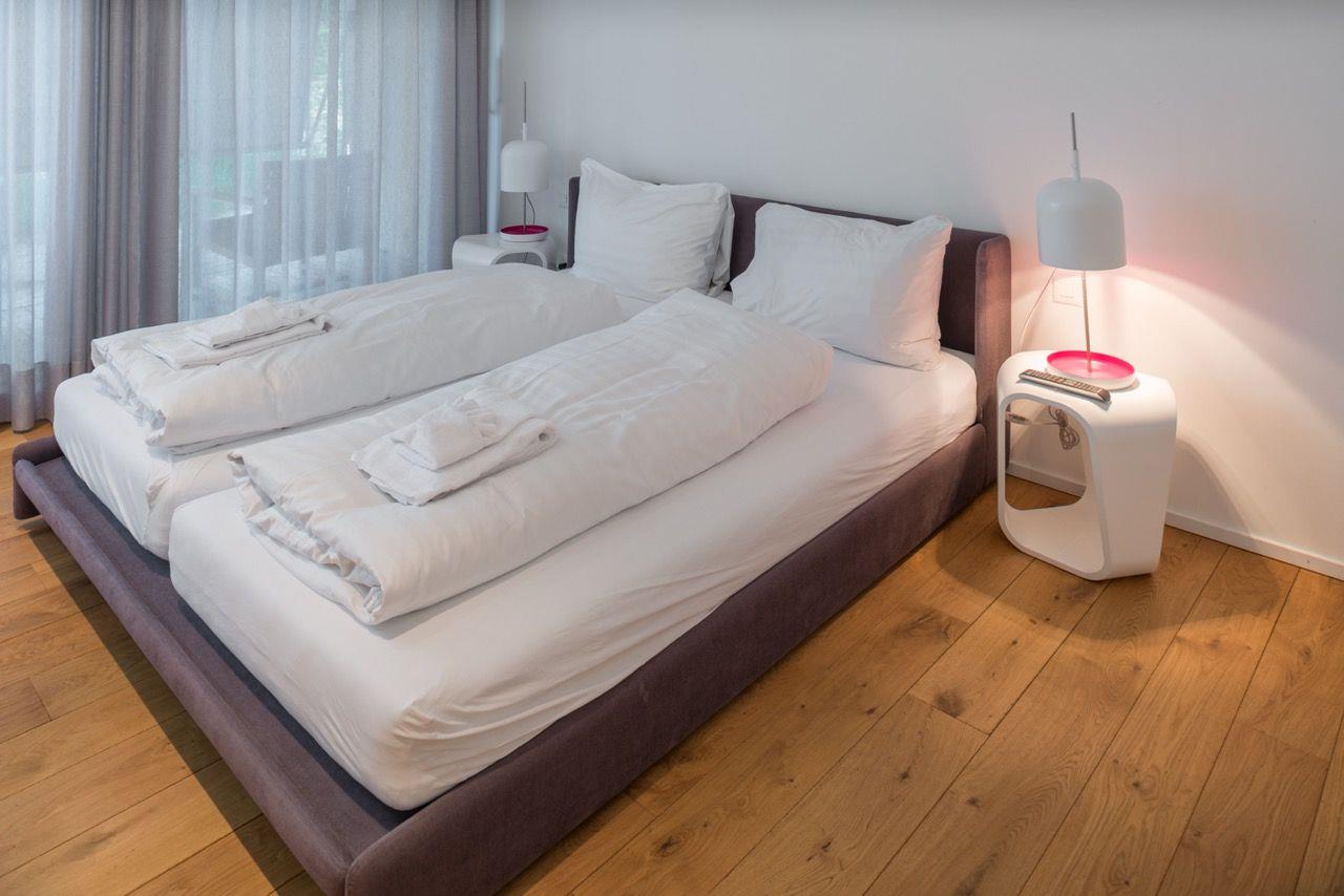 4.5 Zimmer- Suite mit 240qm Wohnfläche, verfügbar für max. 6 Erwachsene und 2 Kinder. Die Wohnung befindet sich im Hauptteil und liegt im 4. Obergeschoss mit Blickrichtung Nordost und bietet fantastische Aussicht auf die umliegende Bergwelt (Crap Sogn Gion, Tschingelhörner und Flimserstein).