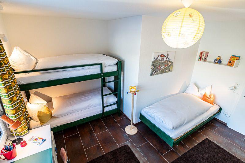 Die Casa Surmir Ferienwohnung bietet Platz für insgesamt 4 Erwachsene und 3 Kinder. Es befinden sich insgesamt 3 Schlafzimmer im Apartment, zwei Zimmer jeweils mit Doppelbett und ein Kinderzimmer mit einem Stock- und einem Einzelbett. Neben der offenen Küche und dem gemütlichem Wohnzimmer finden Sie ausserdem ein Familienbadezimmer mit einer Dusche, einer Badewanne und zwei Lavabos. Ausserdem steht Ihnen zusätzlich ein Gäste-WC zur Verfügung. Die Wohnung eignet sich nicht für mehr als 4 Erwachsene.