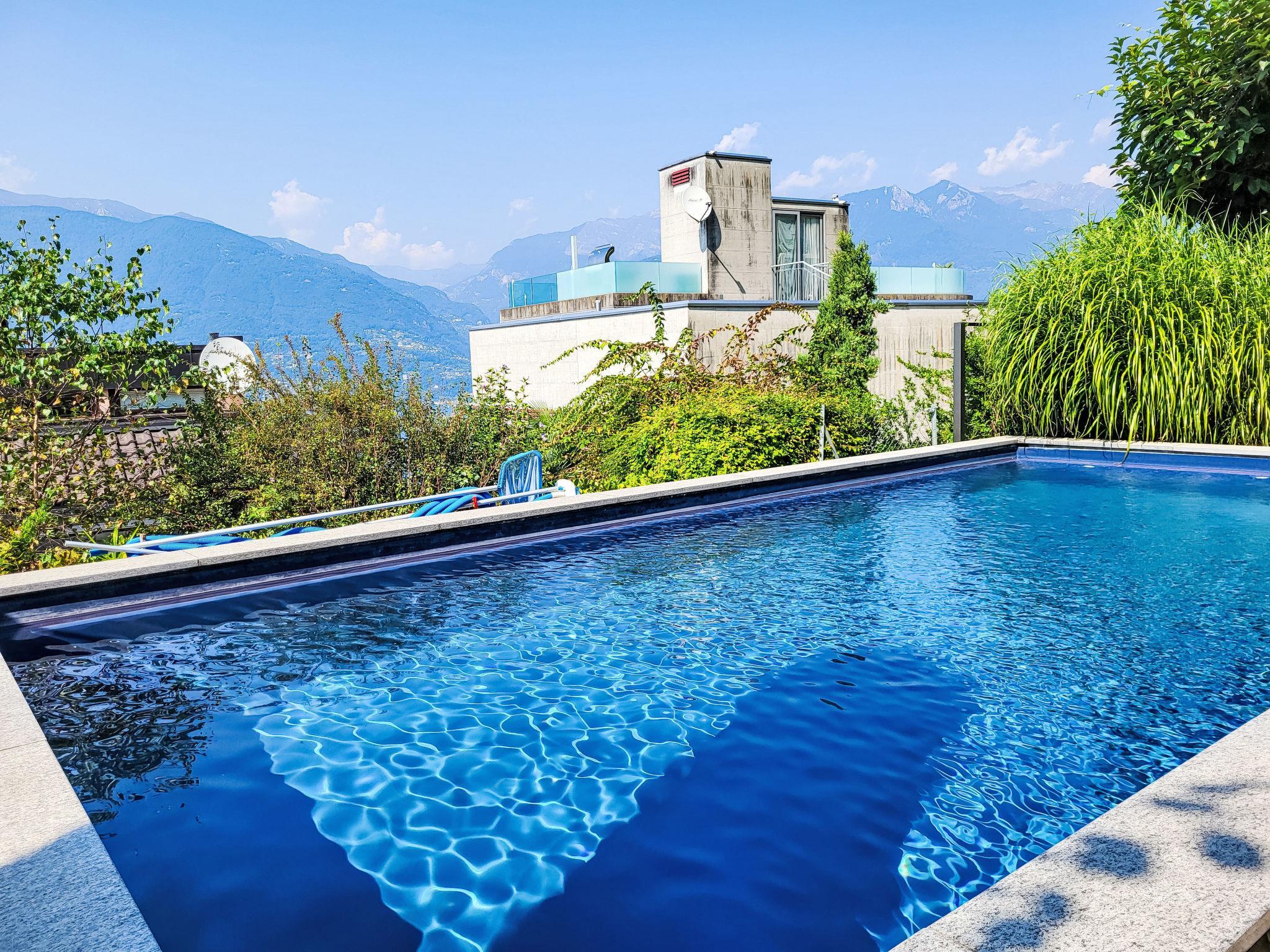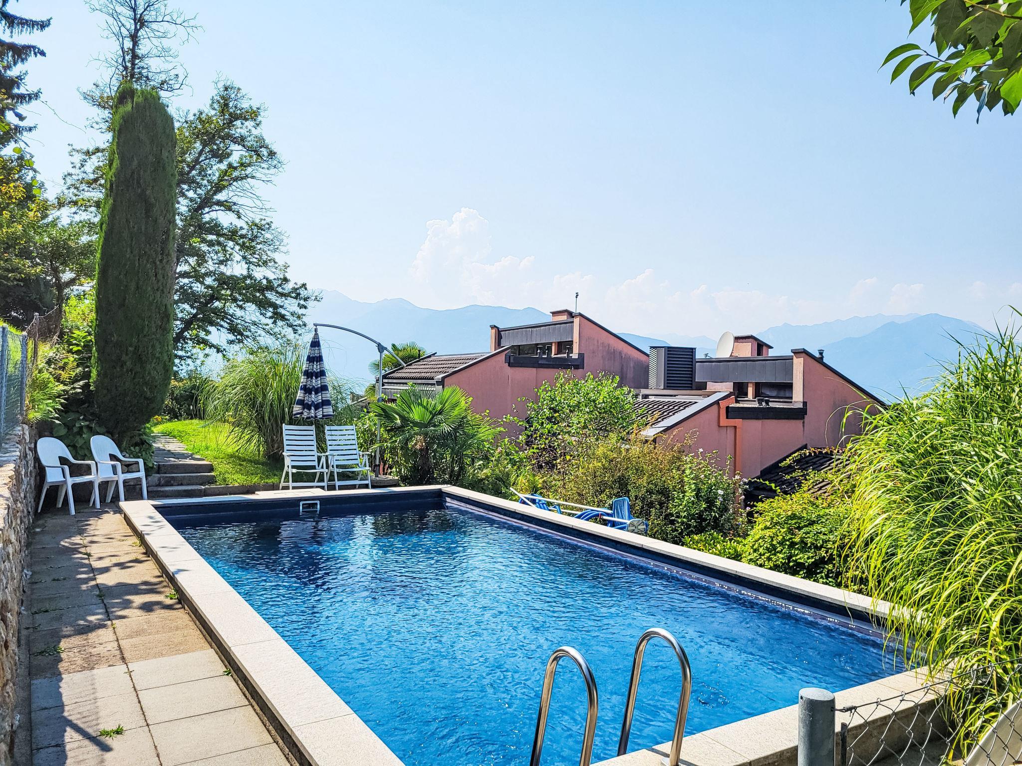 Gambarogno - Fosano 15 km from Locarno: Beautiful, comfortable hillside complex "La Perla", 3 storeys, terraced. On the outskirts, in a quiet, sunny, elevated position, 700 m from the lake, north-west facing position. For shared use: swimming pool angular (4 x 9 m, depth 110 - 170 cm, seasonal availability: 15.Apr. - 30.Sep.) with internal staircase. Outdoor shower, pool maintenance by the owner/gardener. In the house: central heating system. 100 m long narrow motor access to the grounds. Stepped path (50 steps) to the house. Parking space n 3b. Grocery 1 km, restaurant 800 m, bus stop "Piazzogna Belsito(Linie 330,352)" 400 m, railway station "Cadenazo Stazione S20" 12 km, sandy beach "SHAKA Beach, Vira" 2.1 km, thermal baths "Termali & Salini Locarno", bathing lake "Lago Maggiore". Nearby attractions: Ascona - Locarno, Naturschutzgebiet Bolle di Magadino, Isole di Brissago, Castelli di Bellinzona, Botanischer Garten, Gambarogno. Well-known lakes can easily be reached: Lago Maggiore, Lago di Lugano, Lago di, Como IT, Lago di OrtaIT, und alle die, vielen Bergseen. Hiking paths: Monte Gambarogno, Vallemaggia, Centovalli, Onsernone, Centovalli, Valle Verzasca etc.