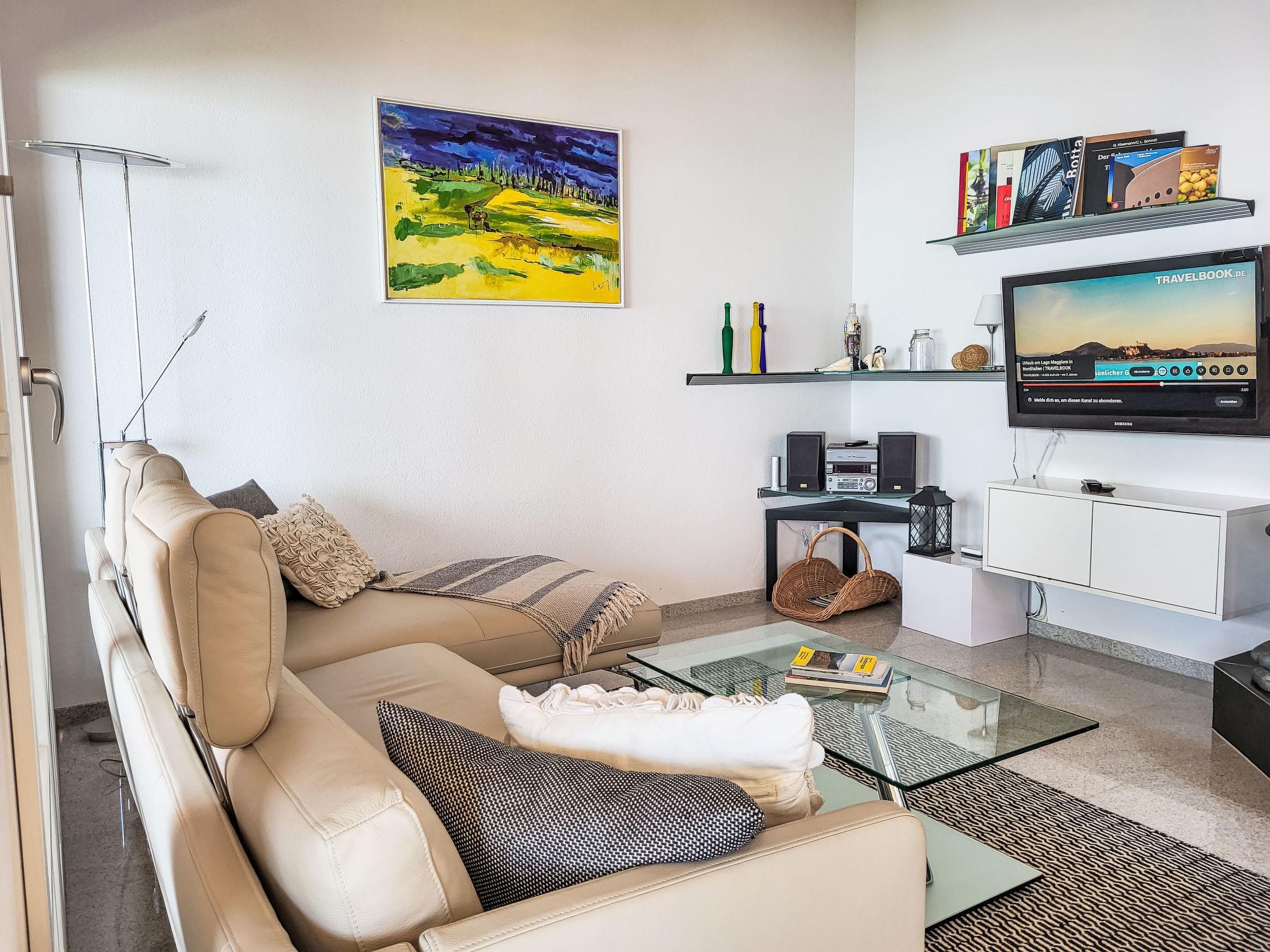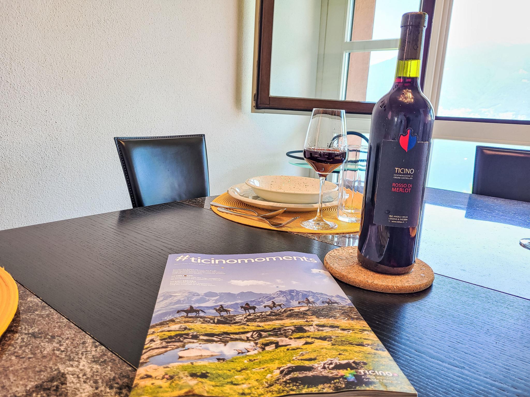 "La Perla", 4-room apartment on 3 levels, north-west facing position. Spacious and bright, partly with sloping ceilings, comfortable and beautiful furnishings: open living/dining room with open-hearth fireplace, dining table, TV and flat screen. Exit to the balcony. Large kitchen (oven, dishwasher, 4 ceramic glass hob hotplates, toaster, kettle, electric coffee machine, Capsules for coffee machine (Nespresso (mitnehmen) extra) with dining table. On the lower ground floor: entrance hall. Mezzanine. Exit to the patio, to the swimming pool. Mezzanine with shower/WC. Upper floor: mezzanine with 2 beds (90 cm, length 200 cm). Mezzanine with shower/WC. 2nd upper floor: gallery with sloping ceilings with 1 sofabed (120 cm, length 190 cm). With sloping ceilings, 1 double bedroom with 1 double bed (2 x 80 cm, length 200 cm). Parquet floors, natural stone floors. Balcony 12 m2, patio. Balcony furniture, barbecue, deck chairs (2), sitting area, box-room. Panoramic view of the lake, the mountains and the valley. Facilities: washing machine, dryer. Internet (WiFi, free). Parking space n 3b. Please note: non-smokers only. NL-00012920