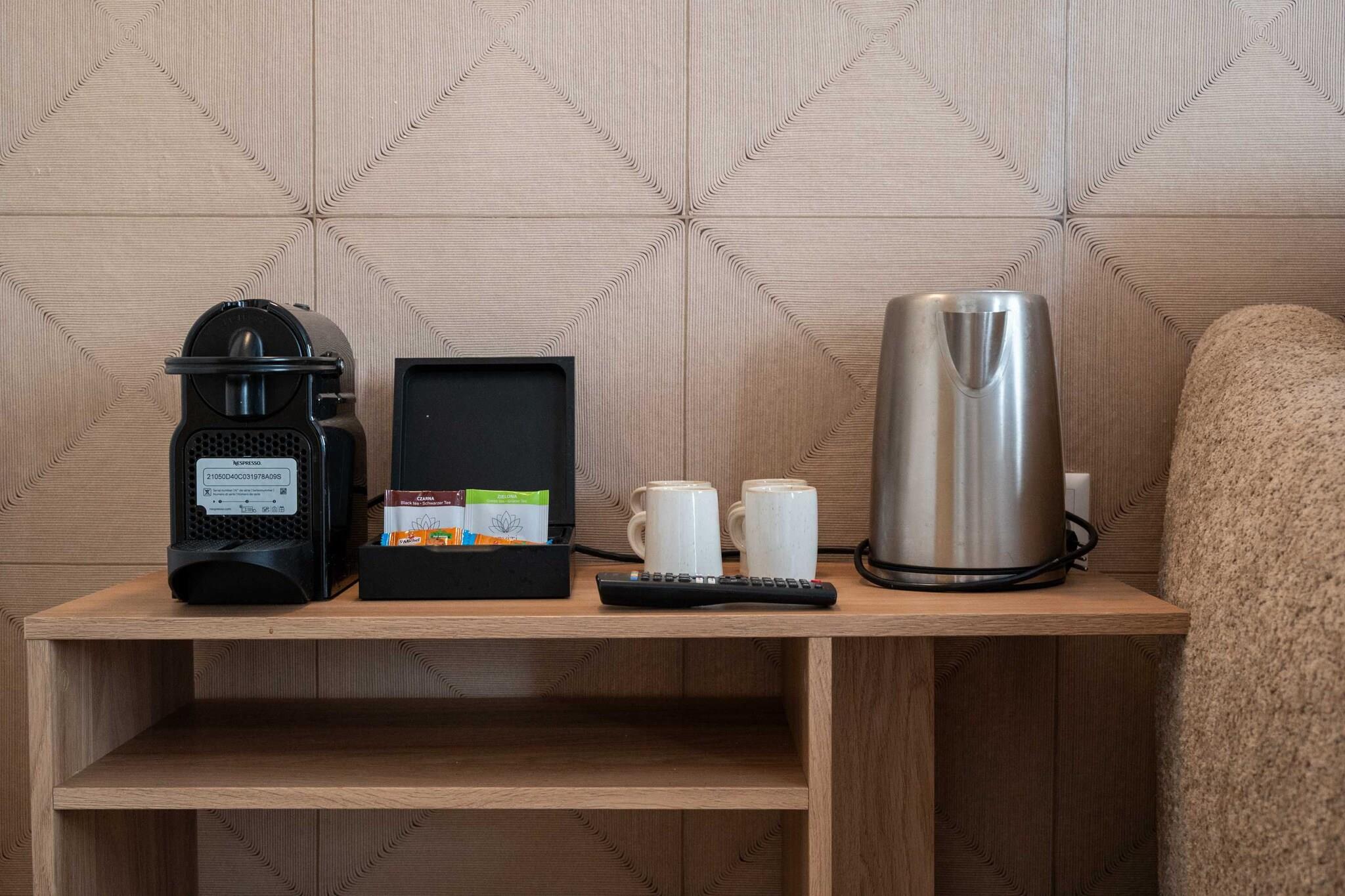 On the 3rd floor: (Living room(double sofa bed, TV(flatscreen)), Kitchen(hob, coffee machine, microwave, fridge, electric hot plates, dishes and cutlery, Cooking basics, Wine glasses), bedroom(single bed, single bed, iron, Towels incl., Sheets incl.), bathroom(shower, toilet, hairdryer, shampoo, body soap, hot water))