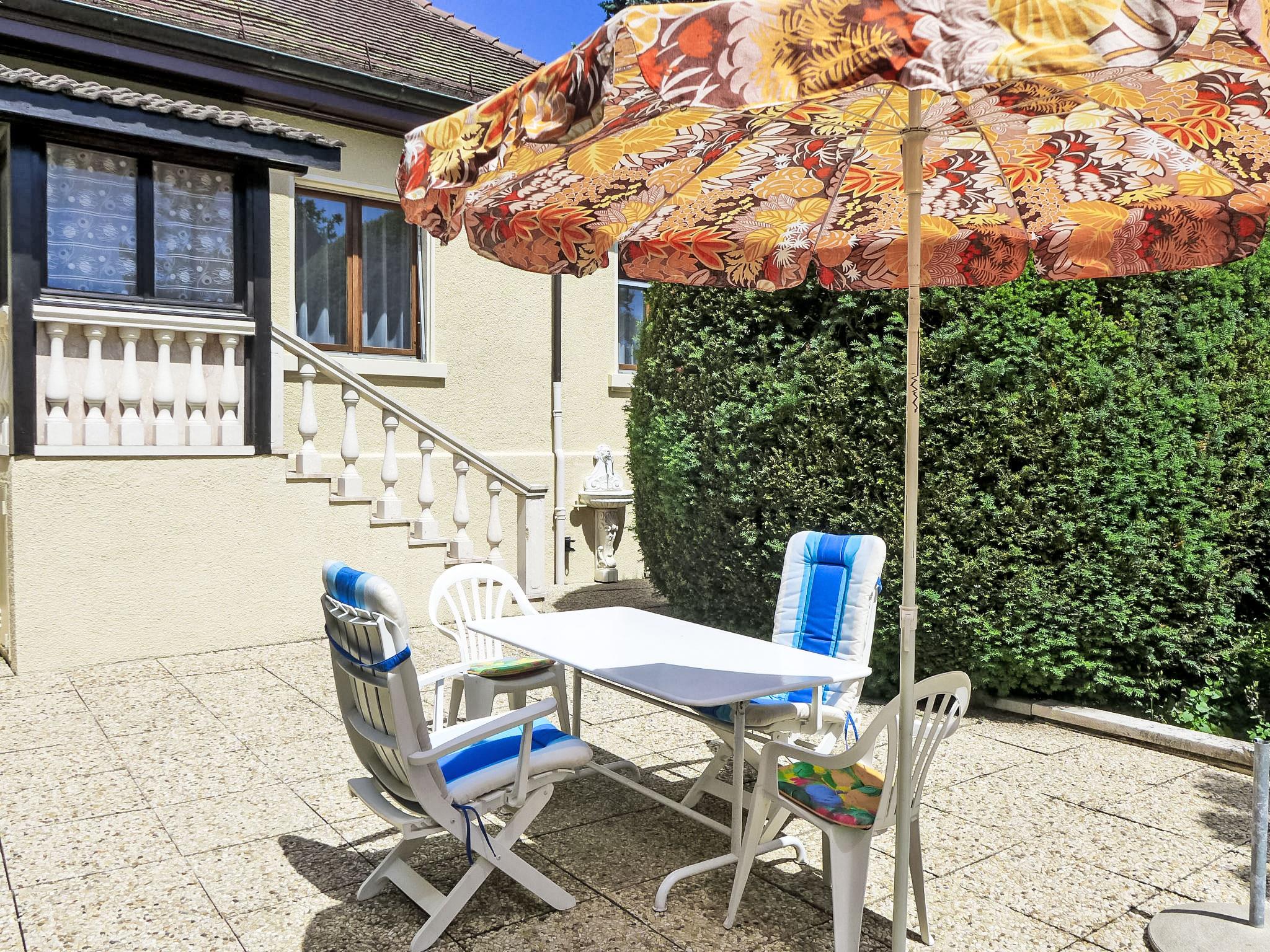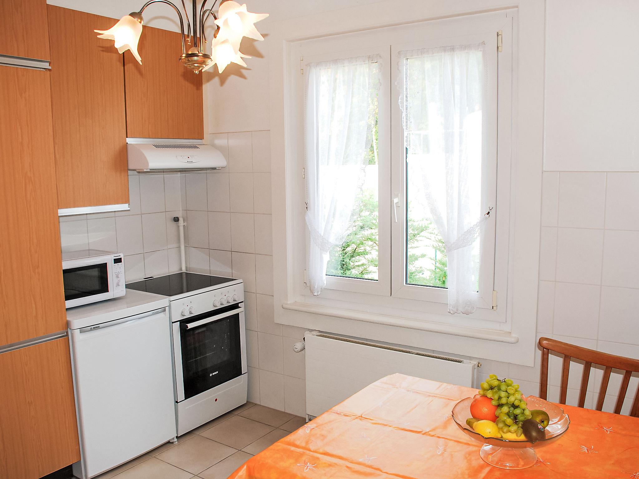 Genthod 7 km from Genève: Small, comfortable single-family house "5, chemin de la Pralay". In the centre of Genthod, in the residential district, 1.5 km from the lake. For shared use: garden 150 m2. In the house: washing machine. Parking at the house. Shop 3.5 km, grocery 50 m, restaurant 300 m, bakery, café 50 m, bus stop 300 m, railway station "Creux-de-Genthod" 600 m, thermal baths "Le Country Club" 1.5 km, bathing lake "Les Bains de Saugy" 1.5 km. Golf course (9 hole) 4.1 km, tennis 1.5 km, sports centre 1.5 km. Nearby attractions: Géneve 7 km, Lausanne 63 km, Montreux 93 km, Genève Aeroport 4.2 km. Well-known lakes can easily be reached: Lac Léman. Please note: not suitable for small children. The owner lives on the same property. Airfield close by 5 km from the property.
