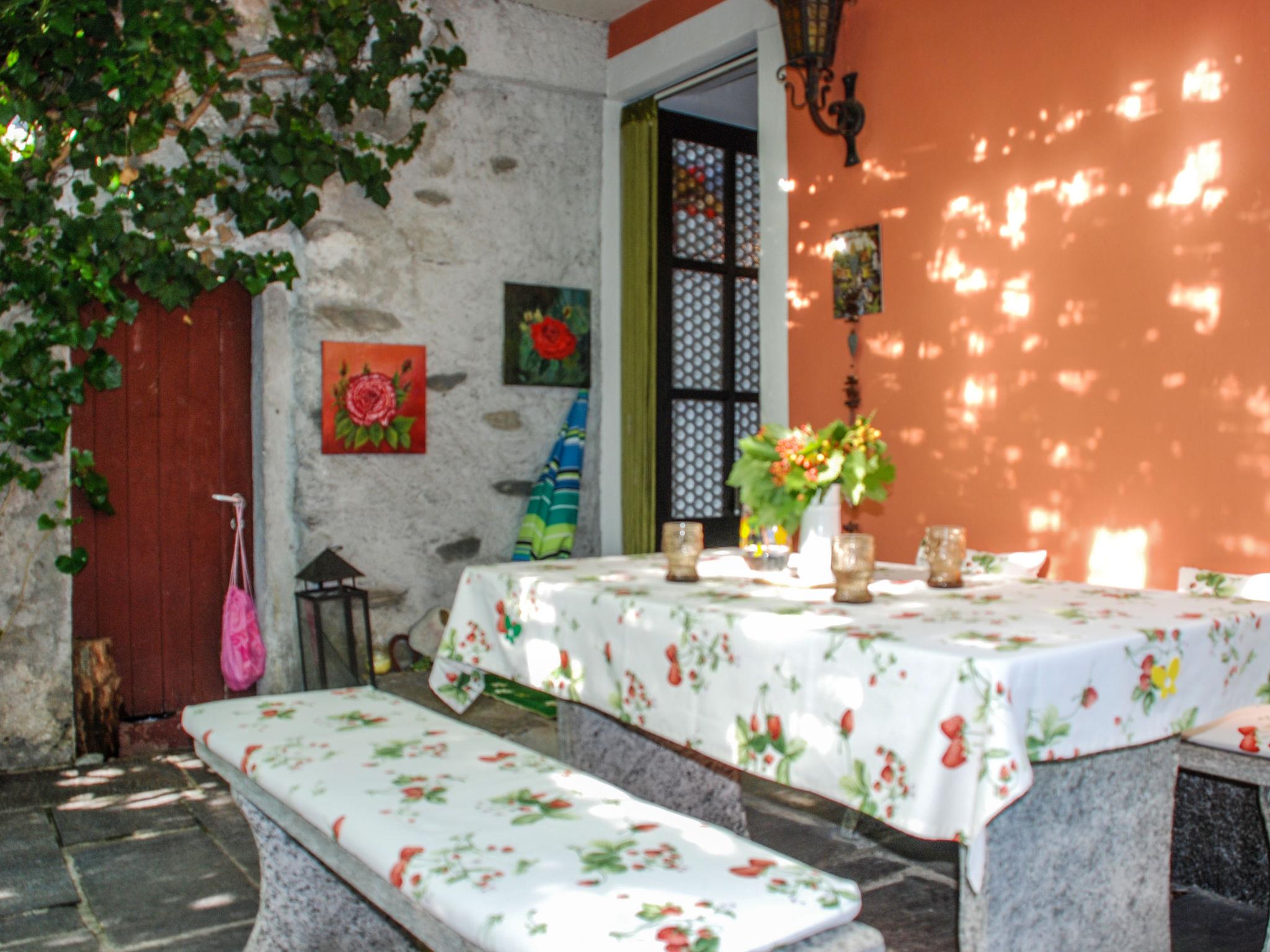 "Verzaschina", 2-room apartment 45 m2 on 2 levels. Simple and cosy furnishings: kitchen-/living room (3 hot plates, oven, toaster, kettle, microwave, electric coffee machine, Capsules for coffee machine (Nespresso (mitnehmen) extra) with open-hearth fireplace and radio. Exit to the patio. Shower/WC. Heating. Upper floor: open living/sleeping room with 1 sofabed (90 cm, length 200 cm), cable TV, flat screen and radio. Exit to the balcony. 1 large double bedroom with 1 double bed (2 x 90 cm, length 200 cm). Patio partly roofed. Deck chairs (2). Facilities: Internet (WiFi, free). Please note: not suitable for small children not suitable for children under 10 years. Non-smokers only. Maximum 1 pet/ dog allowed. NL-00007349