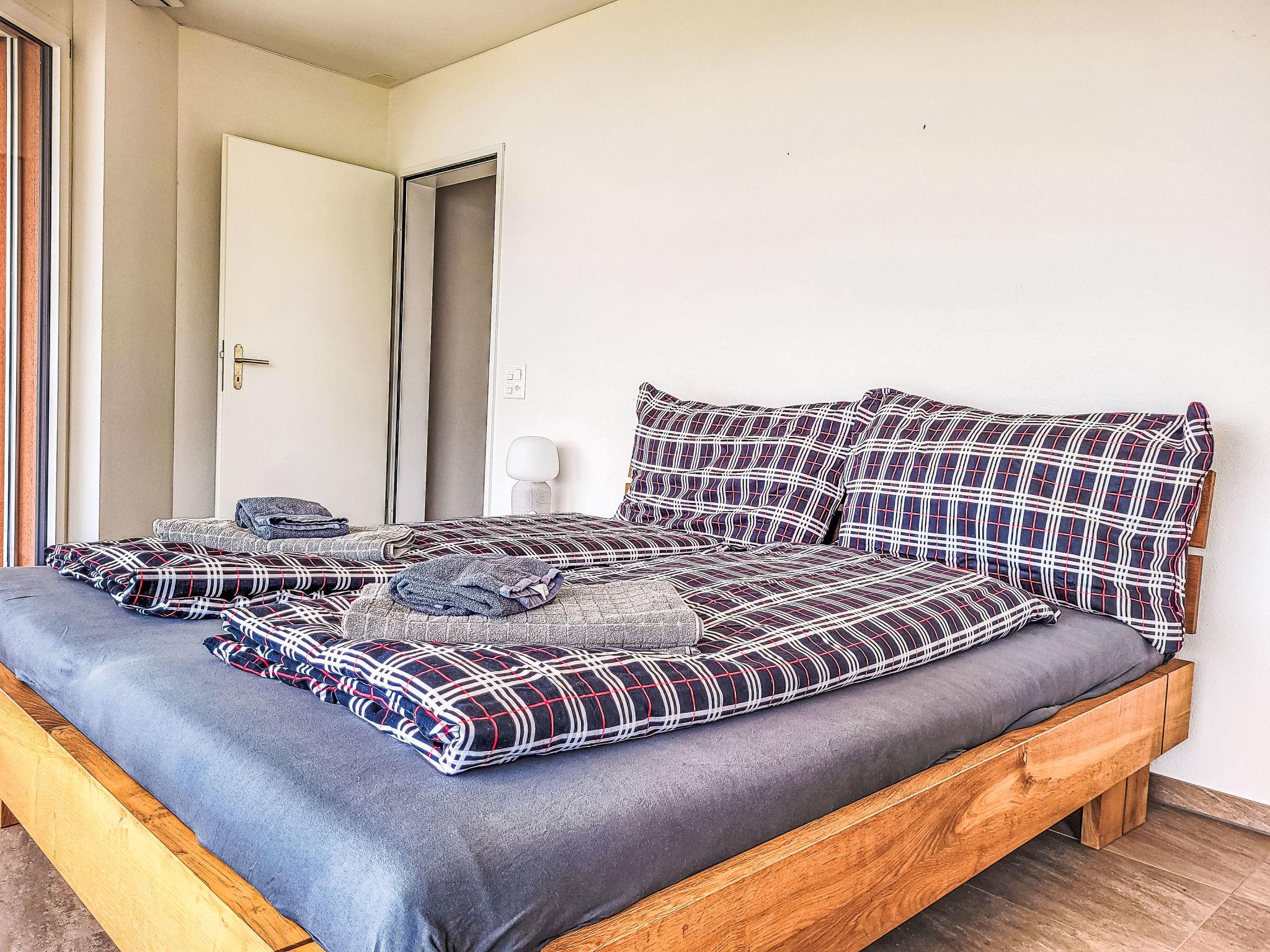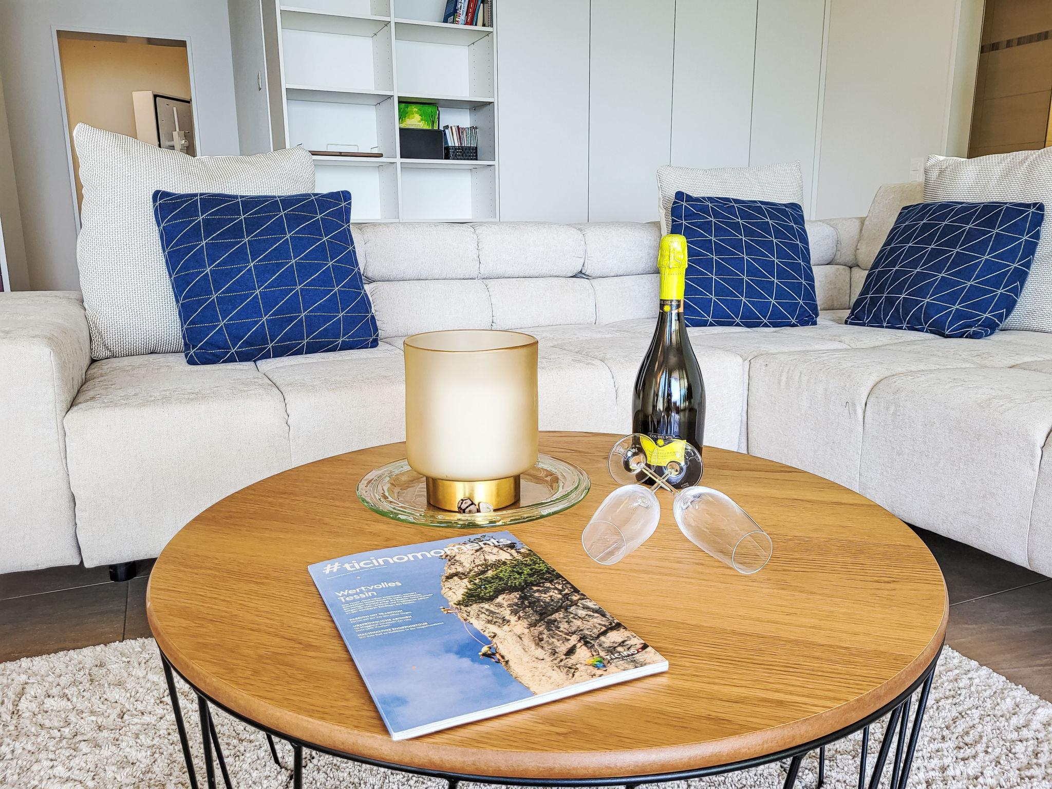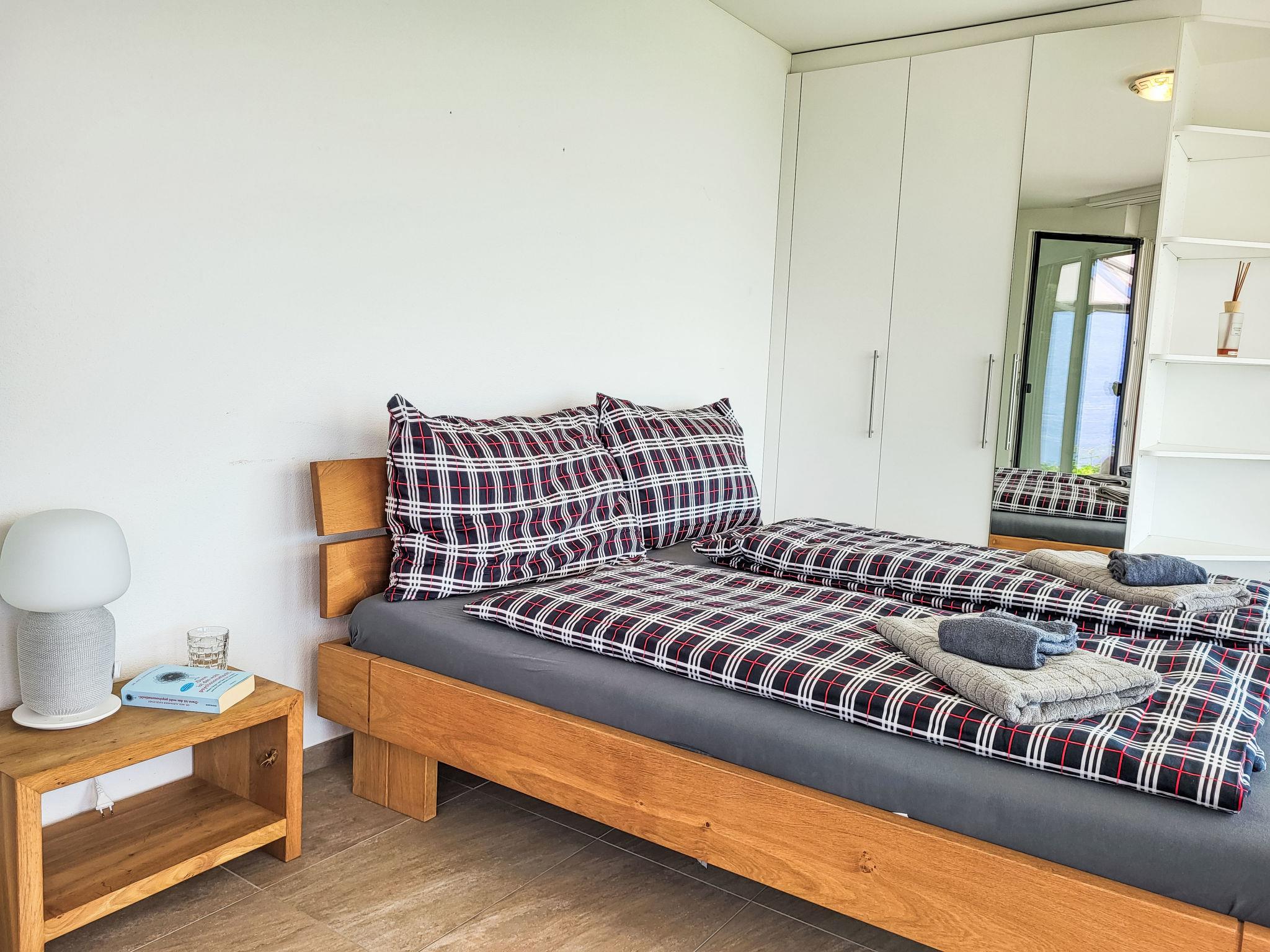"Residenza Solaria Endless View", 3-room apartment on the ground floor. Object suitable for 2 adults + 2 children. Spacious and bright, comfortable and modern furnishings: open living/dining room with panoramic window with TV and international TV channels. Exit to the terrace. 1 double bedroom with panoramic window with 1 double bed (2 x 90 cm, length 200 cm). Exit to the terrace. 1 double bedroom with 2 beds (90 cm, length 200 cm). Open kitchen (oven, dishwasher, 4 ceramic glass hob hotplates, toaster, kettle, electric coffee machine, Capsules for coffee machine (Nespresso) extra). Bath/shower/WC. Underfloor heating. Natural stone floors. Large patio. Terrace furniture, sitting area. Marvellous panoramic view of the lake, the mountains and the countryside. Facilities: washing machine, dryer, hair dryer. Internet (WiFi, free). Parking space n Interhome at the house. Please note: suitable for families. Non-smokers only. Maximum 1 pet/ dog allowed. NL-00012460