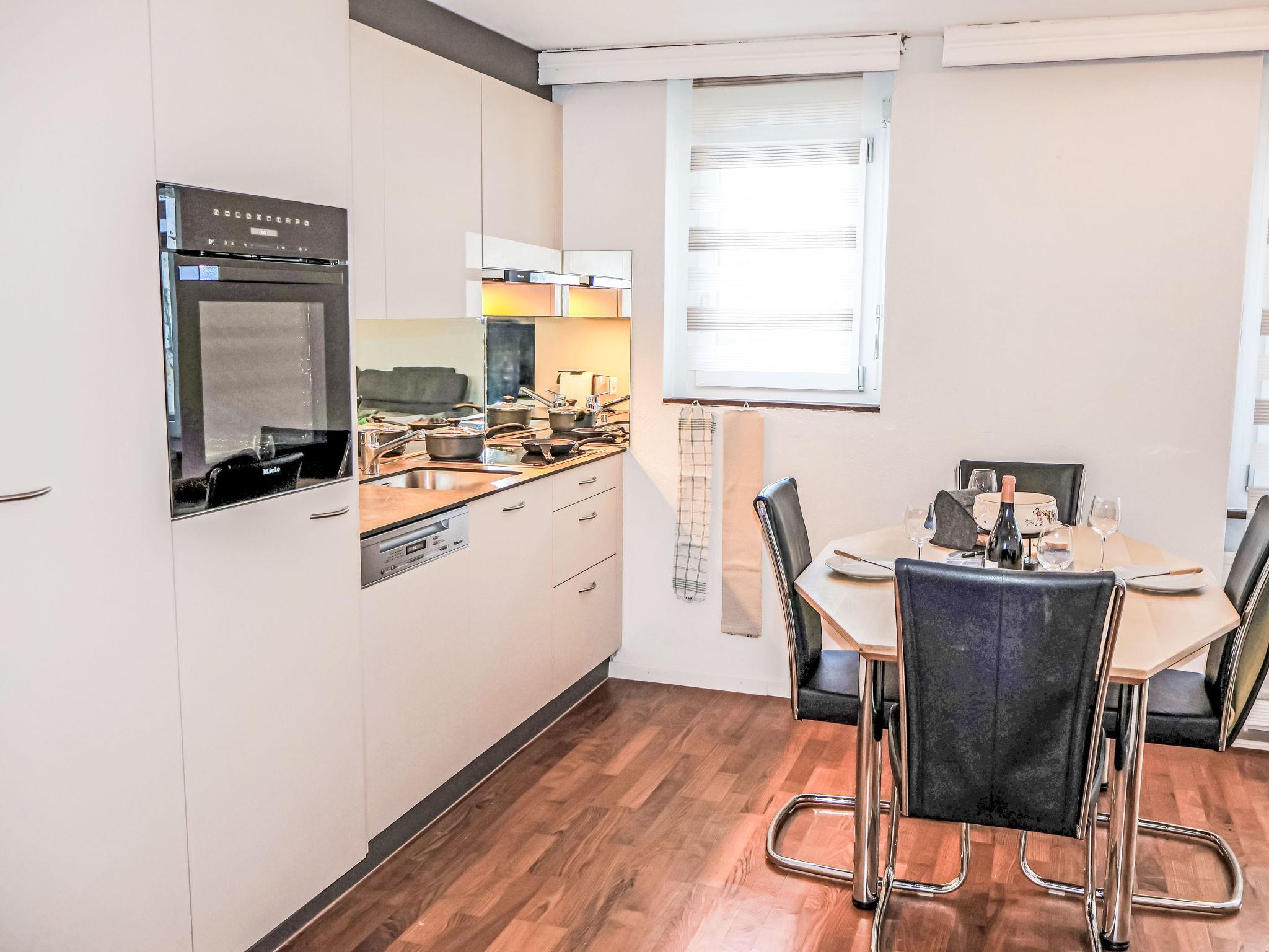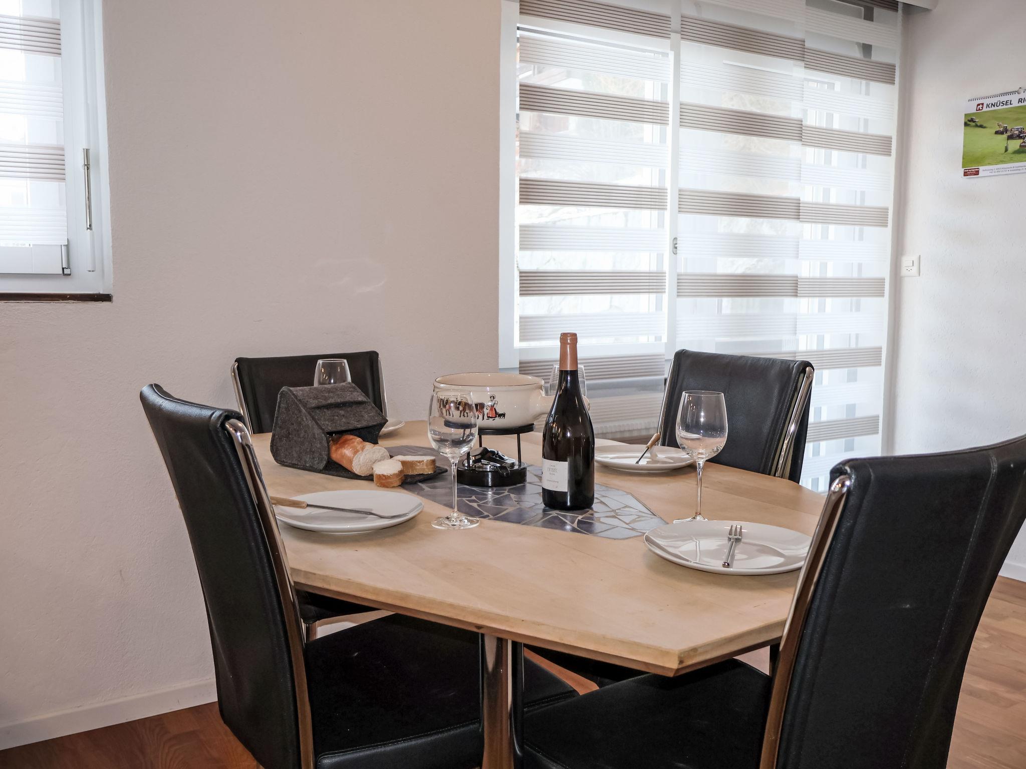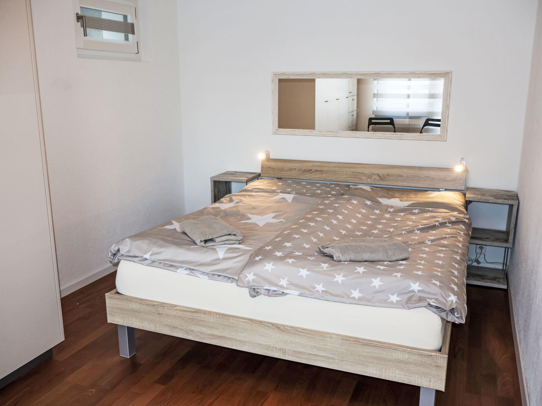 "Castello", 2-room apartment on 1st floor. Bright, tasteful and cosy furnishings: living/sleeping room with 1 double sofabed (160 cm, length 200 cm), dining table and digital TV. Exit to the balcony. 1 double bedroom with 1 double bed (160 cm, length 200 cm). Exit to the balcony. Open kitchen (oven, dishwasher, 4 ceramic glass hob hotplates, freezer, electric coffee machine, raclette grill, fondue Set (cheese)). Bath/WC. Heating. Parquet floors. Balcony. Balcony furniture. Side view of the mountains. Facilities: hair dryer. Internet (WiFi, free). Parking (1 car). Please note: non-smokers only.