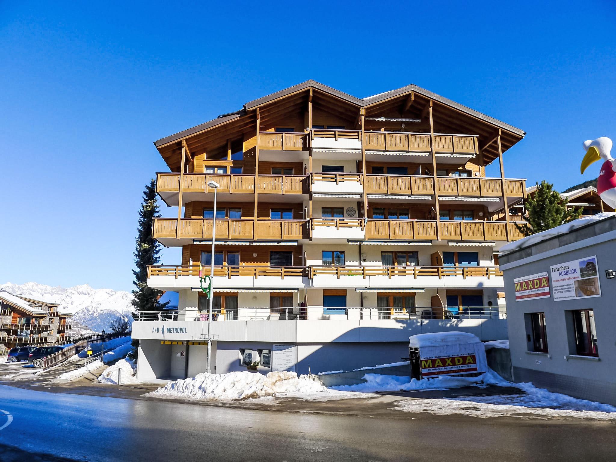 Comfortable apartment house "Metropol A", 5 storeys. In the centre of Grächen, in a central, sunny position, 100 m from the skiing area, located by a road. For shared use: park (fenced). Patio. In the house: lift, storage room for skis, central heating system, washing machine, tumble dryer (for shared use, extra), drying room. Motor access to the house. Communal covered parking. Shop 100 m, grocery, restaurant 50 m, bar, café 100 m, bus stop 50 m. Tennis 300 m, chair lift, skisport facilities 100 m, ski rental, ski school 100 m, ice rink 300 m, children's playground 500 m.