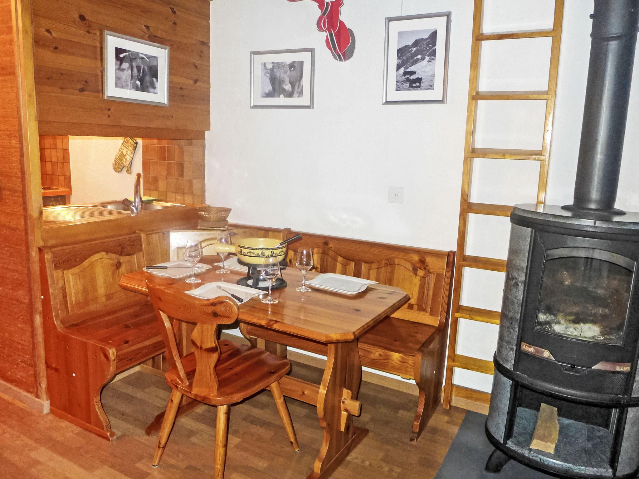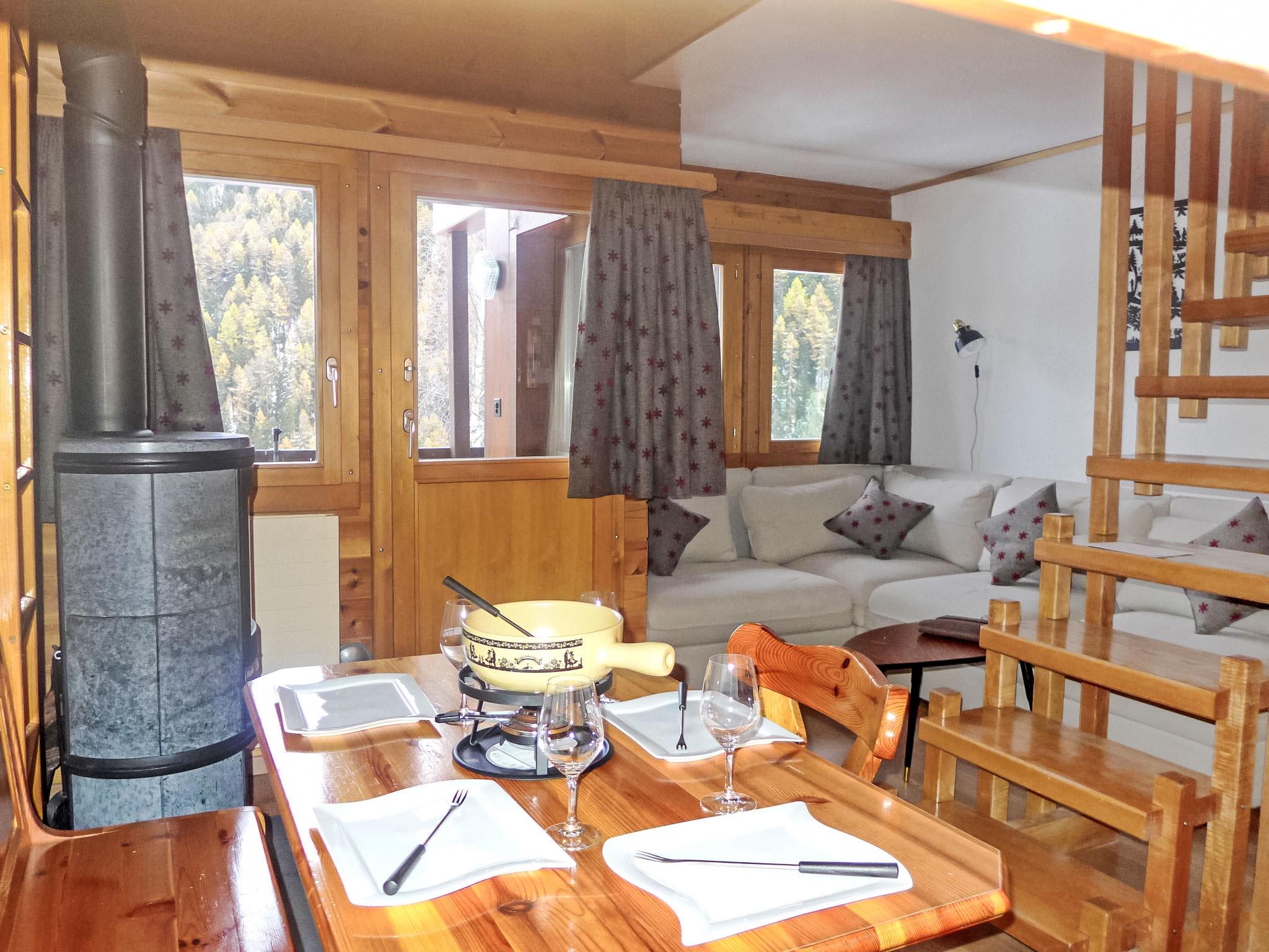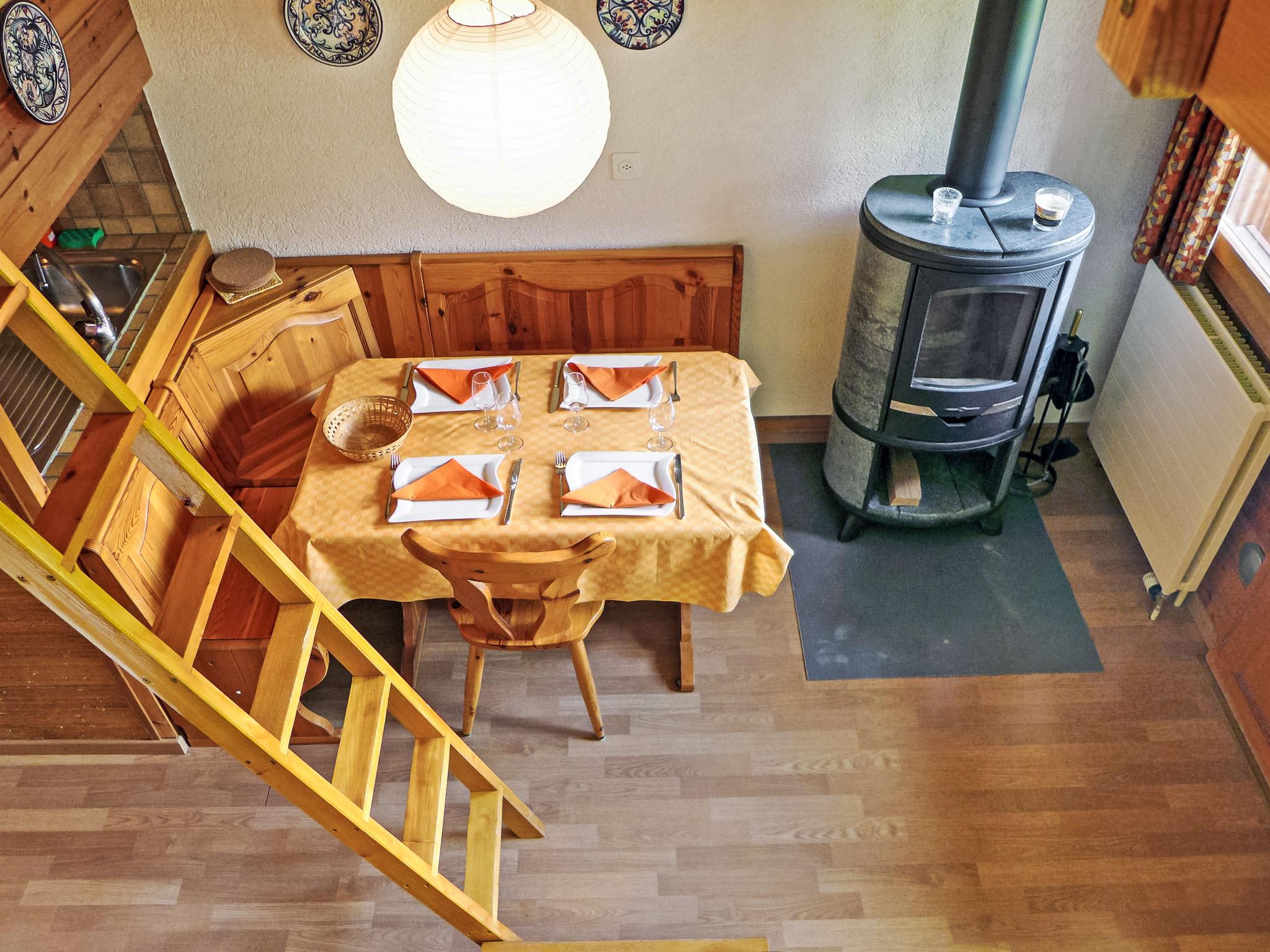 "Tarcianne Apt A6", 2-room apartment 40 m2 on 2 levels on 1st floor. Partly renovated in 2022, simple and practical furnishings: living/dining room with Scandinavian wood stove, dining table and cable TV. Exit to the balcony. Small, open kitchen (4 hot plates, oven, dishwasher, electric coffee machine, Capsules for coffee machine (Nespresso), raclette grill, fondue Set (chinoise, cheese)). Bath/WC. Upper floor: (open staircase), 1 room with 1 double bed. Exit to the balcony. (ladder) gallery with 2 beds. 2 balconies. Balcony furniture. Very beautiful view of the mountains and the countryside. Facilities: Internet (WiFi, free). Garage space n A6. Please note: not suitable for small children. Non-smokers only. Instead of an enclosed bedroom, some sleeping areas are located in an open-plan area (gallery, alcove, etc.).