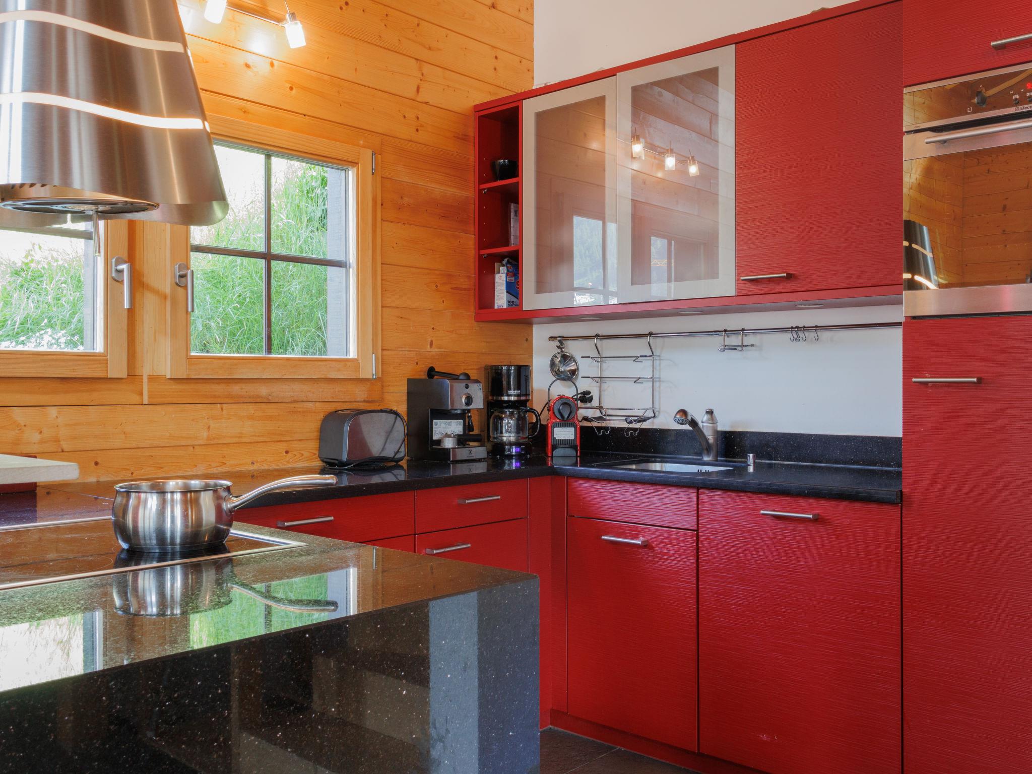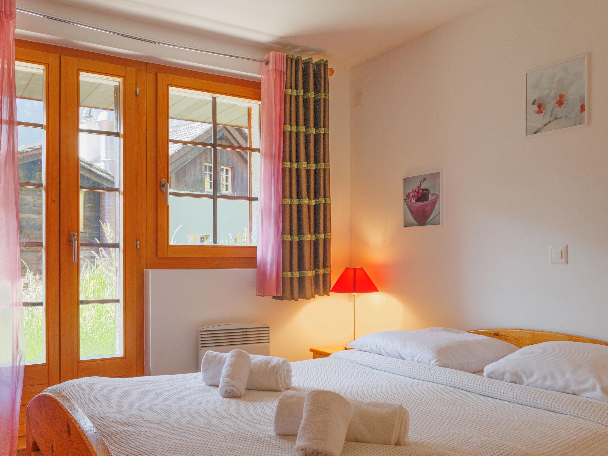 "Chalet A Coeur", 5-room chalet 180 m2 on 3 levels. Object suitable for 4 adults + 4 children. Very comfortable and tasteful furnishings: living/dining room with open-hearth fireplace and TV (flat screen), DVD and electric heating. Exit to the balcony. Open kitchen (oven, dishwasher, 4 induction hot plates, electric coffee machine, raclette grill, fondue Set (cheese)). Exit to the balcony. Shower/WC. Underfloor heating. On the lower ground floor: 2 rooms, each room with 1 double bed (160 cm, length 200 cm). Exit to the terrace. 1 children's room with 1 x 2 bunk beds (90 cm, length 200 cm). Bath/WC, hydro massage shower. Upper floor: (spiral staircase) gallery with 2 beds (90 cm, length 200 cm). 2 balconies, terrace. Balcony furniture, electric barbecue, deck chairs (2). Beautiful view of the mountains and the resort. Facilities: washing machine, dryer, children's high chair, baby cot, hair dryer. Internet (WiFi, free). Parking (roofed, 2 cars) at 150 m. Please note: suitable for families. Non-smokers only. Fire extinguisher. the carparking place is on the road: Route de Roua 55. Instead of an enclosed bedroom, some sleeping areas are located in an open-plan area (gallery, alcove, etc.).