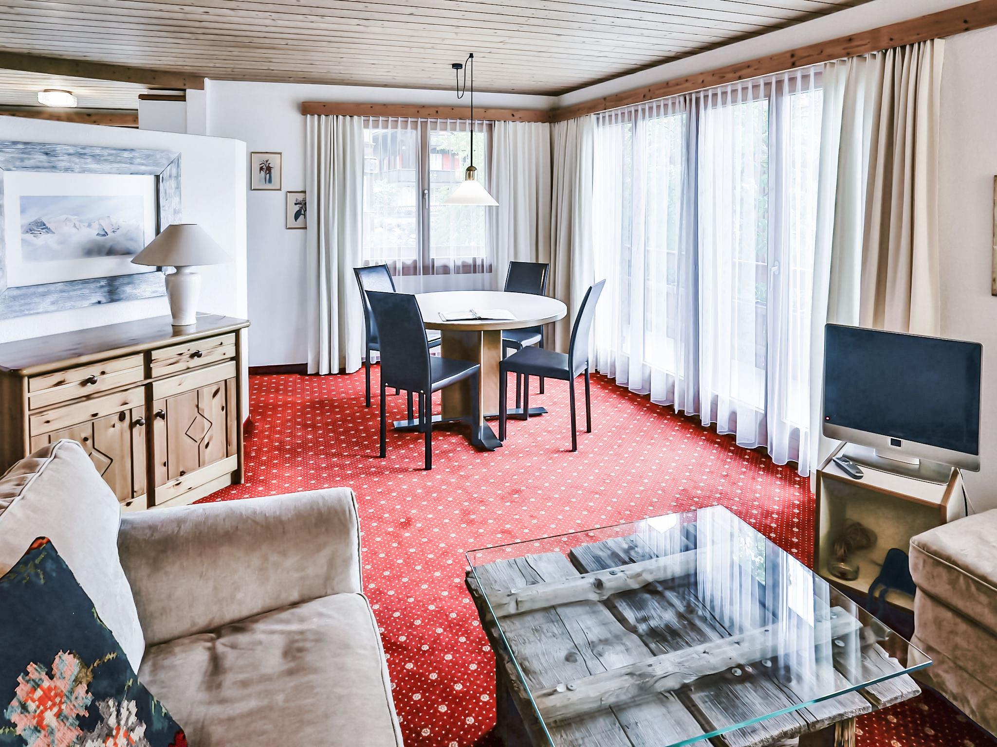 2-room apartment 56 m2. Beautiful and cosy furnishings: living/dining room with cable TV (flat screen). 1 double bedroom. Open kitchen (oven, dishwasher, 4 ceramic glass hob hotplates, toaster, kettle, electric coffee machine, Capsules for coffee machine (Nespresso) extra). Bathroom, sep. WC. Floor heating. Balcony, south facing position and north facing position. View of the mountains and Eiger. Facilities: hair dryer. Internet (WiFi, free). Please note: non-smokers only. Maximum 1 pet/ dog allowed. A fondue set (meat or cheese) and a raclette oven can be borrowed from reception.
