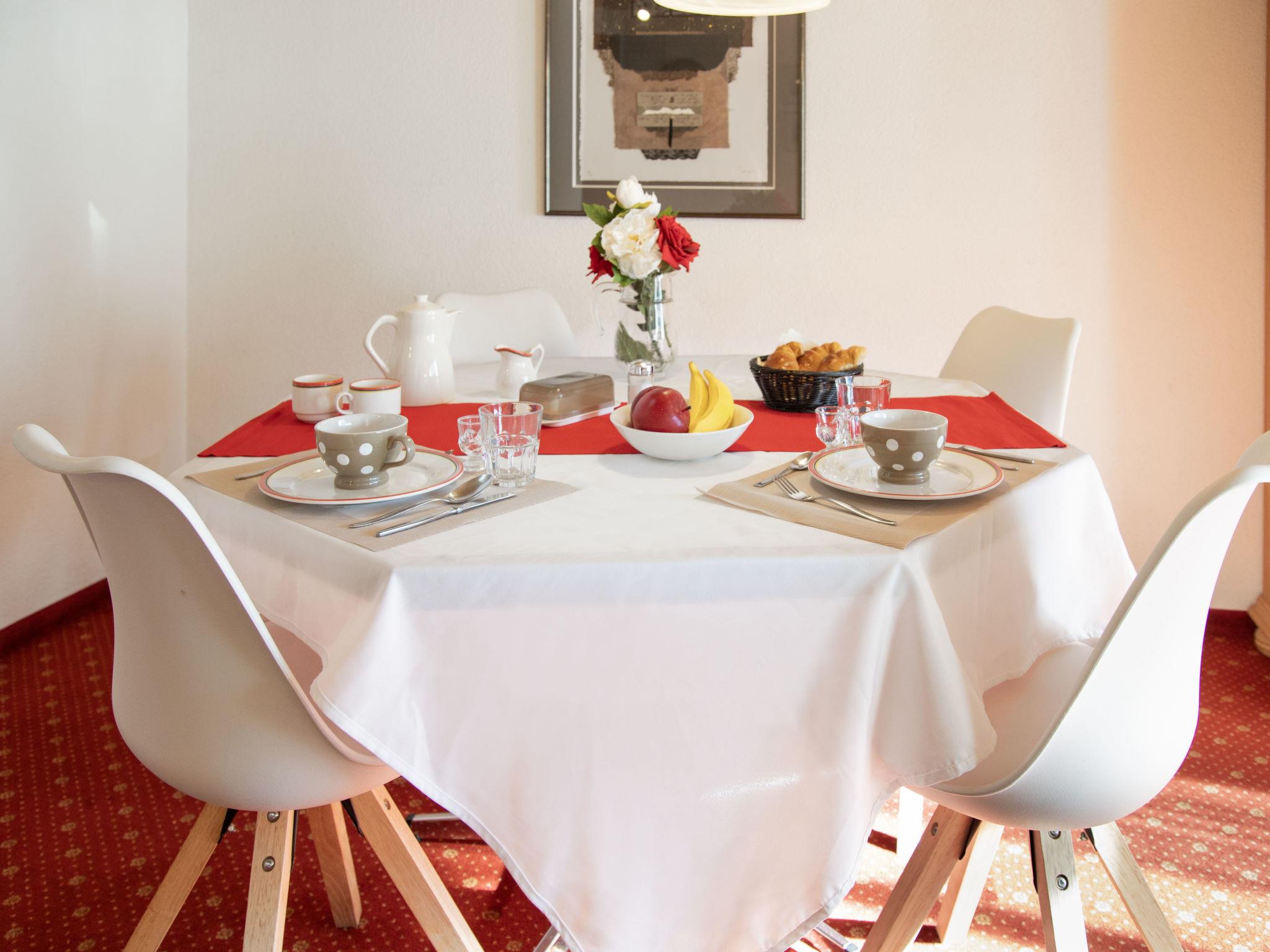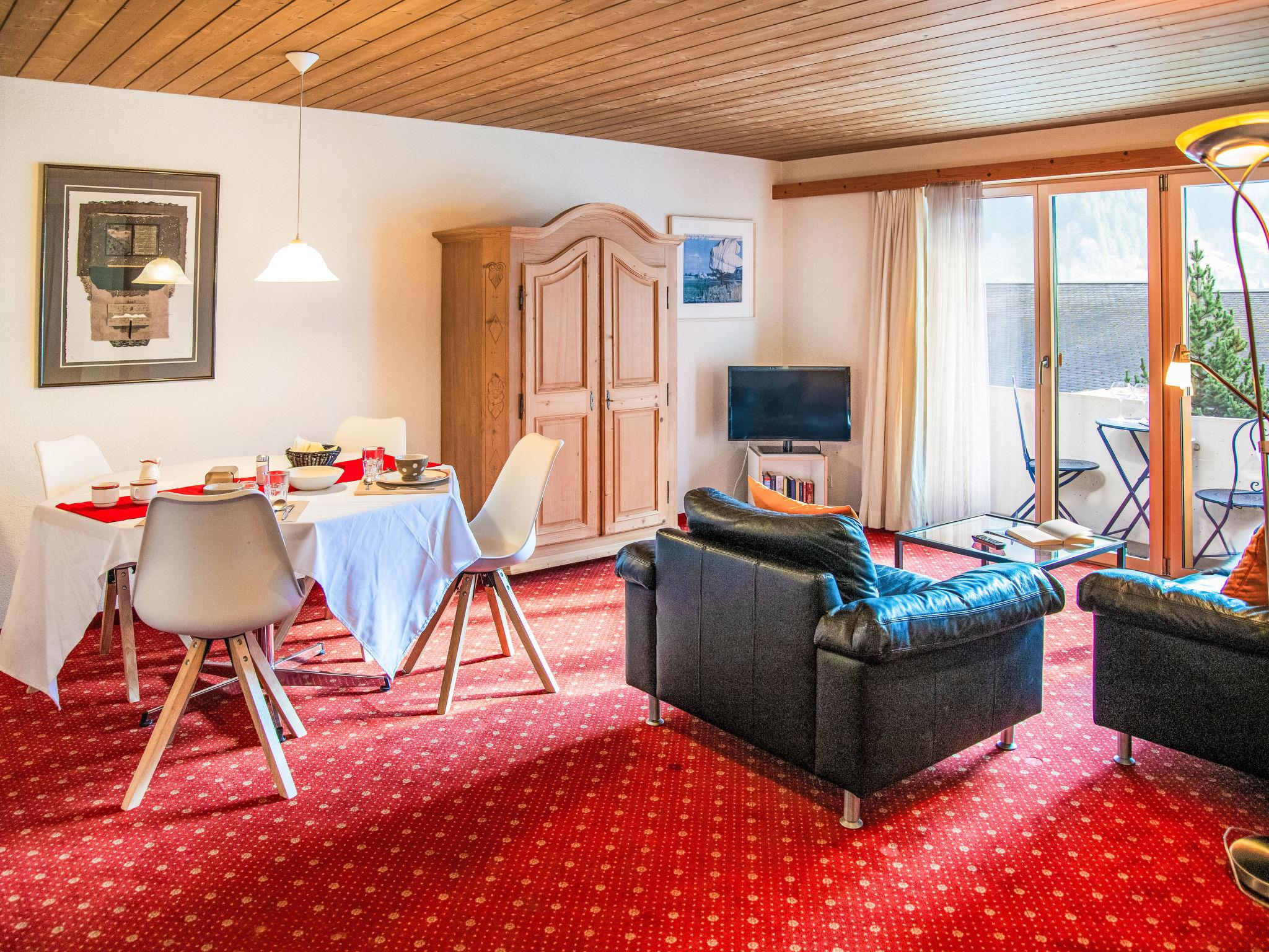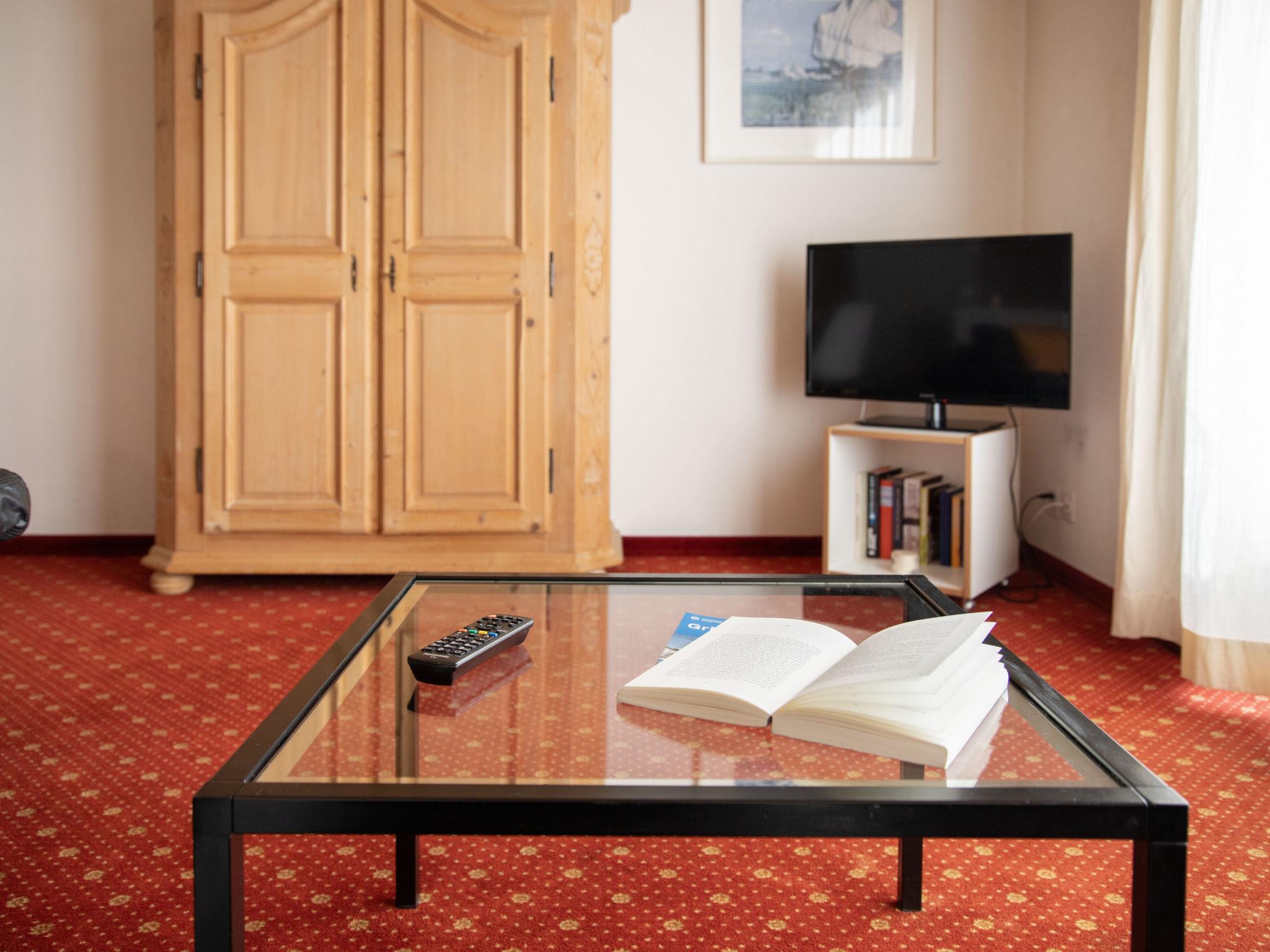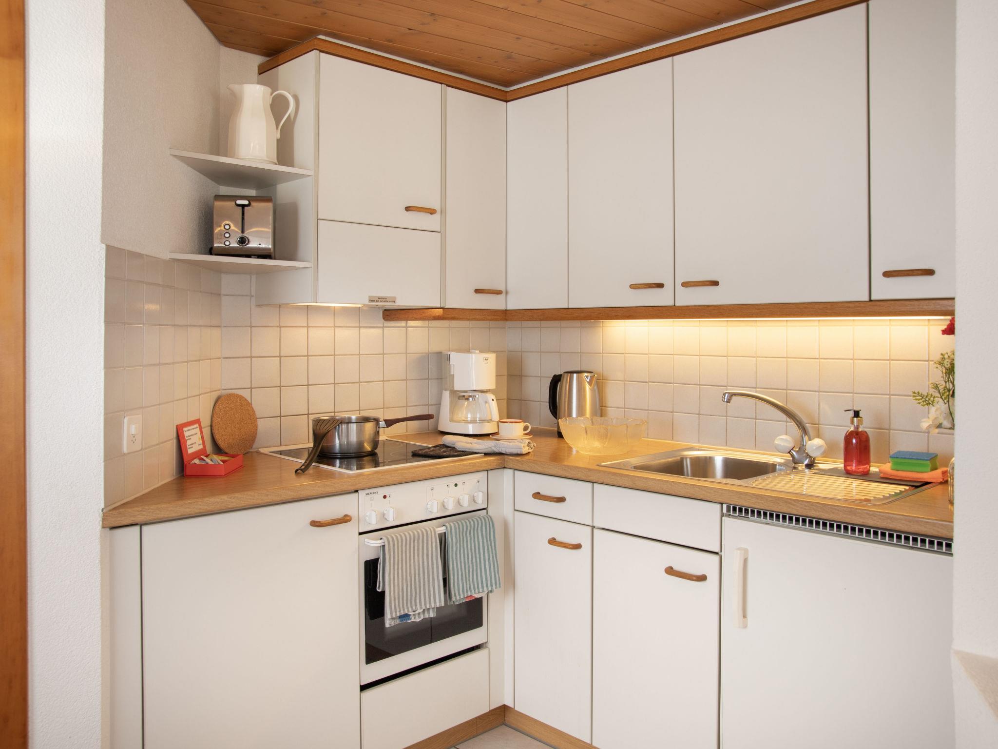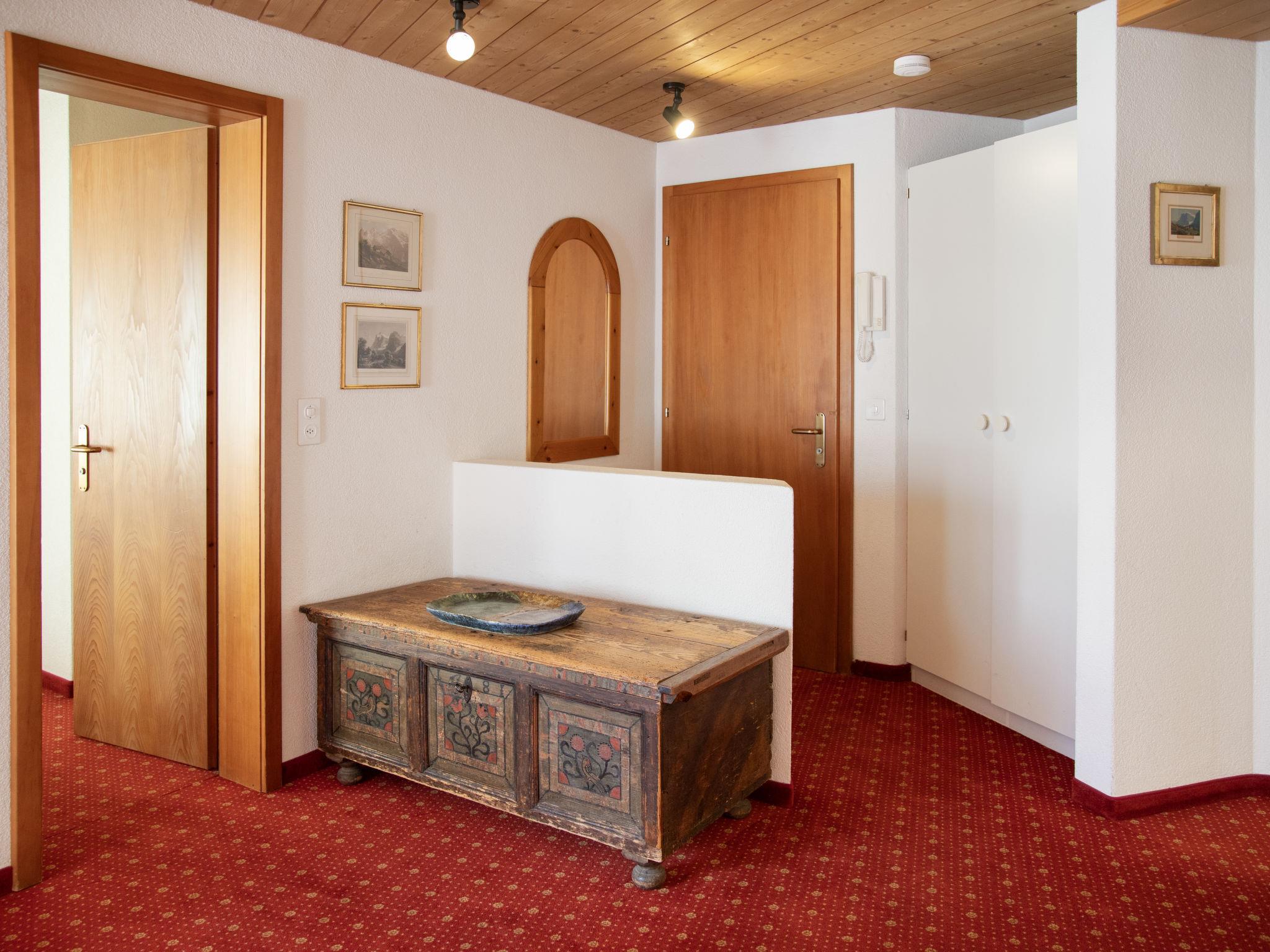 2-room apartment 47 m2 on 1st floor, south facing position. Living/dining room with cable TV (flat screen). 1 double bedroom. Open kitchen (oven, 4 ceramic glass hob hotplates, toaster, kettle, electric coffee machine, Capsules for coffee machine (Nespresso) extra). Bath/WC. Floor heating. Small balcony, south facing position. Beautiful view of the mountains and Eiger. Facilities: hair dryer. Internet (WiFi, free). Please note: non-smokers only. Maximum 1 pet/ dog allowed. A fondue set (meat or cheese) and a raclette oven can be borrowed from reception. Very narrow balcony. No furniture on the balcony.