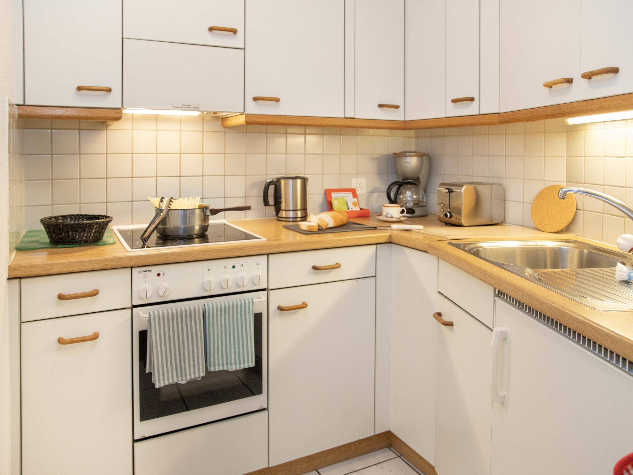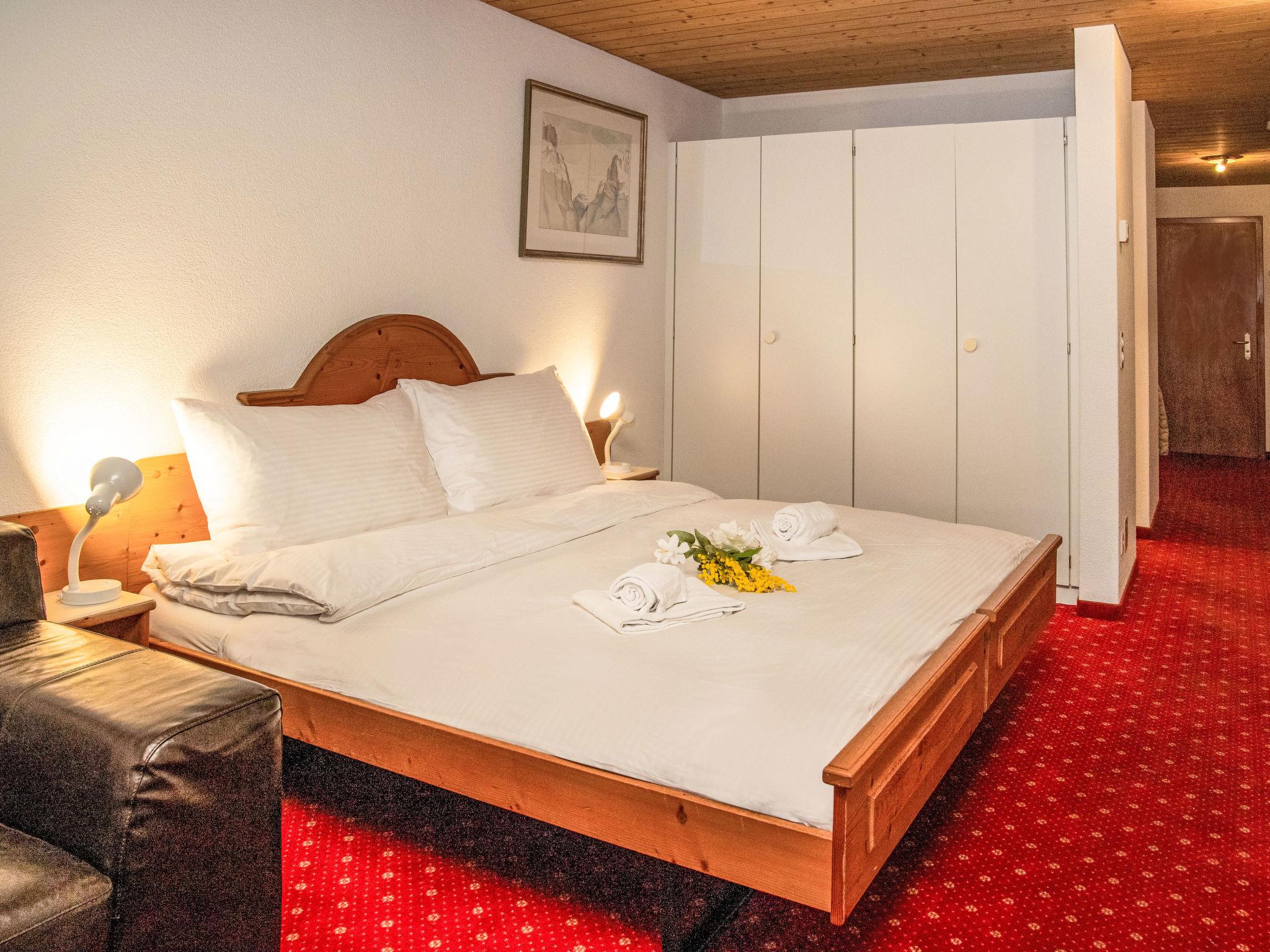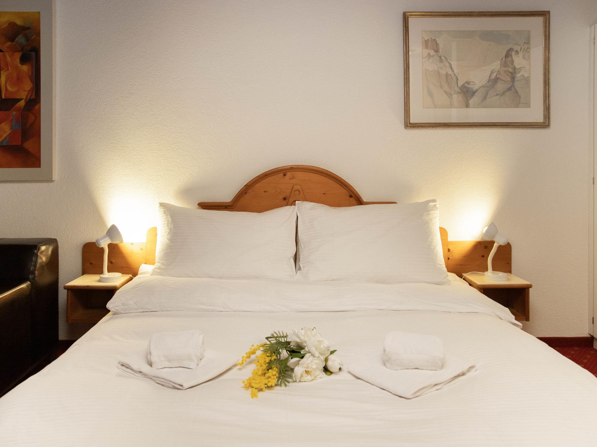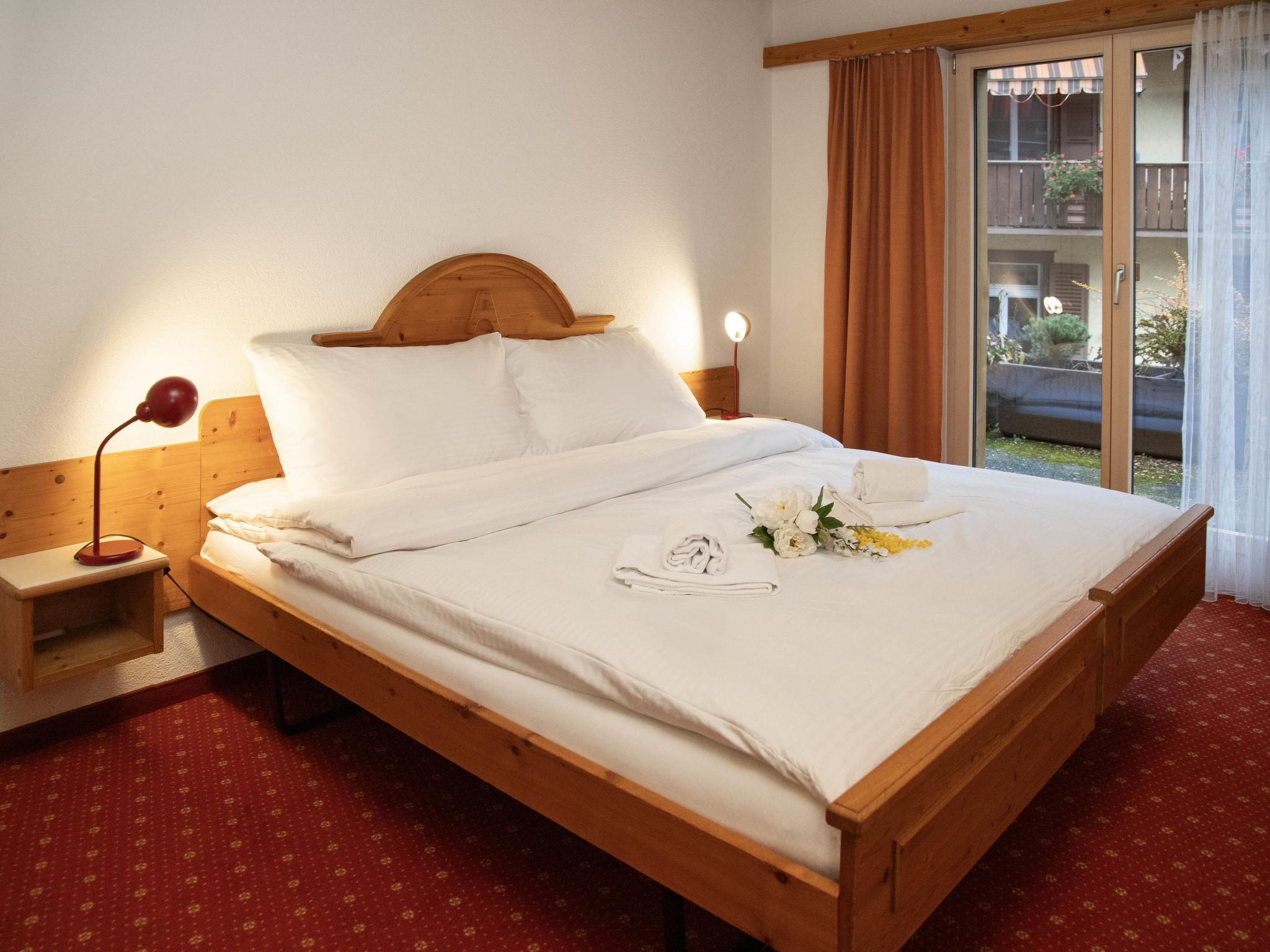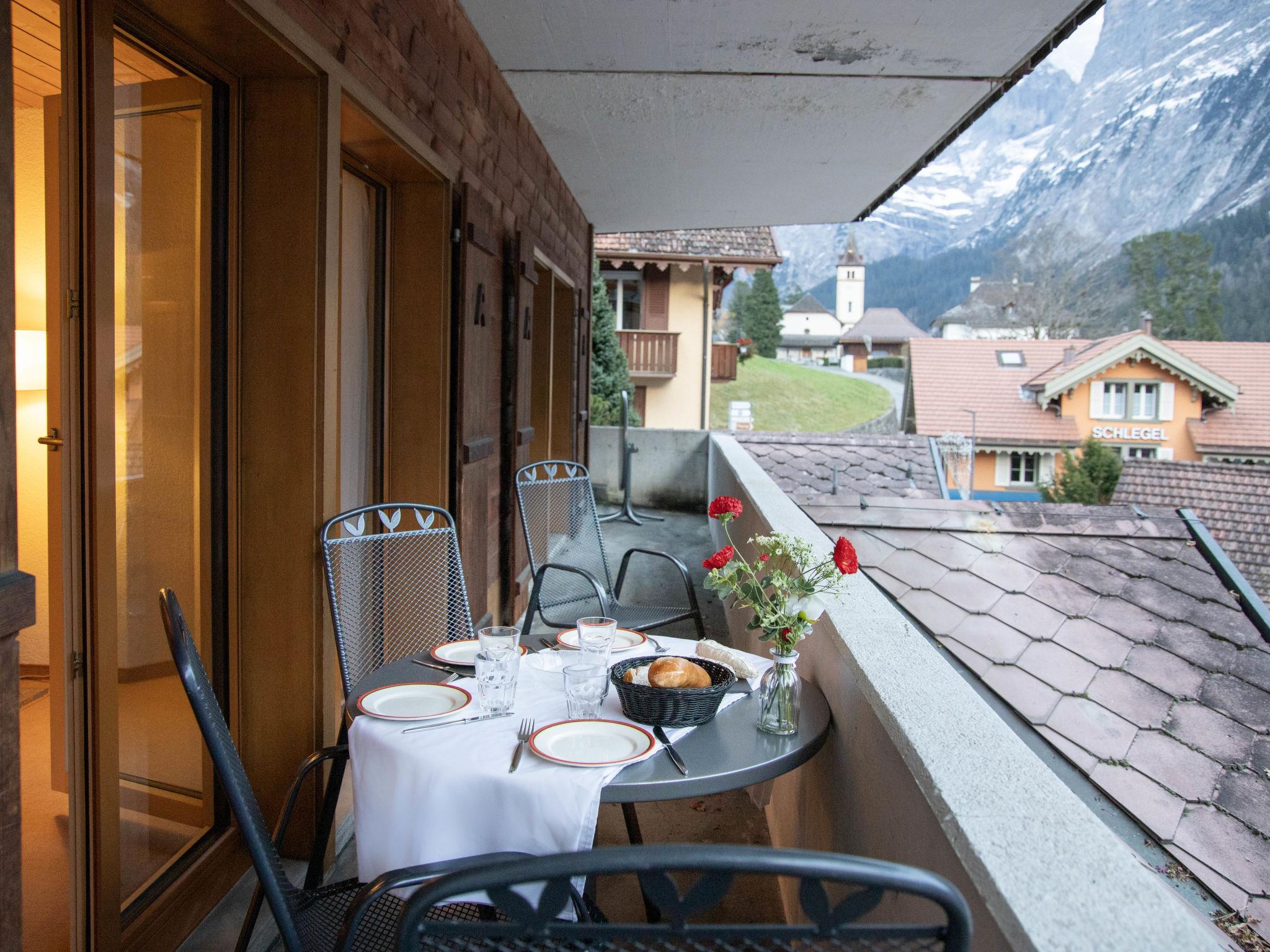 2-room apartment 53 m2 on 1st floor, south-east facing position. Living/dining room with 2 beds and cable TV (flat screen). 1 double bedroom. Open kitchen (oven, 4 ceramic glass hob hotplates, toaster, kettle, electric coffee machine, Capsules for coffee machine (Nespresso) extra). Bath/WC. Floor heating. Small balcony, south facing position, terrace. Terrace furniture. Beautiful view of the mountains and Eiger. Facilities: hair dryer. Internet (WiFi, free). Please note: non-smokers only. Maximum 1 pet/ dog allowed. A fondue set (meat or cheese) and a raclette oven can be borrowed from reception.