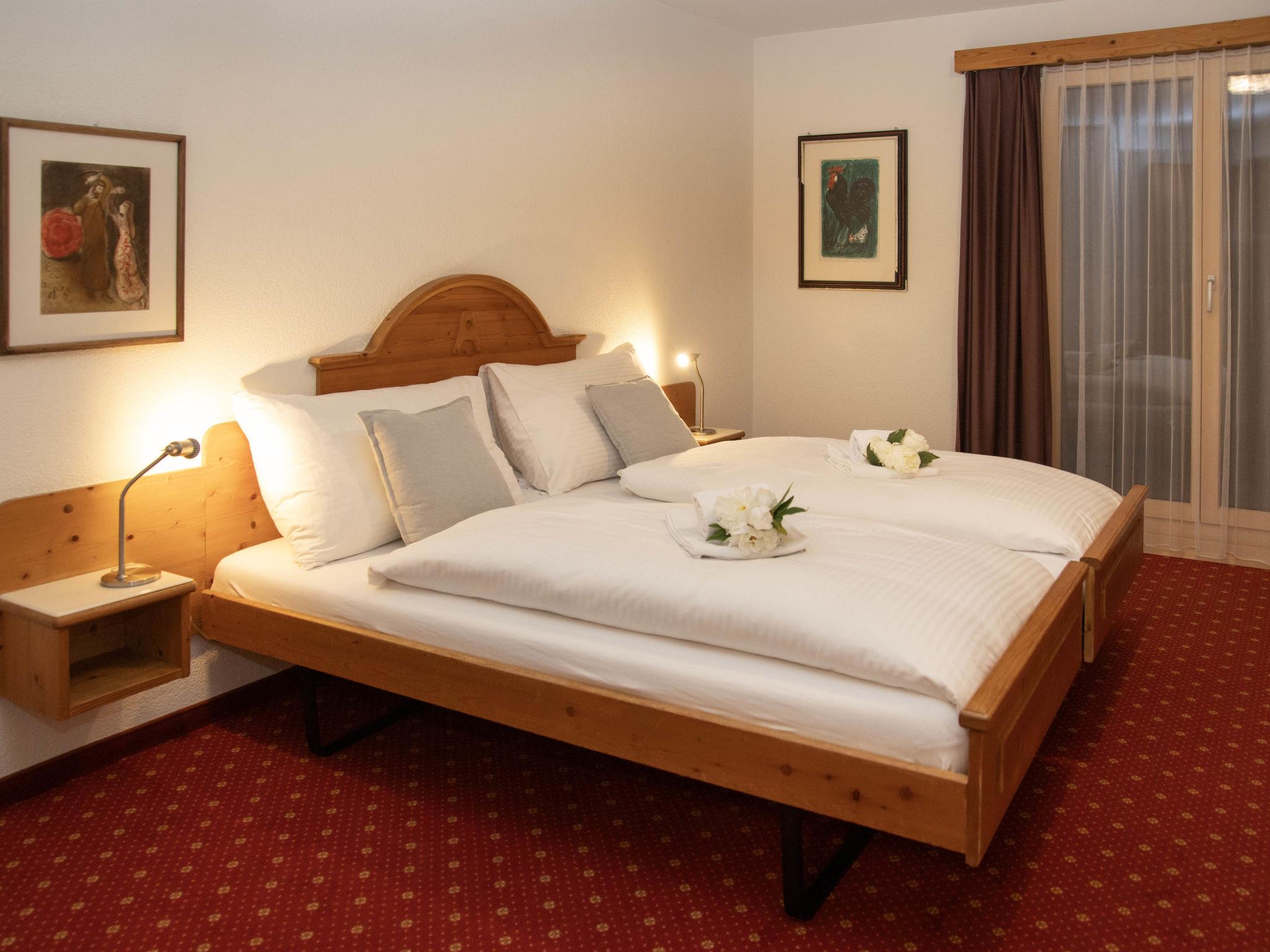 3-room apartment 71 m2 on 2nd floor, south-east facing position. Living/dining room with cable TV (flat screen). 2 double bedrooms. Kitchen (oven, dishwasher, 4 ceramic glass hob hotplates, toaster, kettle, electric coffee machine, Capsules for coffee machine (Nespresso) extra). Bath/WC, sep. WC. Floor heating. Balcony, south facing position, large terrace, east facing position. Terrace furniture. View of the mountains and Eiger. Facilities: hair dryer. Internet (WiFi, free). Please note: non-smokers only. Maximum 1 pet/ dog allowed. A fondue set (meat or cheese) and a raclette oven can be borrowed from reception.