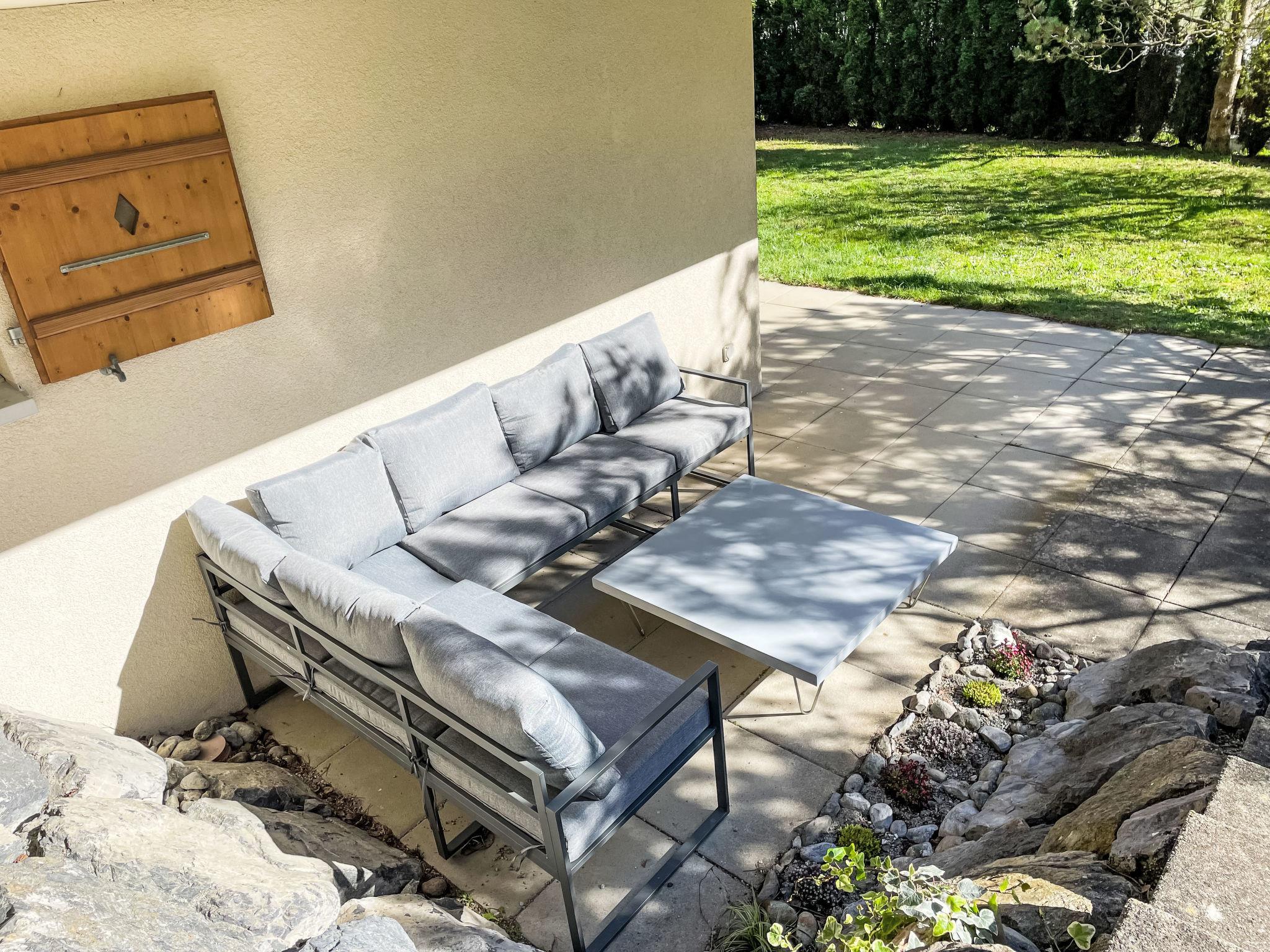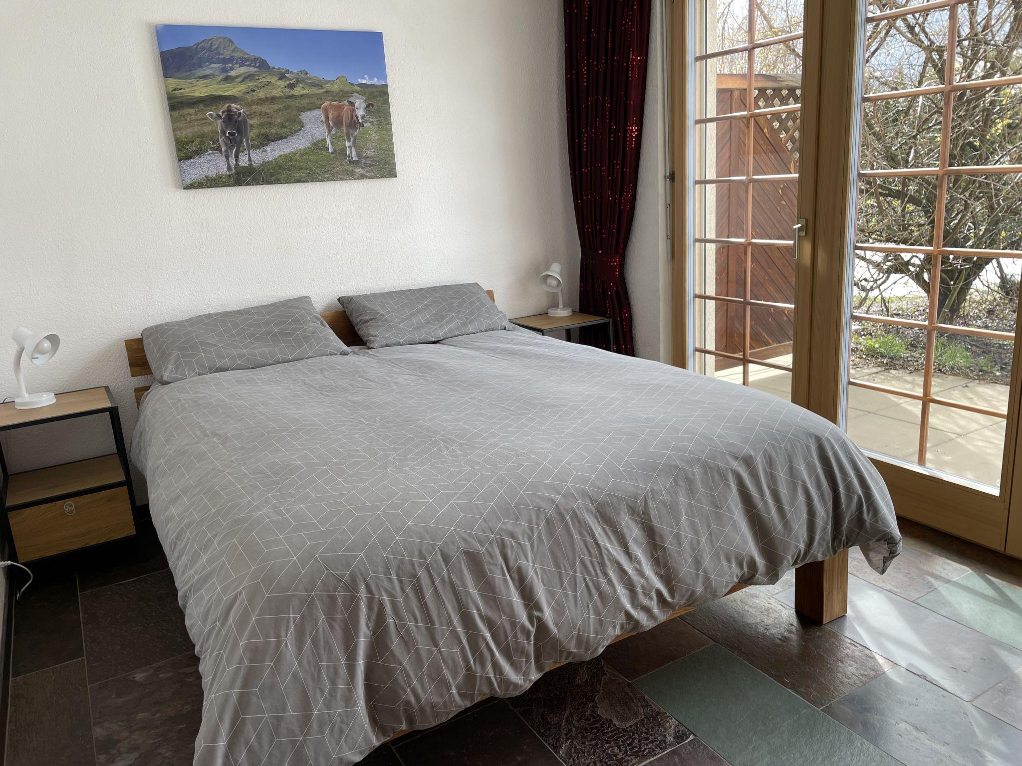 4-room apartment 113 m2 on 2 levels, on the ground floor, south facing position. Modern and cosy furnishings: living/dining room with cable TV (flat screen), radio, CD-player and DVD. Exit to the balcony, south facing position and west facing position. 1 room with 1 french bed (160 cm, length 200 cm). Open kitchen (oven, dishwasher, 4 ceramic glass hob hotplates, toaster, kettle, microwave, electric coffee machine, Capsules for coffee machine (Nespresso) extra, raclette grill, fondue Set (cheese)). Shower/WC. Floor heating. On the lower ground floor: 1 room with 2 beds (90 cm, length 200 cm). Exit to the terrace, south facing position and west facing position. 1 room with 1 french bed (160 cm, length 200 cm). Exit to the terrace, south facing position and west facing position. Bath/WC. Parquet floors, natural stone floors. Balcony, south facing position and west facing position, south facing position and west facing position, lawn. Balcony furniture. Marvellous view of the mountains and Eiger. Facilities: washing machine, dryer, hair dryer. Internet (WiFi, free). Parking space n 7 Bedford (roofed, 1 car) at the house. Please note: non-smokers only. Fire extinguisher.