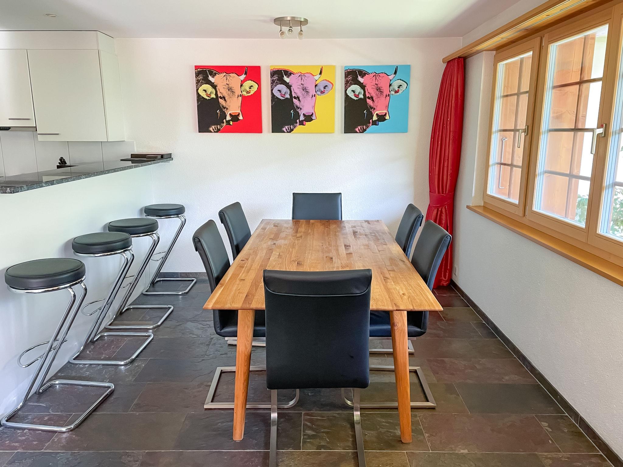 Beautiful apartment house "Chalet Eiger". In the district of Bei der Strassscheuer/Rothenegg, 1.4 km from the centre, south facing position. In the house: storage room for skis, central heating system. Motor access to the house. In Winter: please take snow chains. Roofed, parking at the house. Grocery, supermarket 100 m, shopping centre 1.4 km, restaurant 600 m, bar 100 m, bakery 1.5 km, bicycle rental 100 m, 20 minute walk to the centre, bus stop "Rothenegg" 100 m, railway station "Terminal" 50 m, outdoor swimming pool 600 m, indoor swimming pool 1.4 km. Golf course (9 hole) 3 km, tennis 3.5 km, minigolf 1.6 km, sports centre 1.4 km, mountain railway 900 m, gondola lift, ski rental 100 m, ski bus stop 200 m, cross country ski track 900 m, children's playground 1.4 km. Well-known ski regions can easily be reached: Maennlichen / Kleine Scheidegg 50 m. Well-known lakes can easily be reached: Thuner-/Brienzersee 15 km. Please note: no lift. Ski bus (free of charge). 3 km. Railway line closeby. Additional accommodations can be booked. Neighbourhood highly sensitive to noise. Quietness and good behaviour expected.