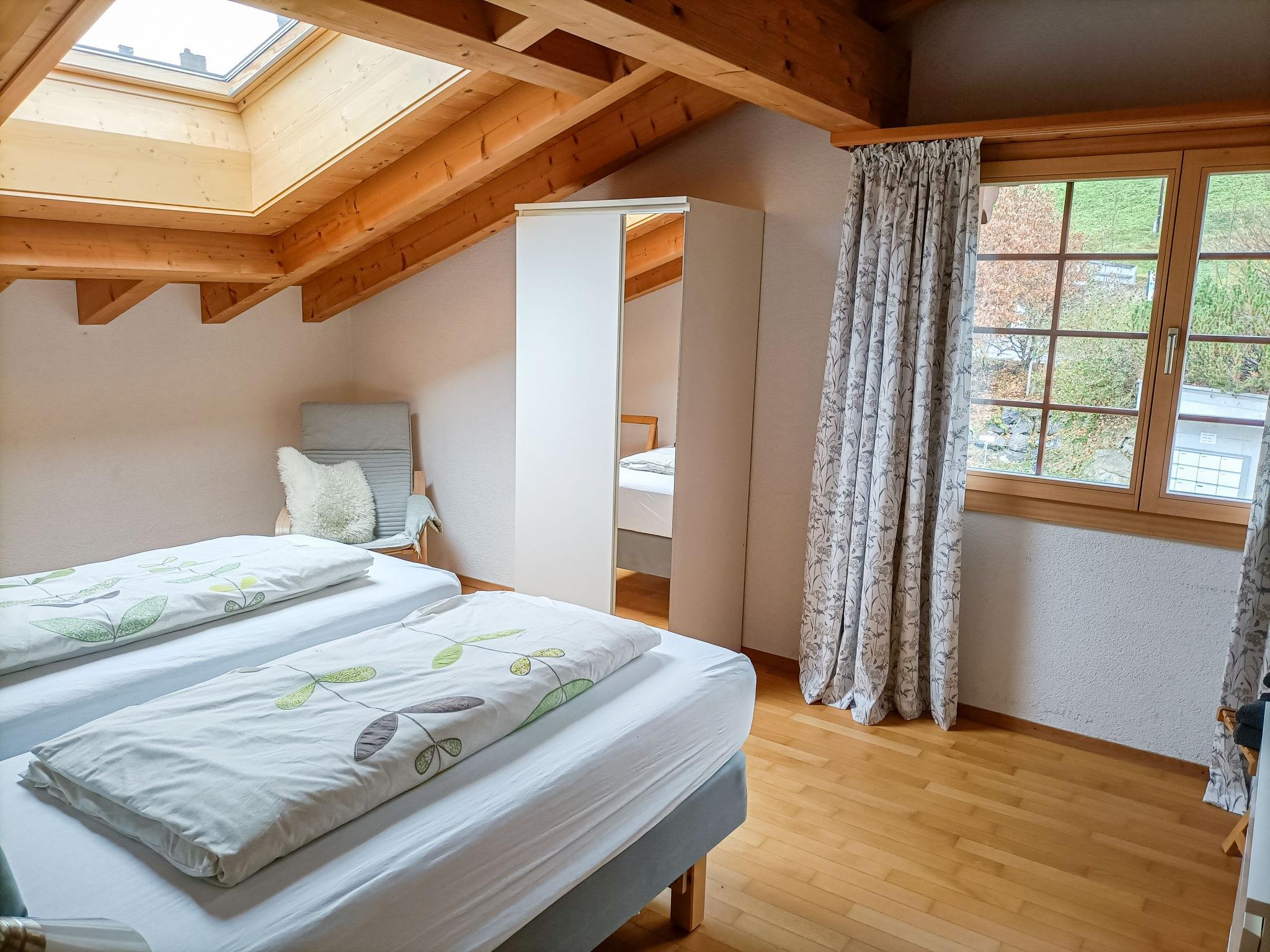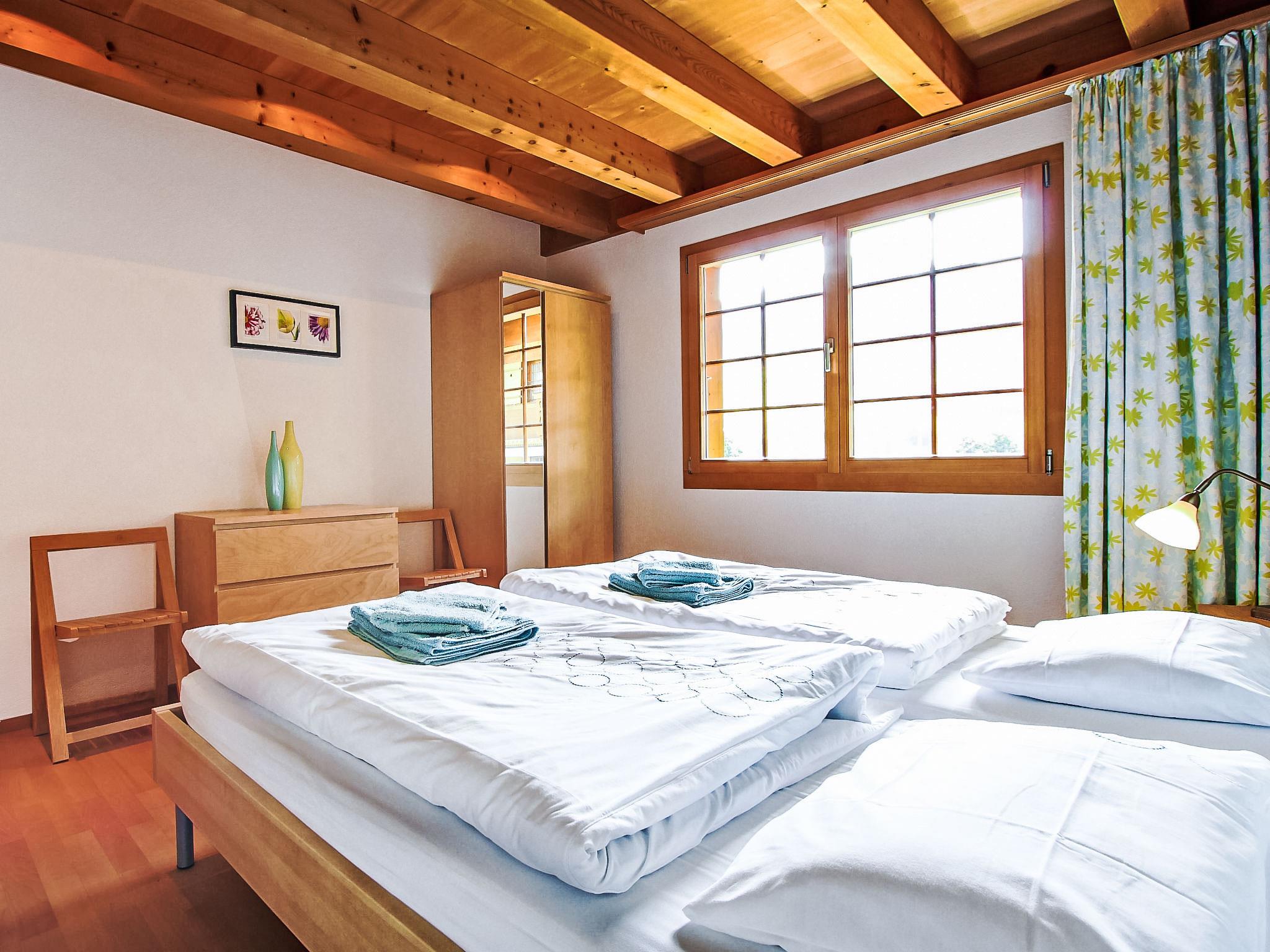 Beautiful apartment house "Chalet Eiger". In the district of Bei der Strassscheuer/Rothenegg, 1.4 km from the centre, south facing position. In the house: storage room for skis, central heating system. Motor access to the house. In Winter: please take snow chains. Roofed, parking at the house. Grocery, supermarket 100 m, shopping centre 1.4 km, restaurant 600 m, bar 100 m, bakery 1.5 km, bicycle rental 100 m, 20 minute walk to the centre, bus stop "Rothenegg" 100 m, railway station "Terminal" 50 m, outdoor swimming pool 600 m, indoor swimming pool 1.4 km. Golf course (9 hole) 3 km, tennis 3.5 km, minigolf 1.6 km, sports centre 1.4 km, mountain railway 900 m, gondola lift, ski rental 100 m, ski bus stop 200 m, cross country ski track 900 m, children's playground 1.4 km. Well-known ski regions can easily be reached: Maennlichen / Kleine Scheidegg 50 m. Well-known lakes can easily be reached: Thuner-/Brienzersee 15 km. Please note: no lift. Ski bus (free of charge). 3 km. Railway line closeby. Additional accommodations can be booked. Neighbourhood highly sensitive to noise. Quietness and good behaviour expected.