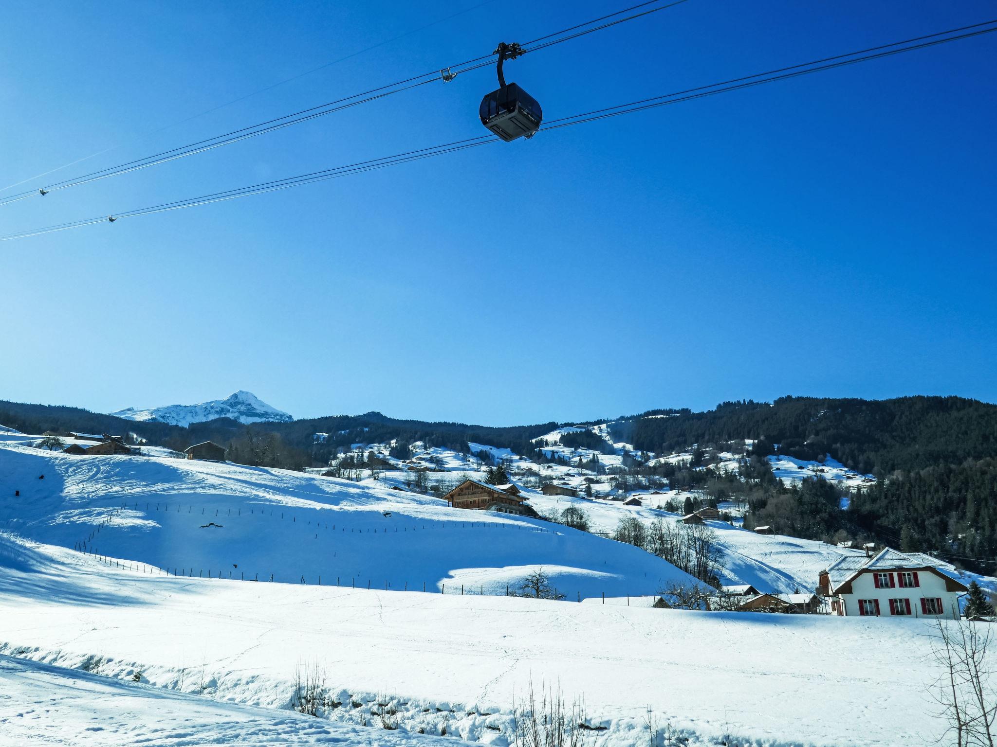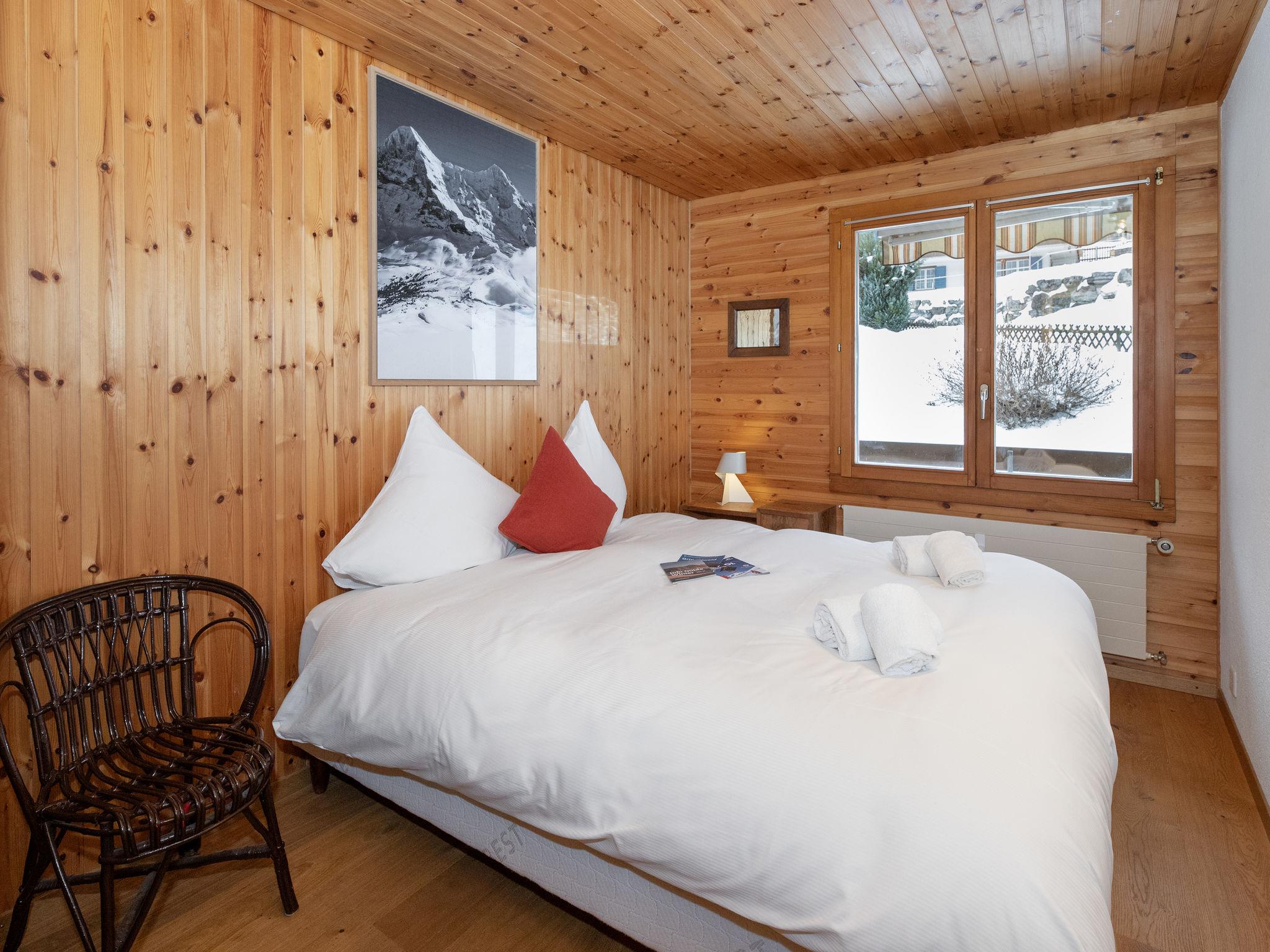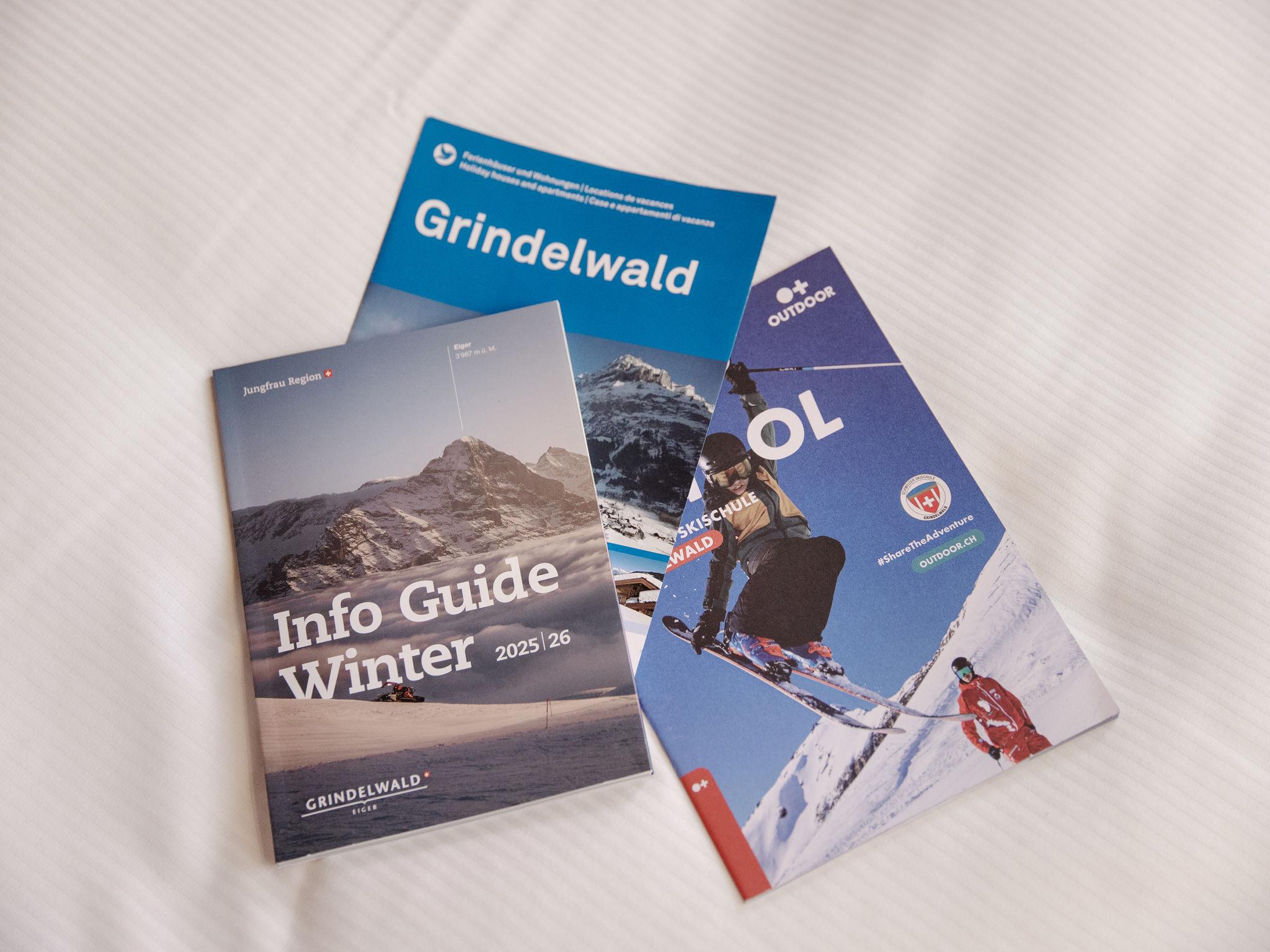 At the foot of the Eiger, simple apartment house "Nordwestwand", 3 storeys, detached. In the district of Zu Trogen, 2.1 km from the centre, in a quiet position on a slope, 200 m from the skiing area, in a cul-de-sac. In the house: storage room for skis, central heating system. Steep motor access to the house. In Winter: please take snow chains. Stepped path (25 steps) to the house. Parking at the house. Grocery 1 km, shopping centre 2.1 km, restaurant 300 m, bicycle rental 900 m, bus stop "Rothenegg" 1.3 km, railway station "Grund" 800 m, outdoor swimming pool 900 m, indoor swimming pool 2.1 km. Golf course (9 hole) 2 km, tennis 2.3 km, minigolf 2.2 km, sports centre 2.1 km, walking paths from the house 10 m, mountain railway 600 m, gondola lift 800 m, slopes 200 m, ski bus stop 100 m, cross country ski track 800 m, children's playground 2.1 km. Well-known lakes can easily be reached: Thuner-/Brienzersee 18 km. Please note: car recommended, no lift. In case of good snow conditions, the house is accessible on skis.