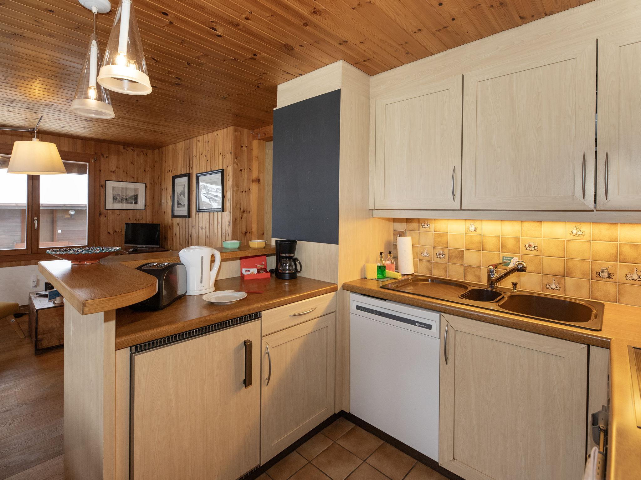 "Réan", 3-room apartment 50 m2 on 2 levels, on the top floor. Object suitable for 2 adults + 2 children. Bright, partly with sloping ceilings, partly renovated in 2025, practical and cosy furnishings: open living/dining room with Scandinavian wood stove, dining table and cable TV. Exit to the balcony. 1 room with 1 double bed (160 cm, length 200 cm). Exit to the balcony. 1 children's room, 2 bunk beds (90 cm, length 200 cm). Exit to the balcony. Open kitchen (4 hot plates, oven, dishwasher, 4 ceramic glass hob hotplates, toaster, kettle, microwave, electric coffee machine, Capsules for coffee machine (Nespresso) extra, raclette grill, fondue Set (cheese)). Shower/WC. Upper floor: (steep stair) open playroom with sloping ceilings. Balcony, south facing position balcony, north facing position. Balcony furniture. Marvellous panoramic view of the valley and the resort. Facilities: Internet (WiFi, free). Parking space n Réan at the house. Please note: non-smokers only. Private entrance.
