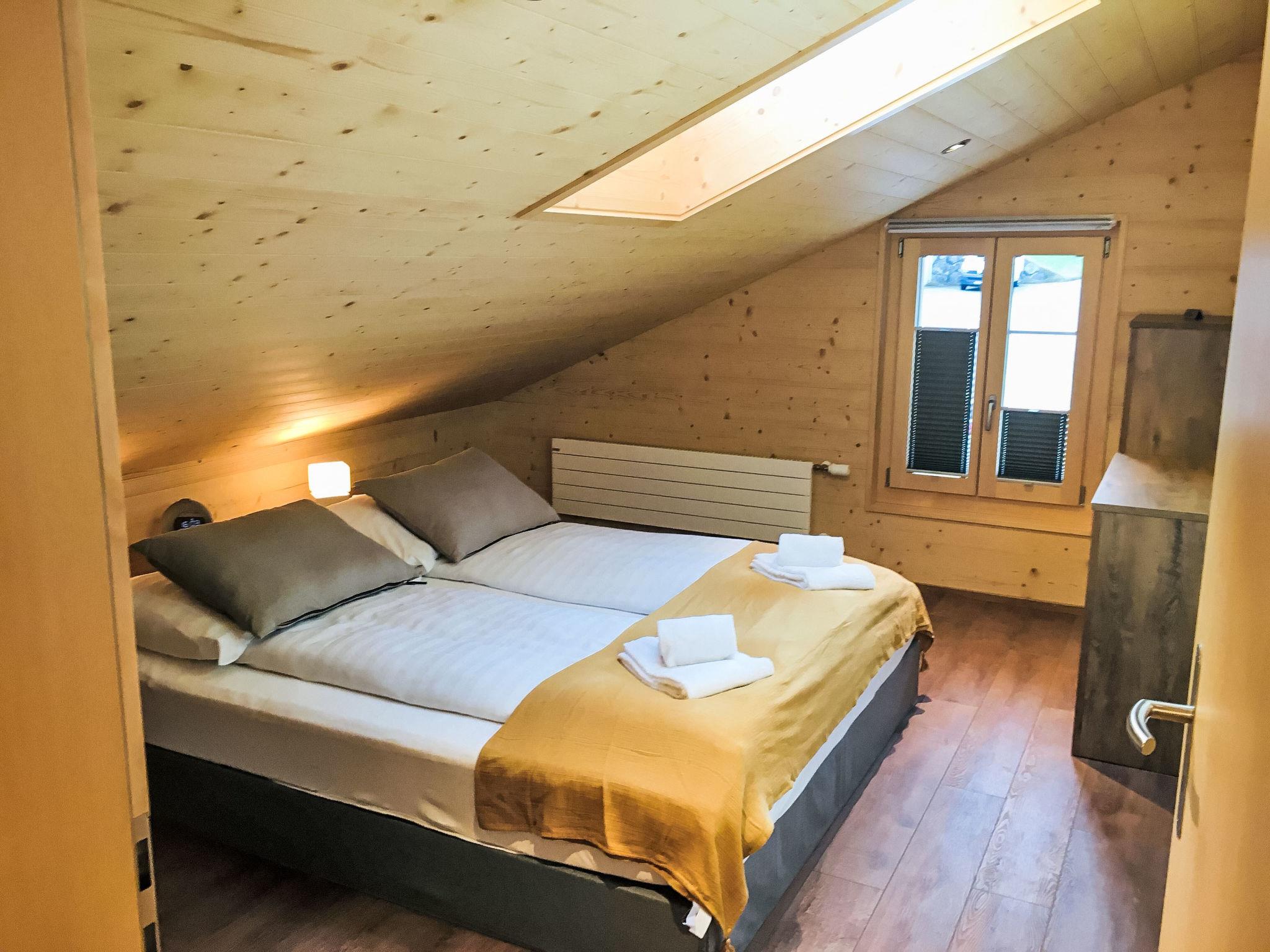 Beautiful, rustic 2-family house "Chalet Engelshüs". In the district of Wärgistal, 50 m from the skiing area, located by a road. In the house: storage room for skis, central heating system. In Winter: please take snow chains. Parking at the house. Grocery 700 m, shopping centre 2 km, restaurant 1.5 km, bar 1.5 km, bicycle rental 2 km, bus stop "Engelshaus" 10 m, railway station "Grindelwald Dorf" 2 km, outdoor swimming pool 1.2 km, indoor swimming pool 2 km. Golf course (9 hole) 2 km, tennis 2.5 km, minigolf 2.5 km, sports centre 2 km, mountain railway 1.5 km, gondola lift 2 km, slopes 50 m, ski rental 2 km, ski bus stop 10 m, cross country ski track 900 m, children's playground 2 km. Well-known lakes can easily be reached: Thuner-/Brienzersee 18 km. Please note: ski bus (free of charge). In case of good snow conditions, the house is accessible on skis. The keys‘ handover takes place by the agency Interhome in Grindelwald.