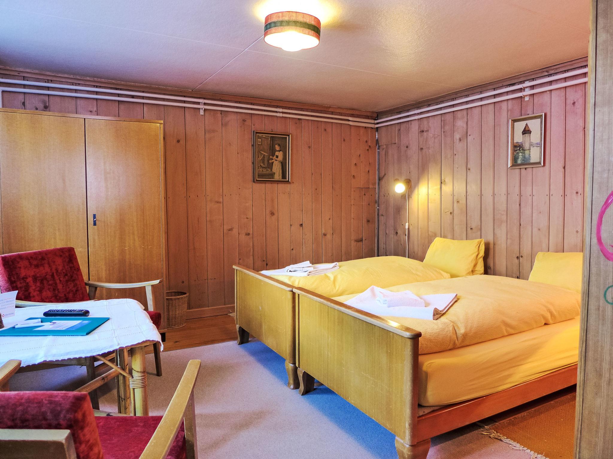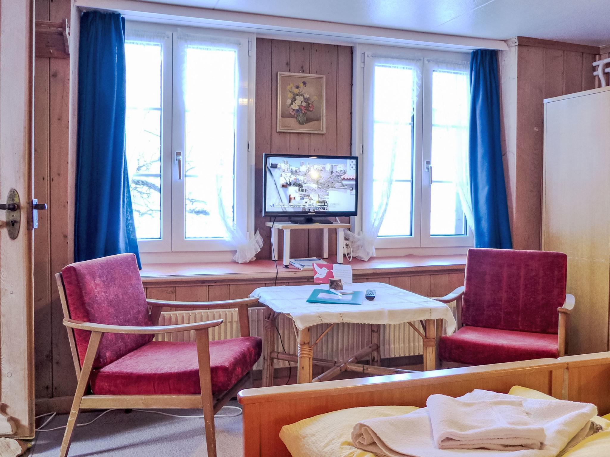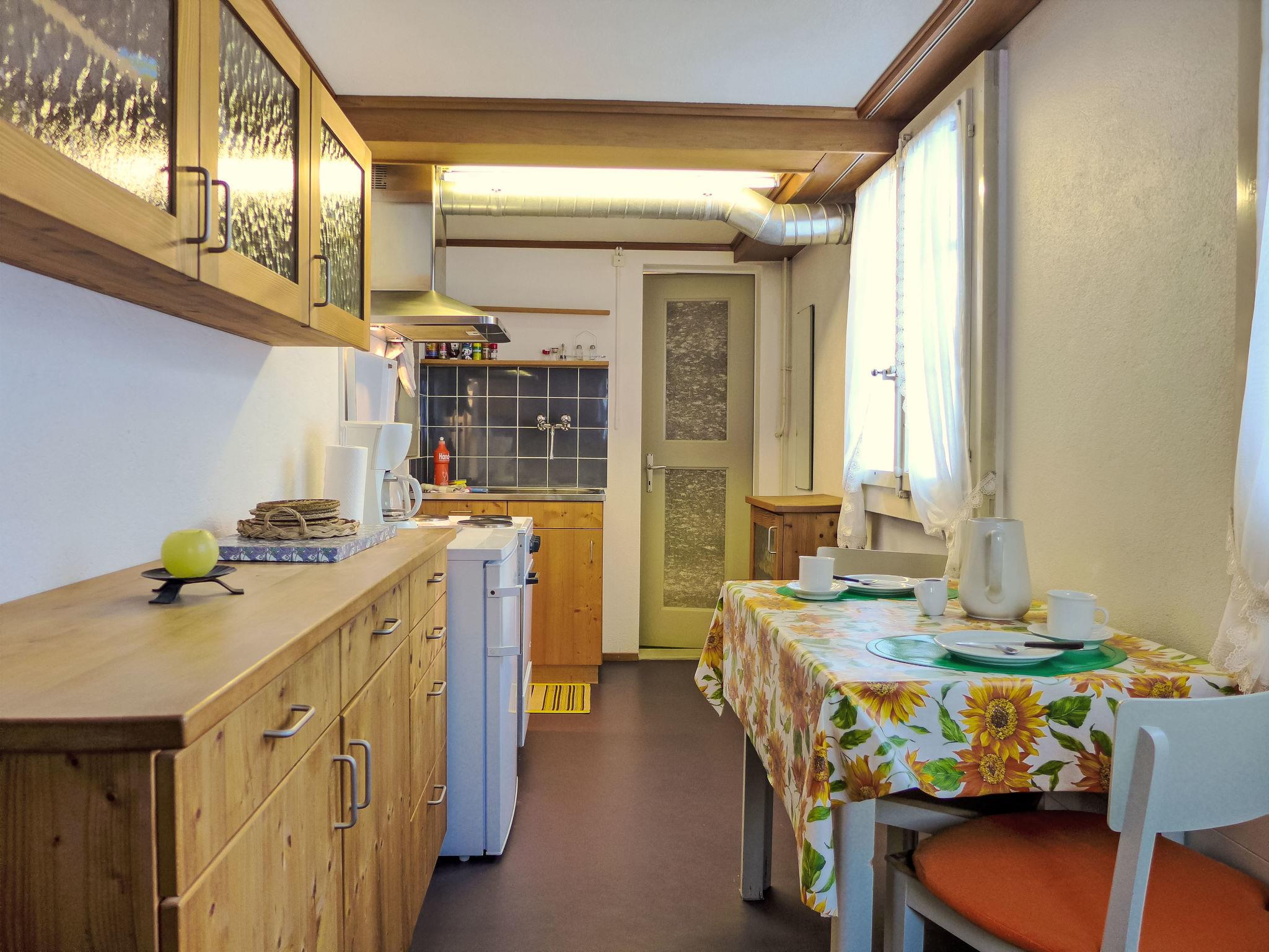 1-room apartment 40 m2, on the ground floor, south-east facing position. Very simple and cosy furnishings: living/sleeping room, ceiling height 180 cm, Low door height 170 cm with 2 beds (90 cm, length 190 cm), satellite TV. Small kitchen-/living room (3 hot plates, oven, electric coffee machine, fondue Set (cheese)) with dining table, ceiling height 200 cm. Exit to the patio. Shower/WC. Wooden floors. Patio, south facing position and, east facing position. Beautiful view of the mountains, the resort and Eiger. Facilities: Internet (WiFi, free). Parking at the house. Please note: non-smokers only. Private entrance.