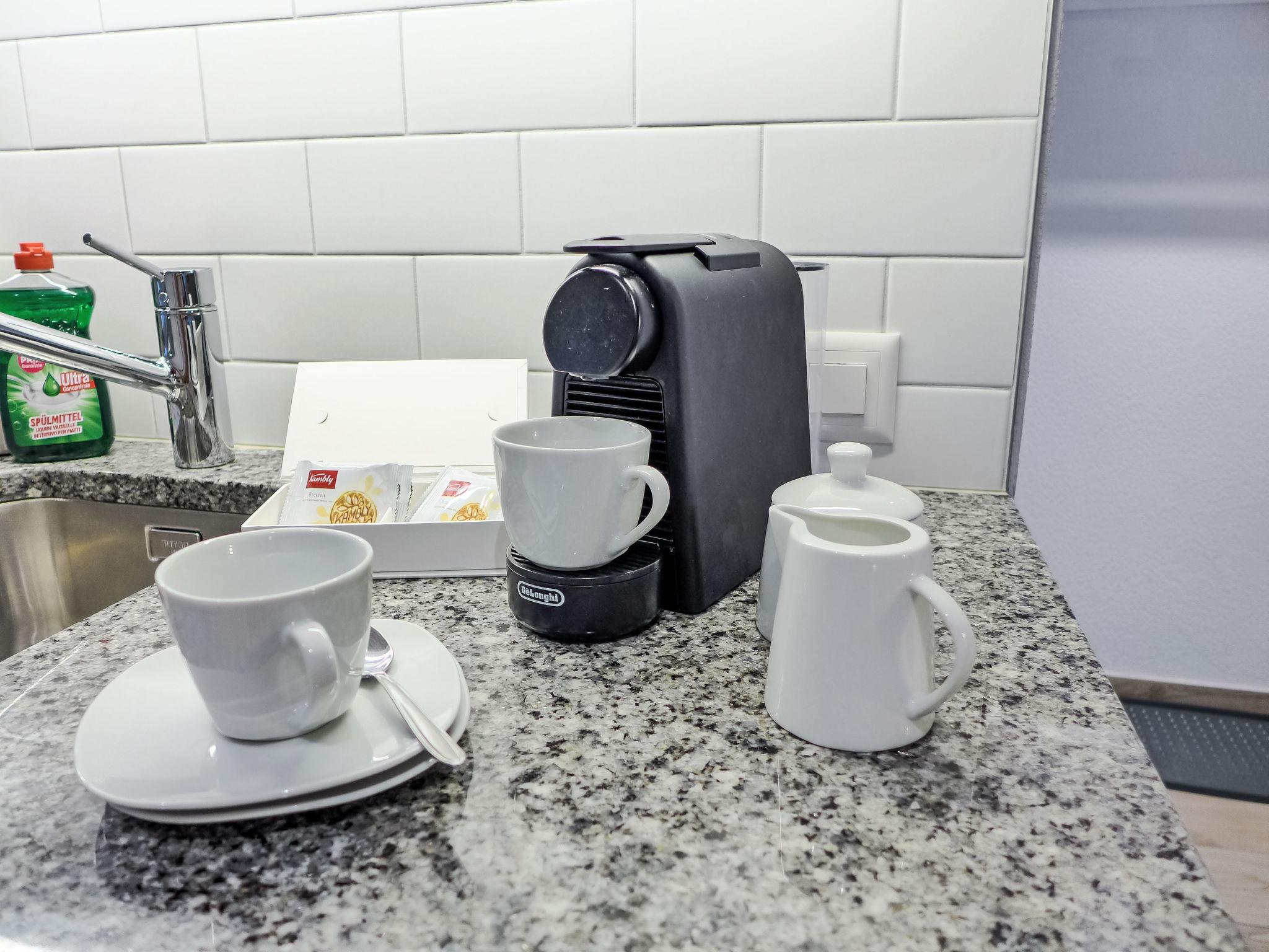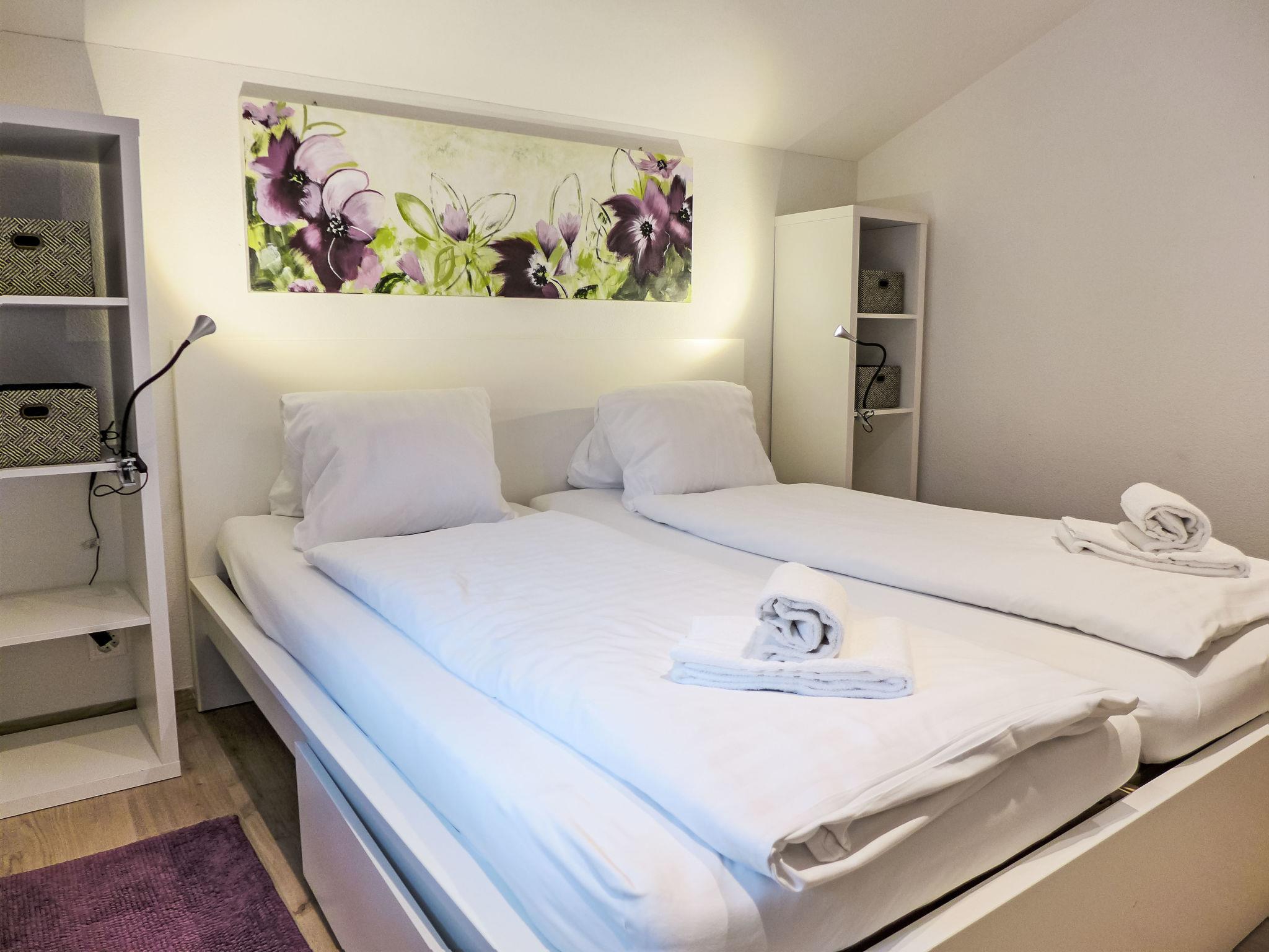 2-room apartment 50 m2 on 1st floor, south facing position. Fully renovated in 2021, modern and cosy furnishings: living/dining room with cable TV (flat screen). 1 double bedroom (2 x 90 cm, length 200 cm). Open kitchen (oven, dishwasher, 4 ceramic glass hob hotplates, toaster, kettle, electric coffee machine, Capsules for coffee machine (Nespresso) extra, raclette grill, fondue Set (cheese)). Shower/WC. Natural stone floors. Partial view of the mountains. Facilities: Internet (WiFi, free). Parking at the house. Please note: private entrance.