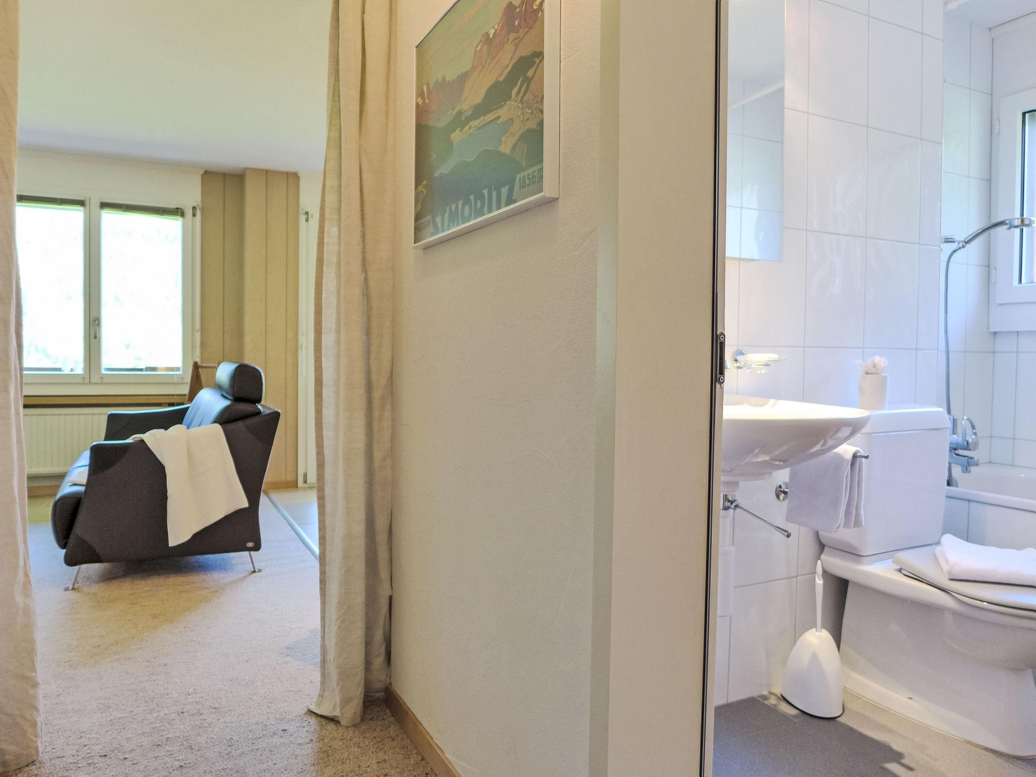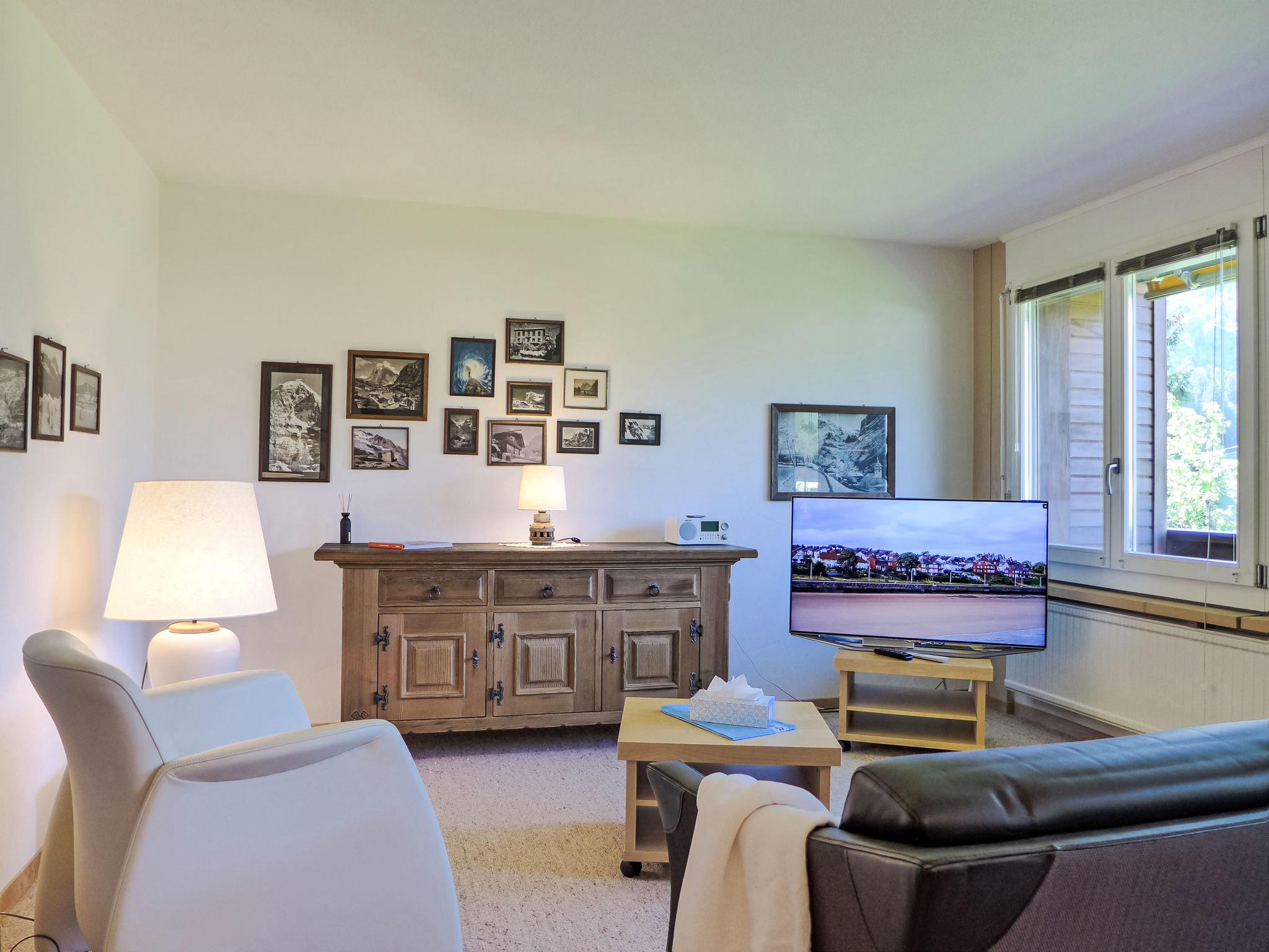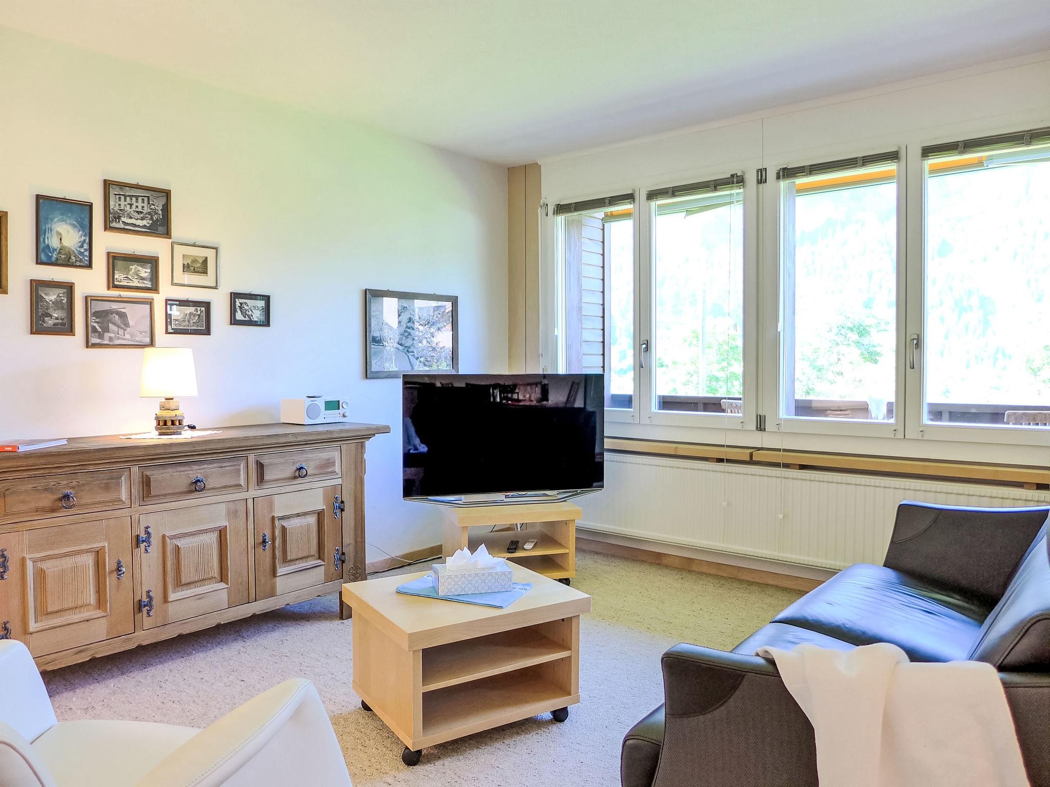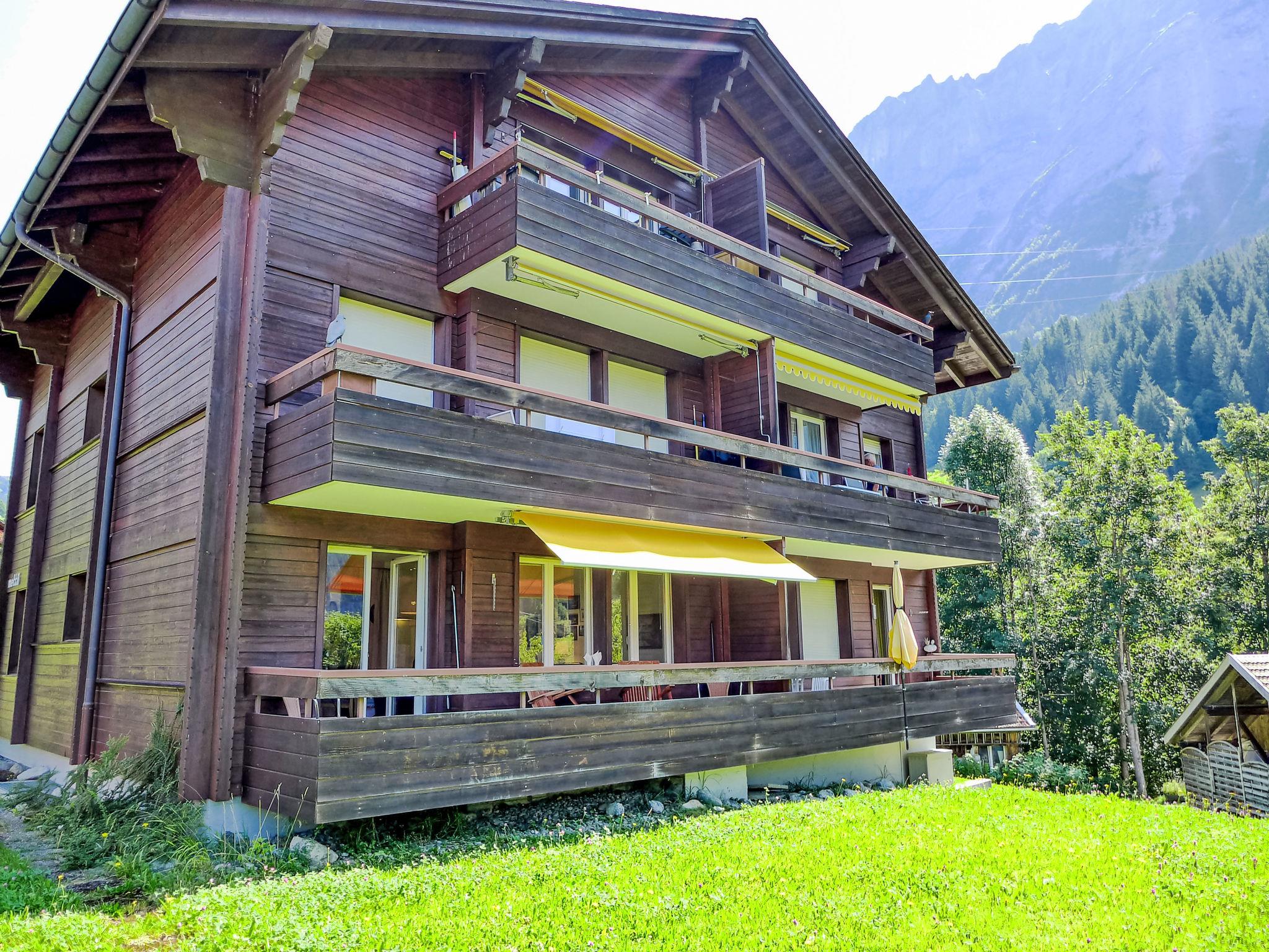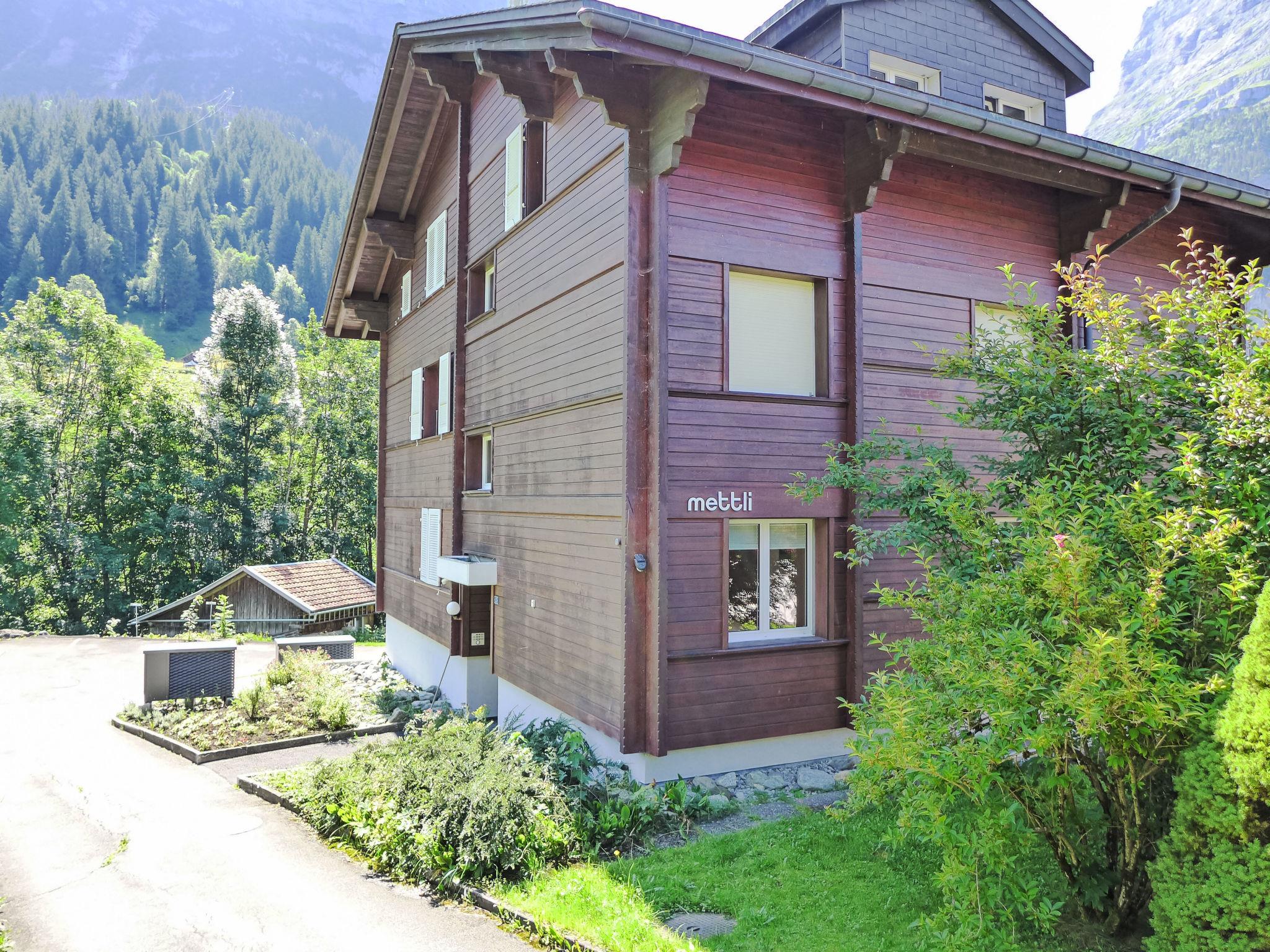 Simple apartment house "Chalet Mettli", 3 storeys, surrounded by meadows. In the district of Graben, 300 m from the centre, in a quiet position in the residential district, in a cul-de-sac, south facing position. In the house: storage room for skis, central heating system, washing machine, tumble dryer (for shared use, extra). Motor access to the house. In Winter: please take snow chains. Single garage at the house. Shop 700 m, supermarket 1 km, restaurant, bar 300 m, bakery 300 m, bicycle rental 500 m, 5 minute walk to the centre, bus stop "Pfingsteggbahn" 60 m, railway station "Grindelwald Dorf" 1.1 km, outdoor swimming pool 2.1 km, indoor swimming pool 1 km. Golf course (9 hole) 800 m, tennis 500 m, minigolf 500 m, sports centre 1 km, gondola lift, ski rental 500 m, ski bus stop 100 m, cross country ski track 500 m, children's playground 900 m. Well-known lakes can easily be reached: Thuner-/Brienzersee 18 km. Please note: no lift. Ski bus (free of charge). Free ski bus service to the ski region First, Männlichen, Kleine Scheidegg. The keys‘ handover takes place by the agency Interhome in Grindelwald, 1 km. Neighbourhood highly sensitive to noise. Quietness and good behaviour expected.