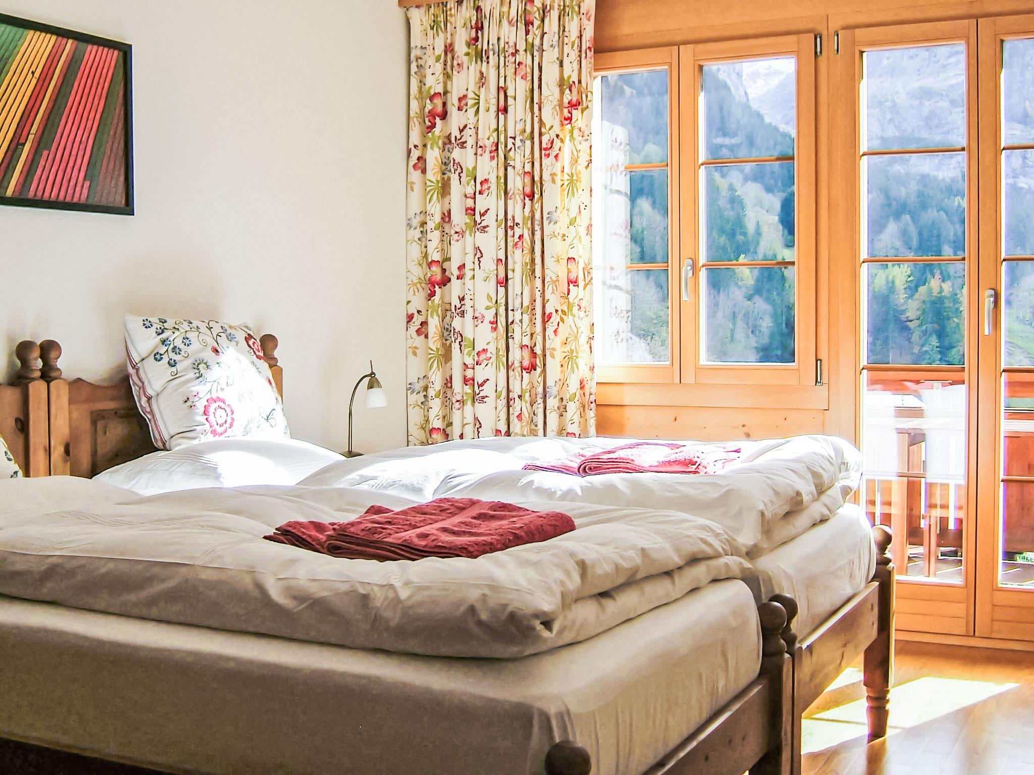 Beautiful apartment house "Chalet Pfingsteggblick". In the district of im Graben, 200 m from the centre, in a quiet position, excellent location: right in the centre but still quiet, south facing position. In the house: sauna (extra). Storage room for bicycles, storage room for skis, central heating system, washing machine, tumble dryer (for shared use), drying room. Linen change (suppl. charge extra). Towel change (suppl. charge extra). Room cleaning on request (extra). Motor access to the house. In Winter: please take snow chains. Parking at the house, communal covered parking at the house. E-charging station. Shopping centre, restaurant, bar 200 m, bakery 100 m, bicycle rental 400 m, bus stop "Pfingstegg" 20 m, railway station "Grindelwald Dorf" 900 m, outdoor swimming pool 3 km, indoor swimming pool 800 m. Golf course (9 hole) 1 km, tennis 500 m, minigolf 600 m, sports centre 800 m, gondola lift, ski rental 400 m, ski bus stop 20 m, cross country ski track 500 m, children's playground 800 m. Well-known lakes can easily be reached: Thuner-/Brienzersee 18 km. Please note: no lift. Ski bus (free of charge). Neighbourhood highly sensitive to noise. Quietness and good behaviour expected.