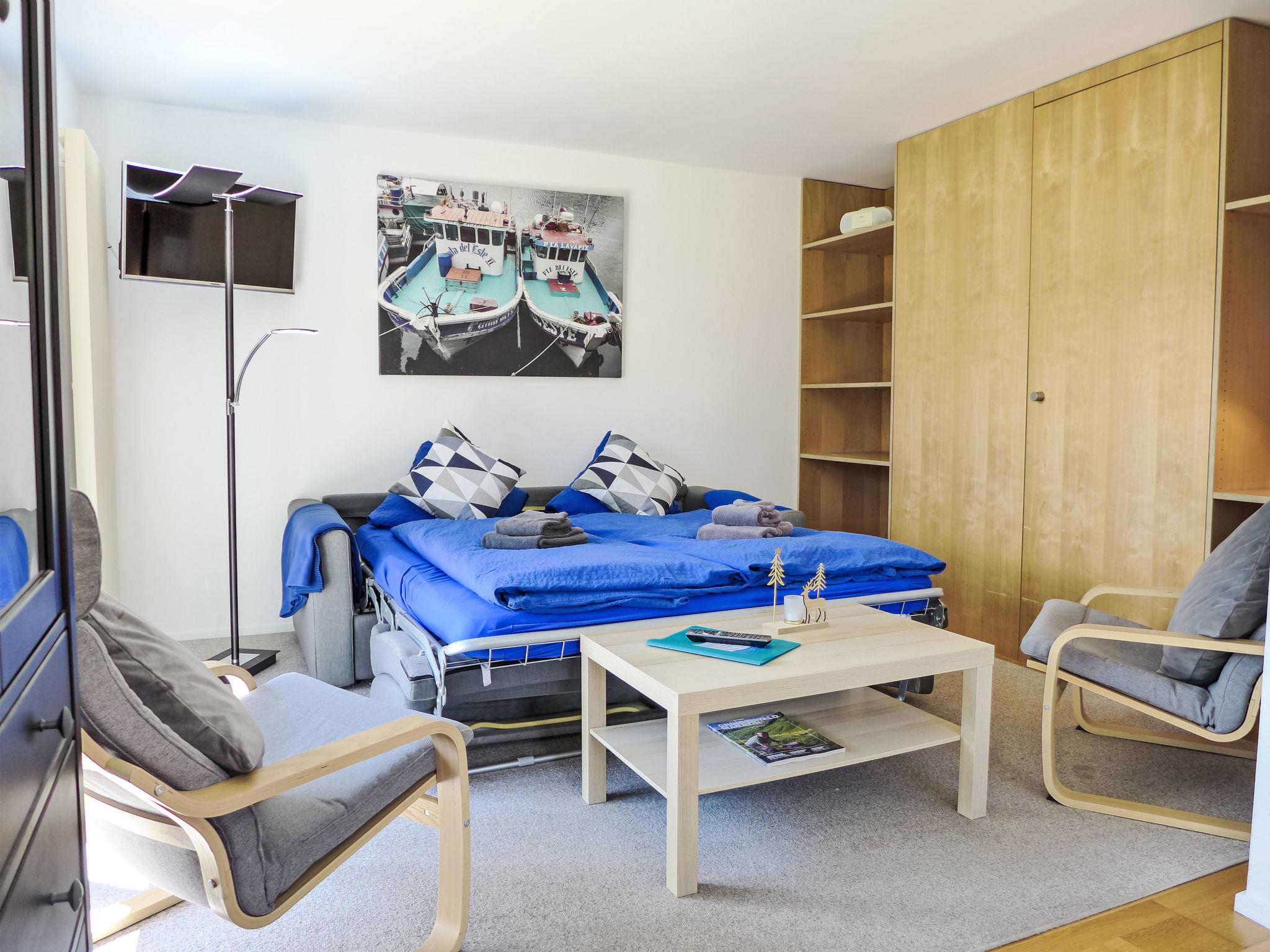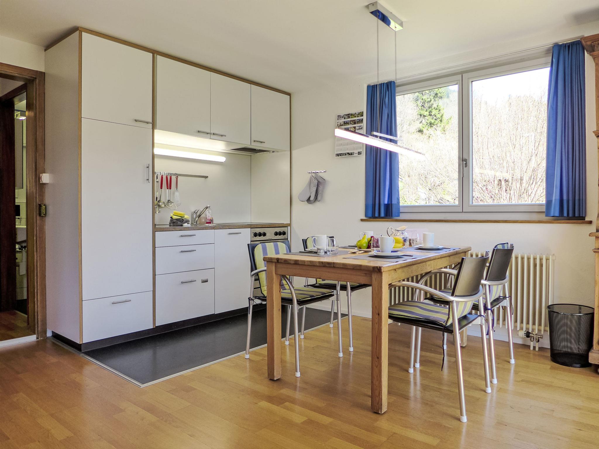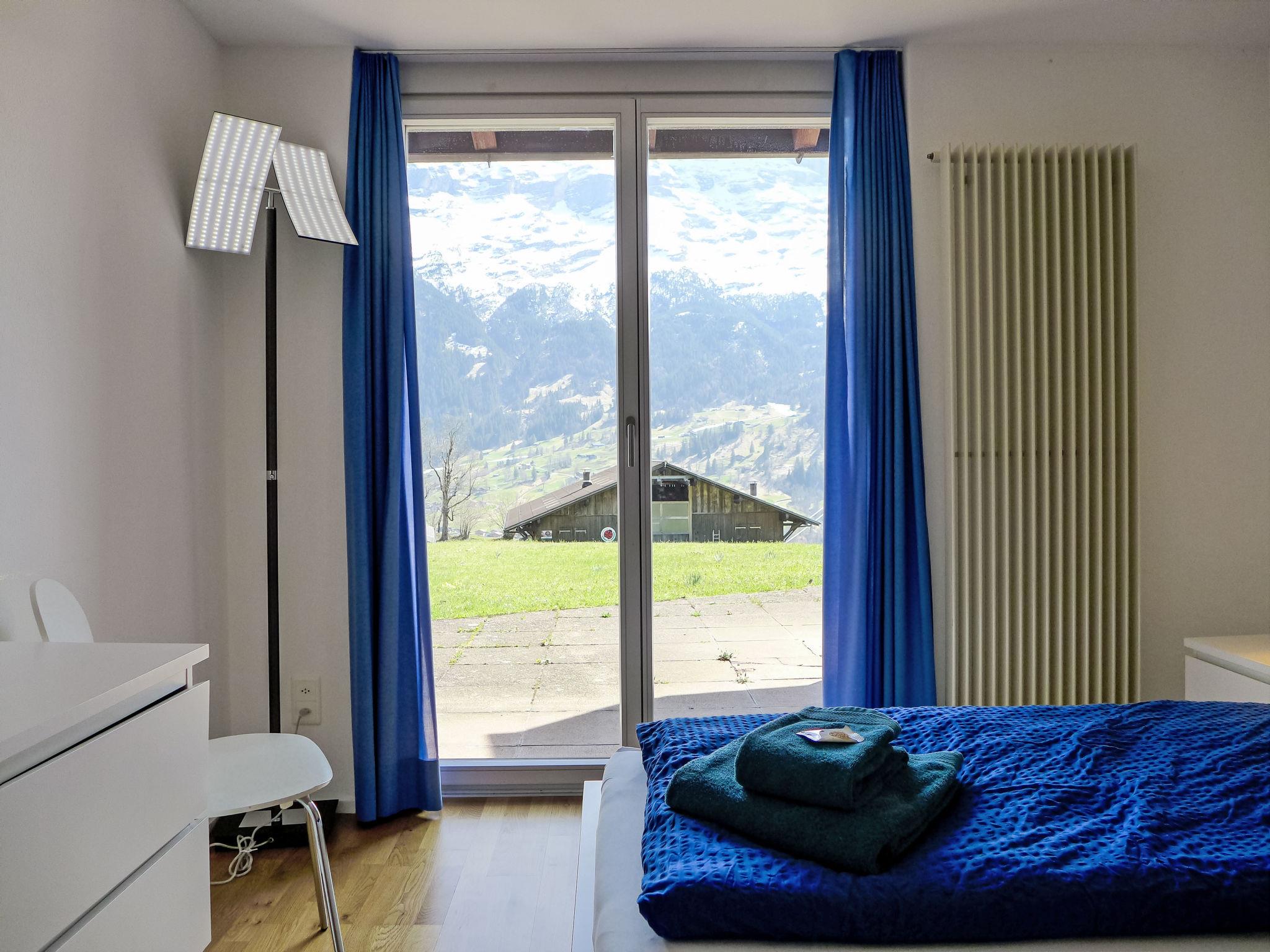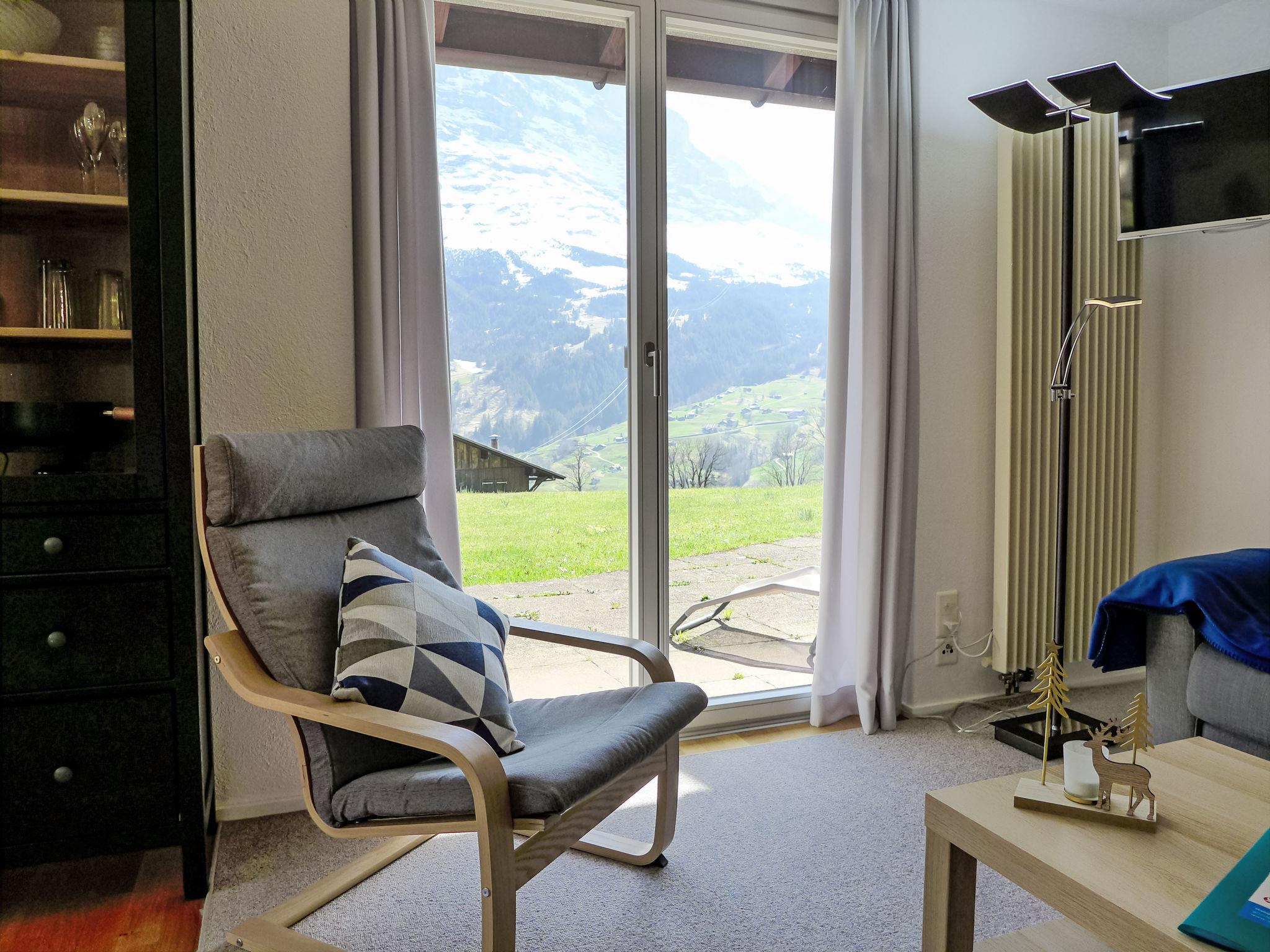 2-room apartment 64 m2, on the ground floor, south facing position. Practical and cosy furnishings: living/sleeping room with 1 double sofabed (140 cm, length 200 cm), satellite TV (flat screen), radio. Exit to the terrace. 1 room with 1 double bed (2 x 90 cm, length 200 cm). Open kitchen (4 hot plates, oven, dishwasher, toaster, kettle, electric coffee machine, Capsules for coffee machine (Dolce Gusto) extra, raclette grill, fondue Set (cheese)). Bathroom, sep. WC. Large terrace, south facing position. Terrace furniture. Marvellous view of the mountains, the valley and Eiger. Facilities: hair dryer. Internet (WiFi, free). Parking at the house. Please note: non-smokers only. Fire extinguisher.