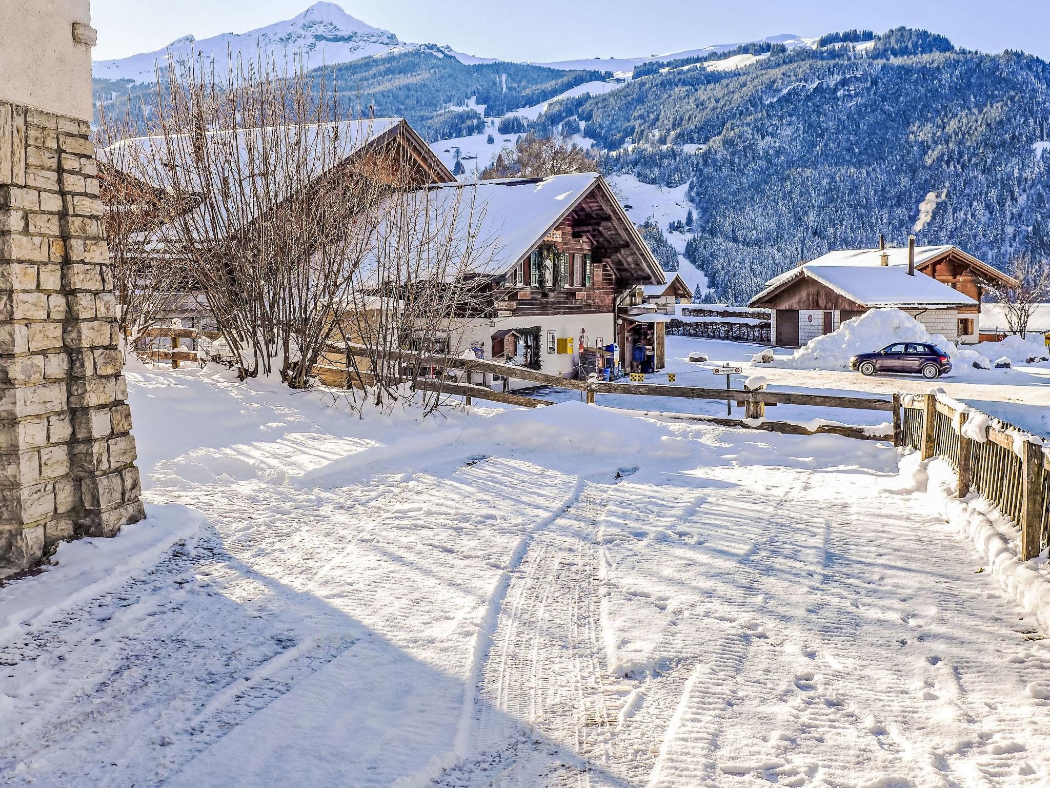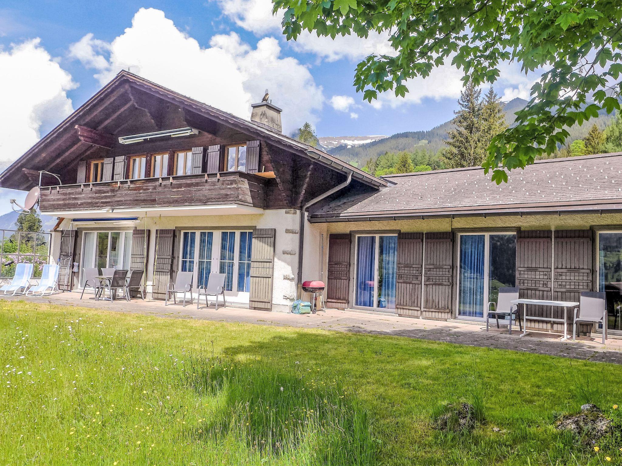 Beautiful apartment house "Chalet Jolimont", surrounded by meadows. In the district of auf dem Stutz, 1.6 km from the centre, in a quiet, sunny position, south facing position. For shared use: garden, meadow. In the house: storage room for skis, central heating system. In Winter: please take snow chains. Stepped path to the house. Parking at the house. Supermarket 1.7 km, shopping centre 1.7 km, restaurant 500 m, bicycle rental 1.9 km, bus stop "Stutz" 50 m, railway station "Grindelwald Dorf" 1.6 km, outdoor swimming pool 2.5 km, indoor swimming pool 1.7 km. Golf course (9 hole) 3 km, tennis 2.5 km, minigolf 2 km, sports centre 1.7 km, mountain railway 3 km, gondola lift 2 km, ski rental 1.7 km, ski bus stop 50 m, cross country ski track 2.5 km, children's playground 1.7 km. Well-known lakes can easily be reached: Thuner-/Brienzersee 20 km. Please note: no lift. Ski bus (free of charge). Additional accommodations can be booked. Neighbourhood highly sensitive to noise. Quietness and good behaviour expected.