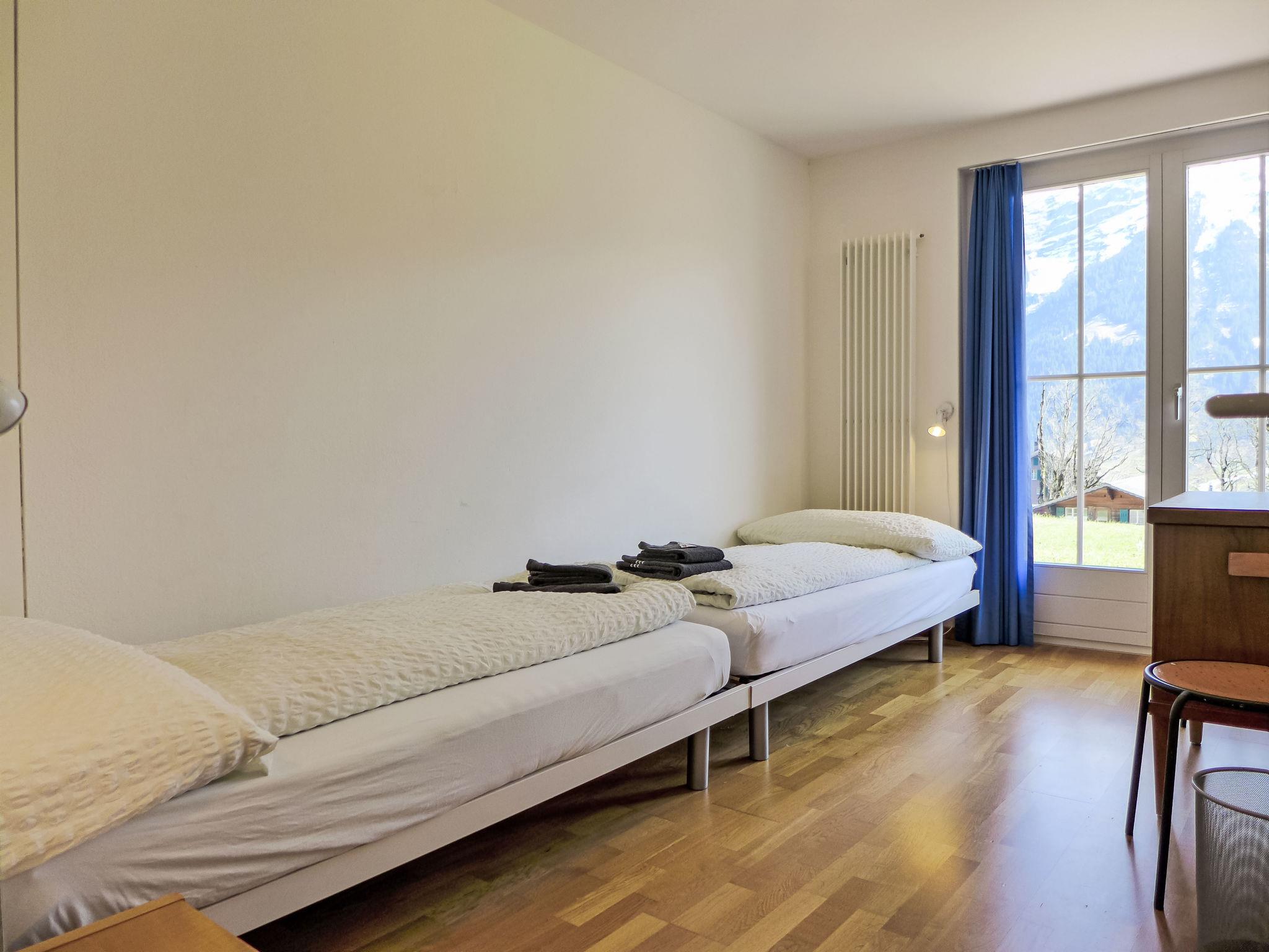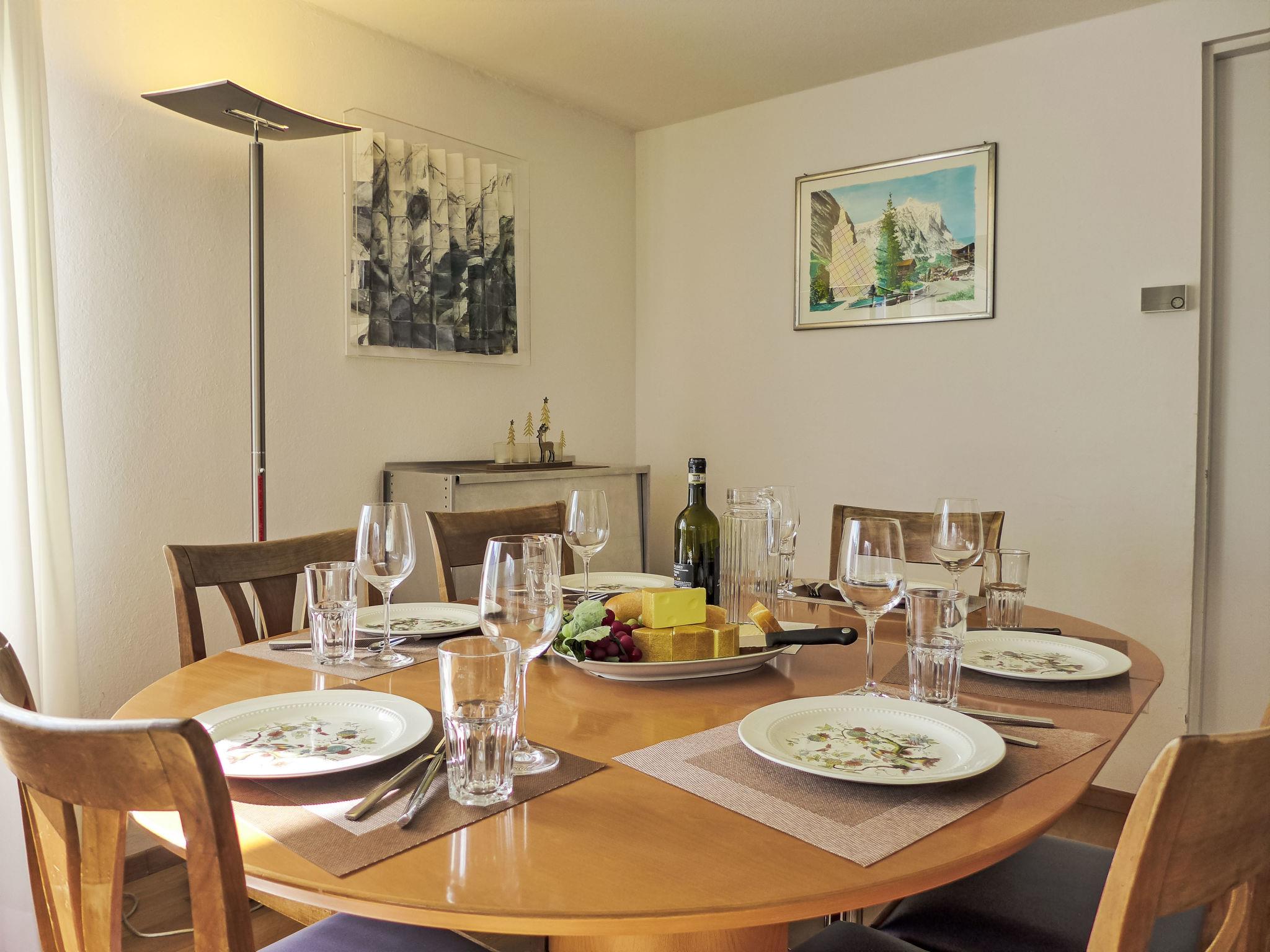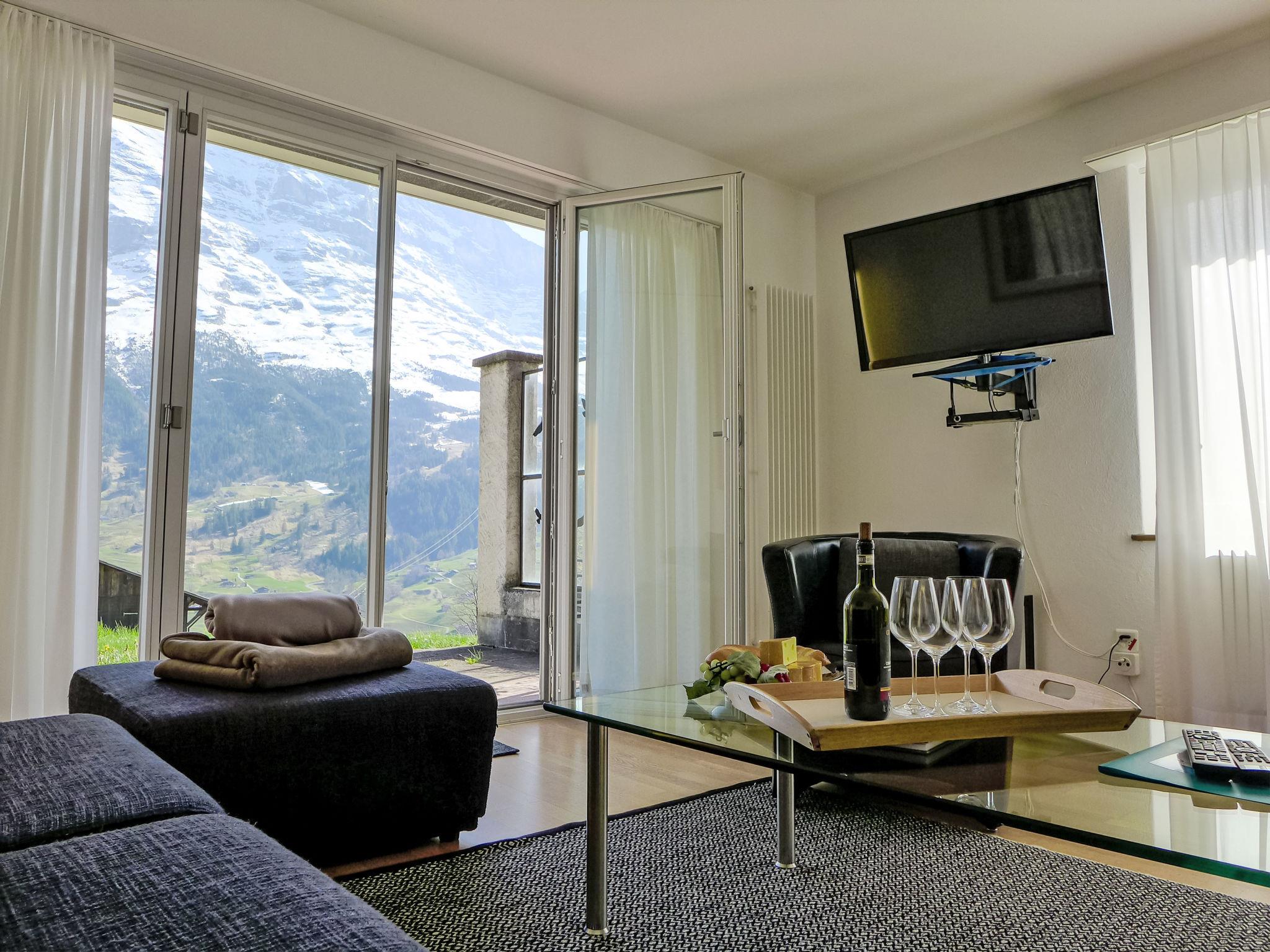 4-room apartment 86 m2, on the ground floor, south facing position. Practical and cosy furnishings: living/dining room 28 m2 with satellite TV (flat screen), radio and CD-player. Exit to the terrace. 2 rooms, each room with 2 beds (90 cm, length 200 cm). 1 room with 1 pull-out bed (2 pers. 2 x 90 cm, length 200 cm). Kitchen-/living room (oven, dishwasher, 4 ceramic glass hob hotplates, toaster, kettle, electric coffee machine, Capsules for coffee machine (Dolce Gusto) extra, raclette grill, fondue Set (cheese)). Bath/WC. Large terrace, south facing position. Terrace furniture. Marvellous view of the mountains, the valley and Eiger. Facilities: hair dryer. Internet (WiFi, free). Parking at the house. Please note: non-smokers only. Fire extinguisher.