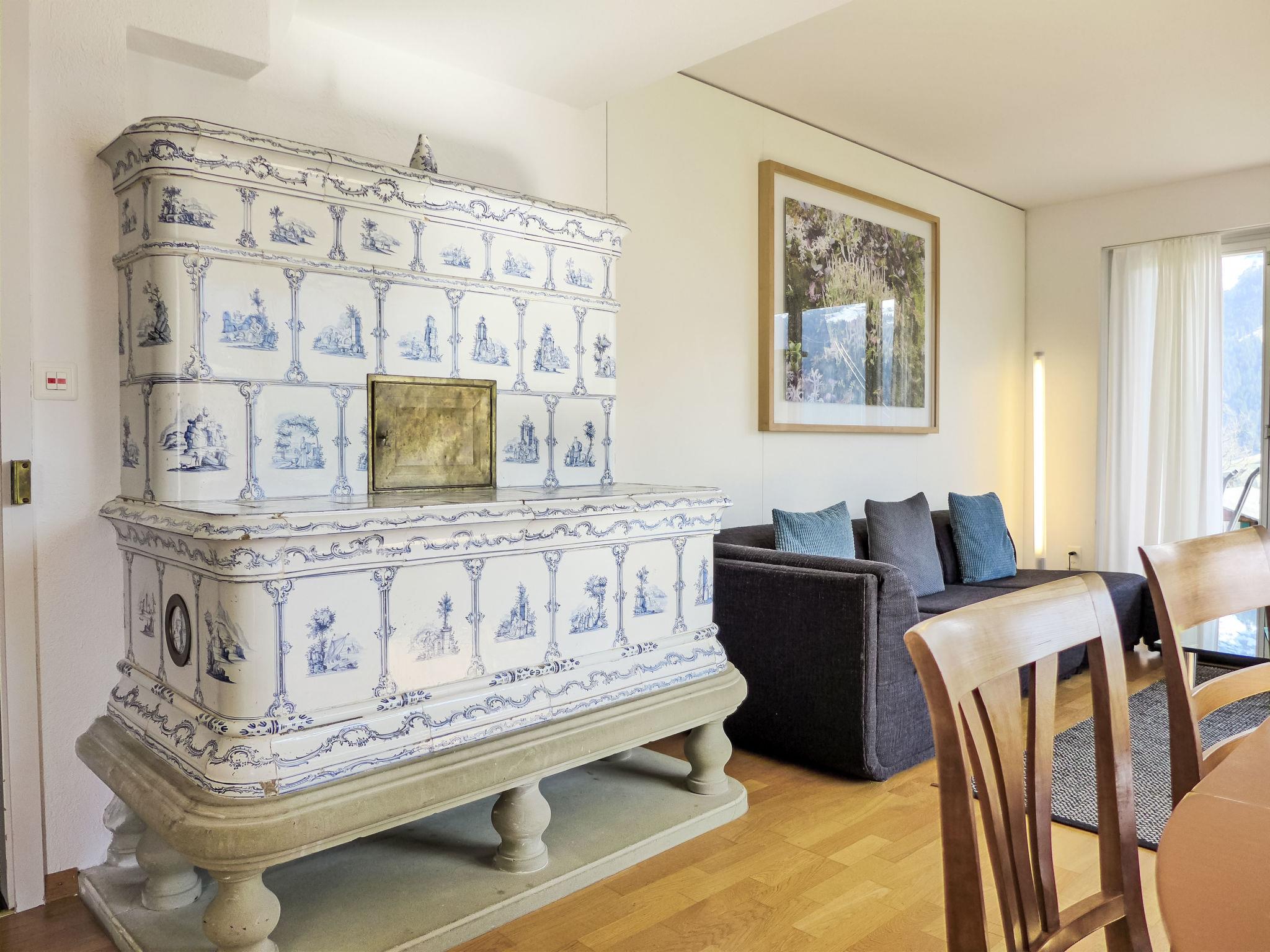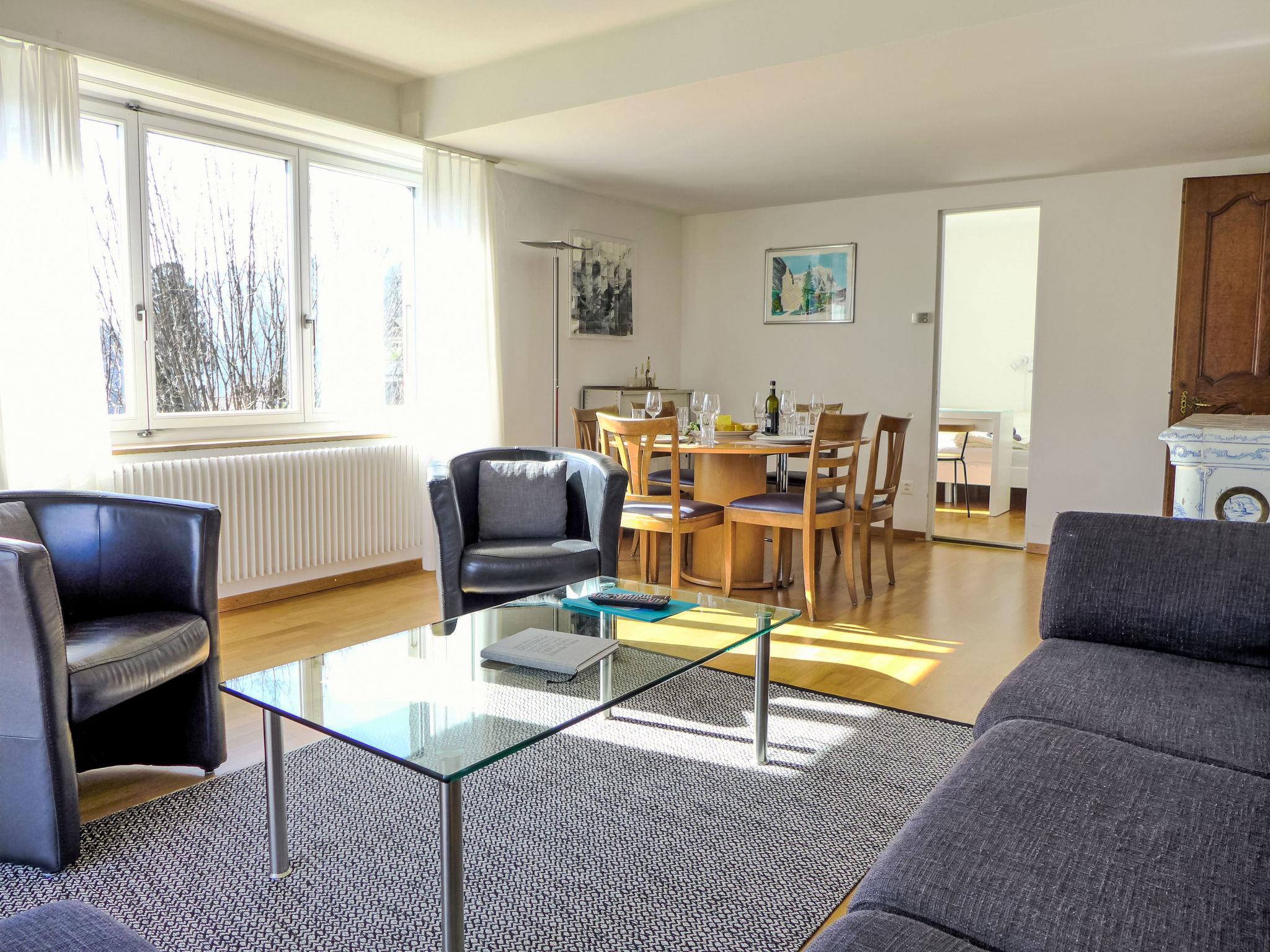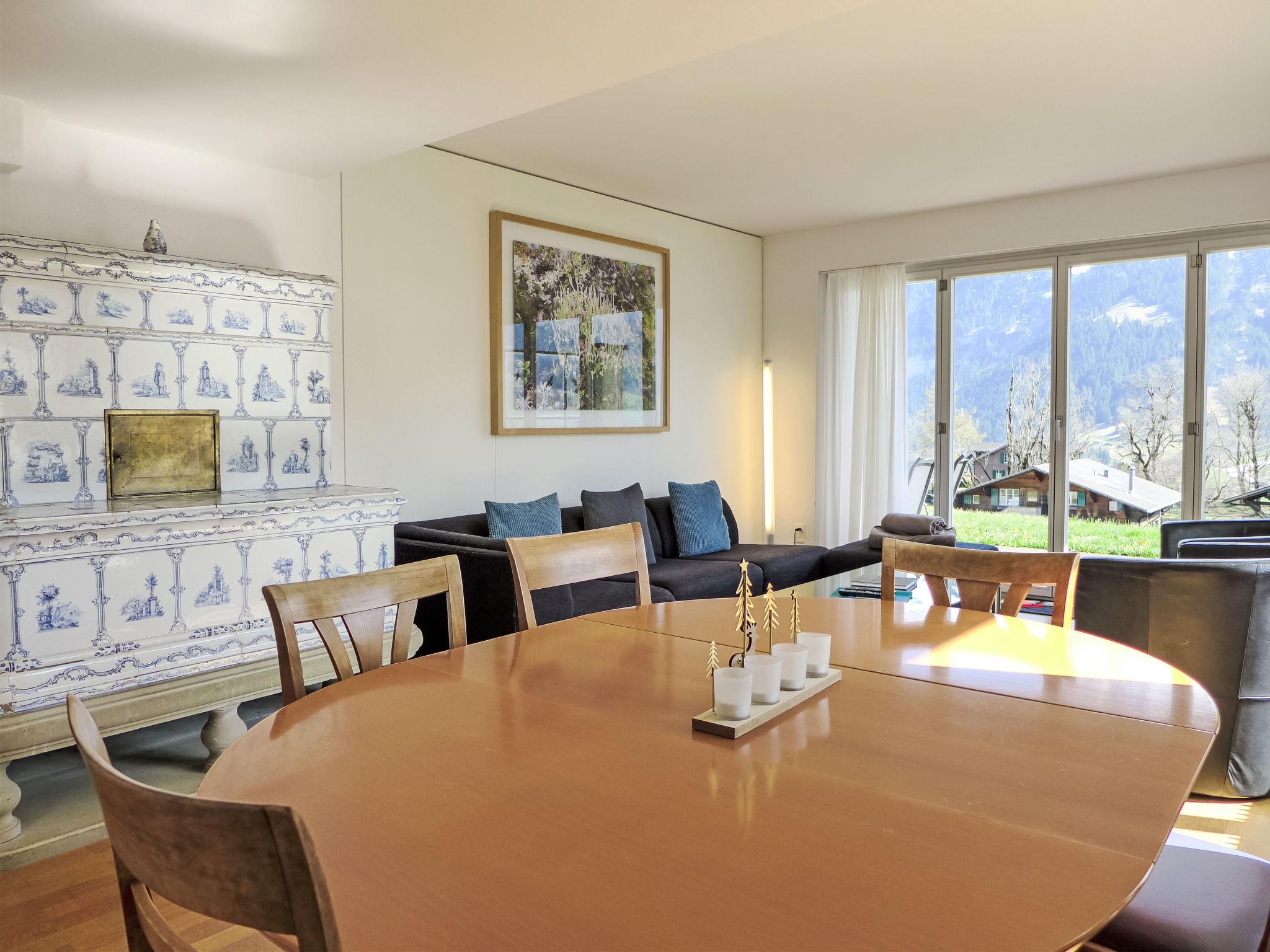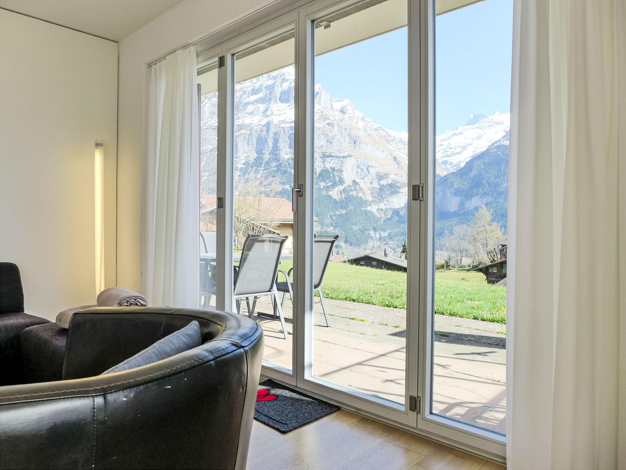 4-room apartment 86 m2, on the ground floor, south facing position. Practical and cosy furnishings: living/dining room 28 m2 with satellite TV (flat screen), radio and CD-player. Exit to the terrace. 2 rooms, each room with 2 beds (90 cm, length 200 cm). 1 room with 1 pull-out bed (2 pers. 2 x 90 cm, length 200 cm). Kitchen-/living room (oven, dishwasher, 4 ceramic glass hob hotplates, toaster, kettle, electric coffee machine, Capsules for coffee machine (Dolce Gusto) extra, raclette grill, fondue Set (cheese)). Bath/WC. Large terrace, south facing position. Terrace furniture. Marvellous view of the mountains, the valley and Eiger. Facilities: hair dryer. Internet (WiFi, free). Parking at the house. Please note: non-smokers only. Fire extinguisher.