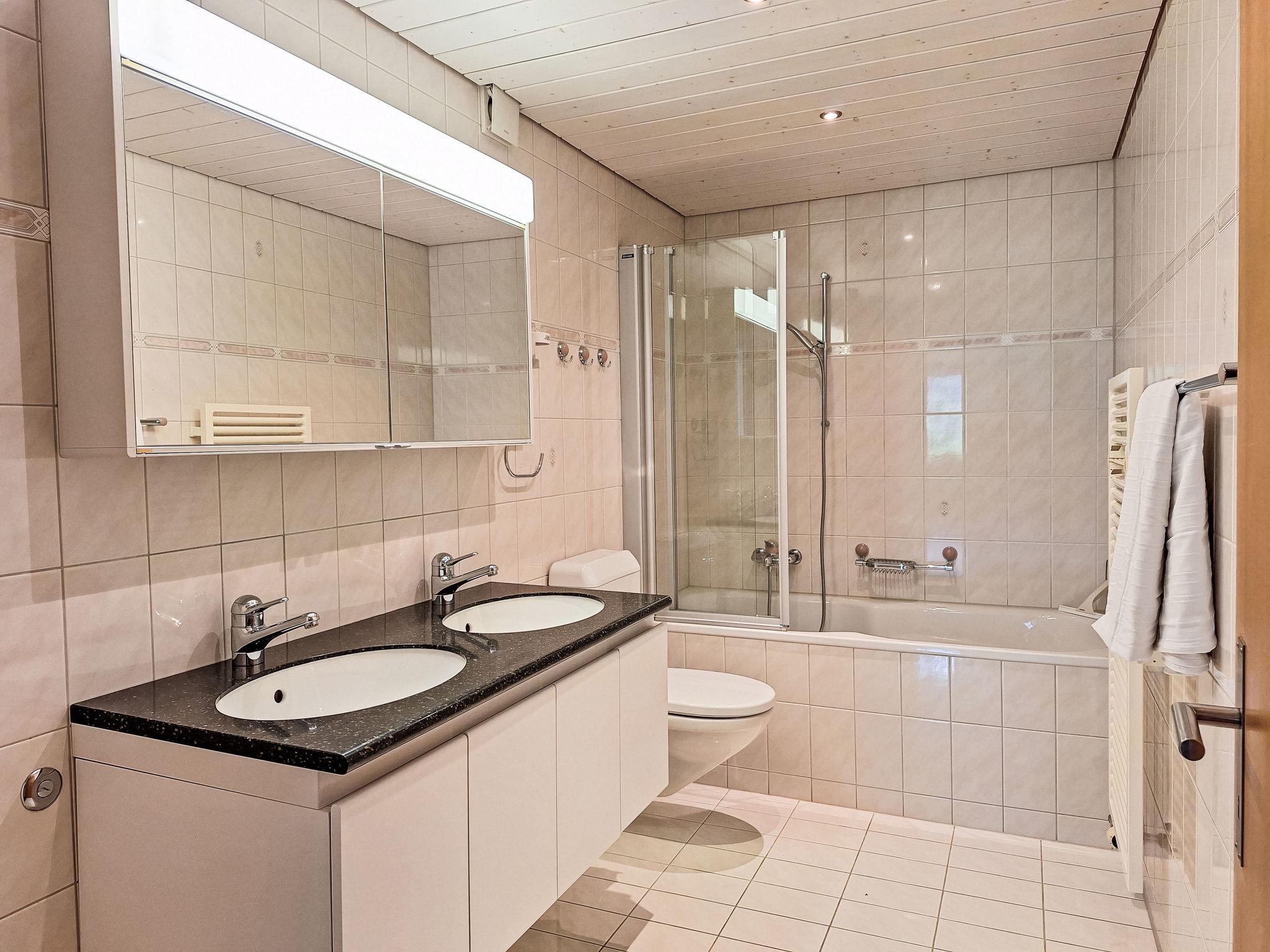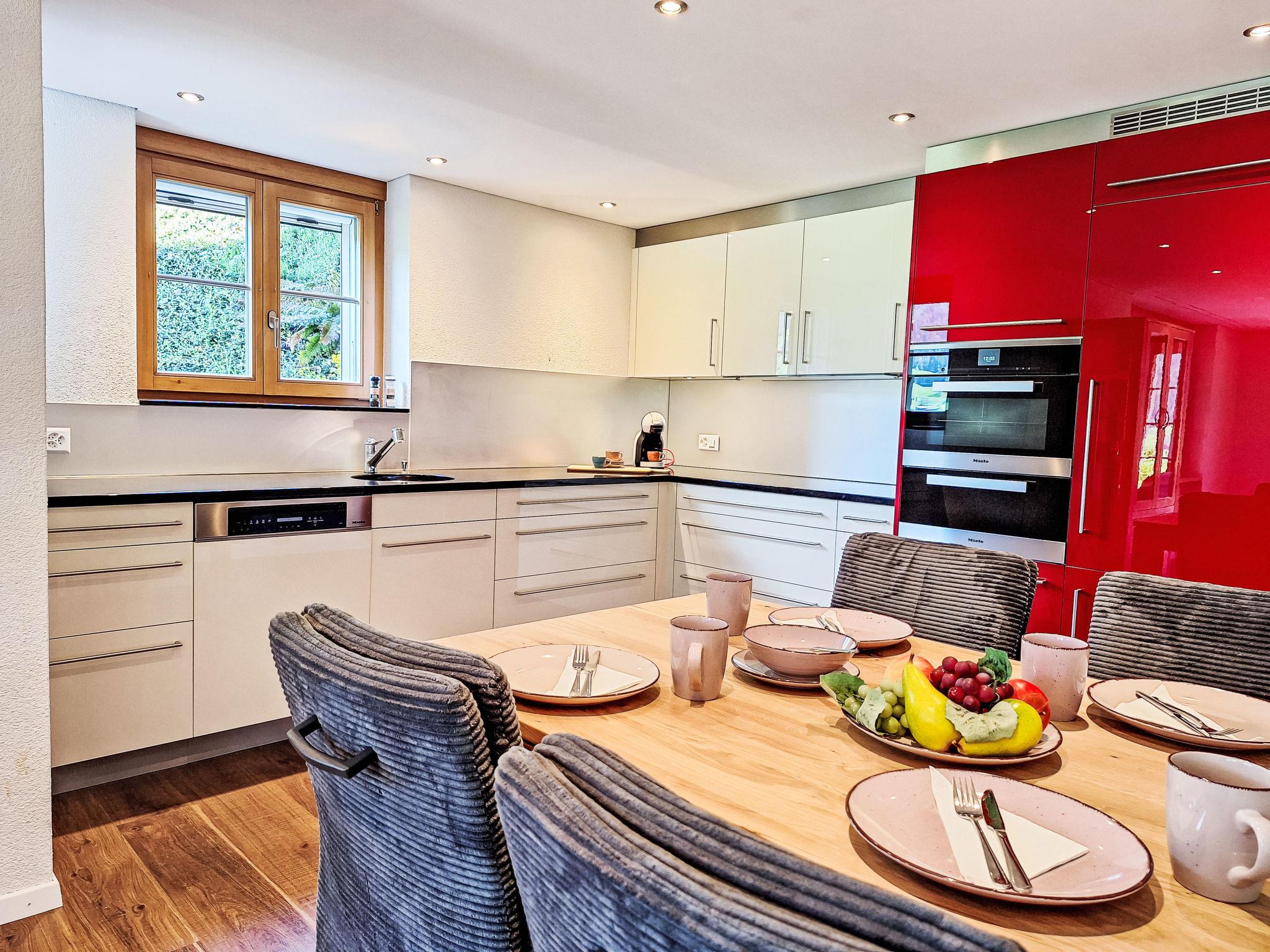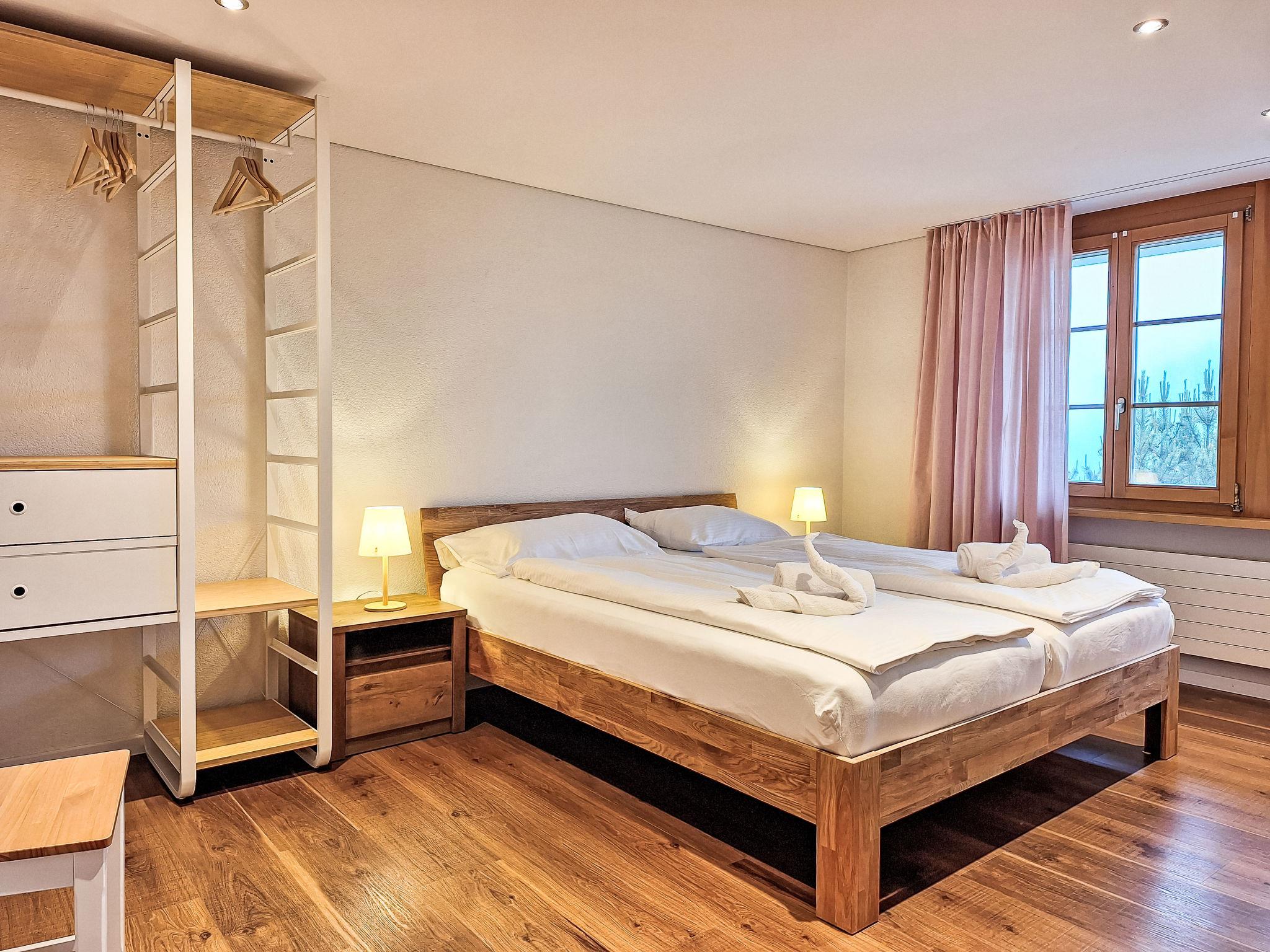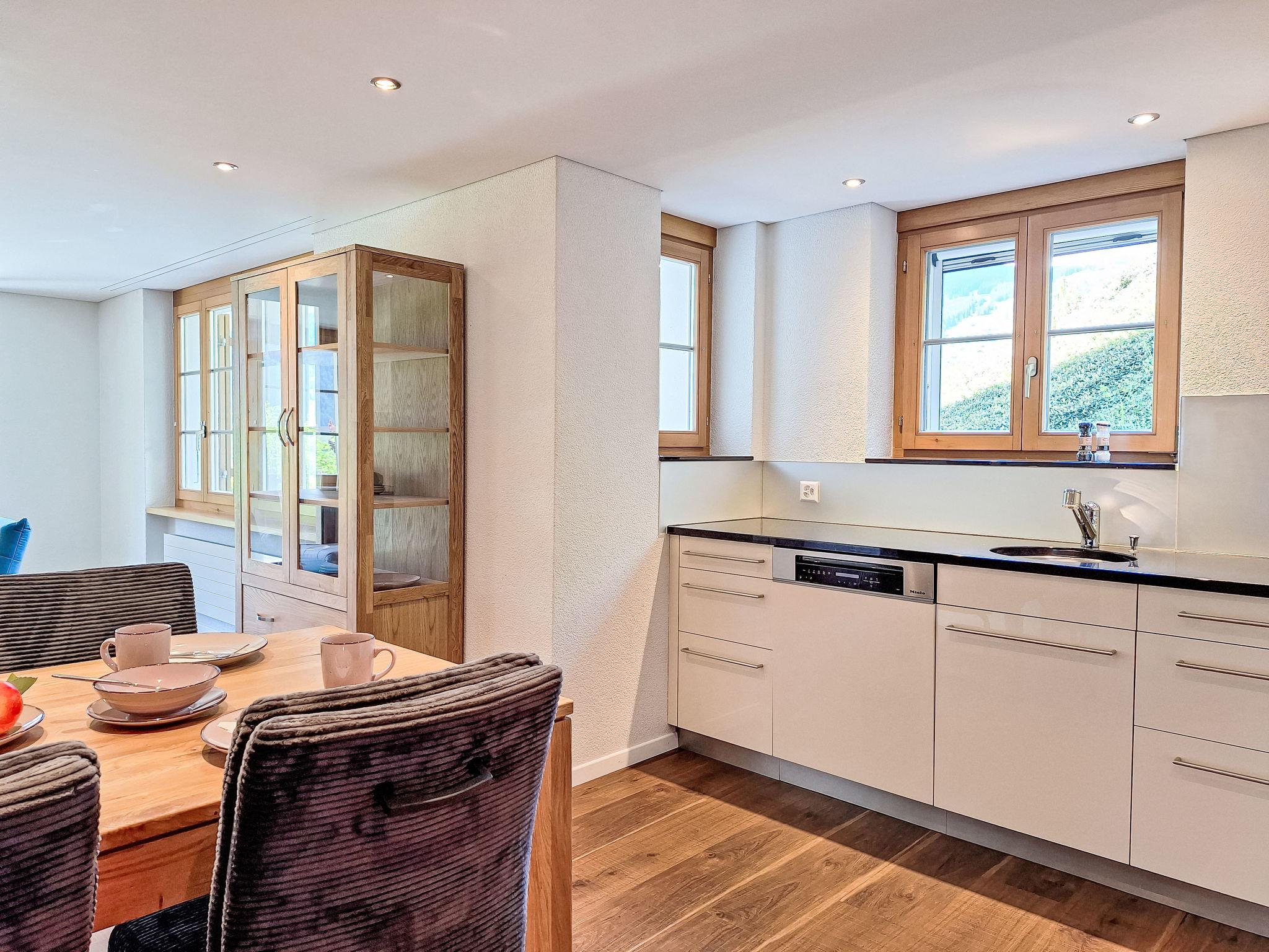Modern, very comfortable apartment house "Chalet Adlerhorst", 3 storeys. In the district of Herrschaft, 1.6 km from the centre, in a quiet, sunny position on a slope. In the house: storage room for skis, central heating system, washing machine, tumble dryer (for shared use). Motor access to the house. In Winter: please take snow chains. Parking at the house. Shop 1.6 km, grocery 500 m, bus stop "Stein" 270 m, railway station "Grindelwald Dorf" 1.4 km, outdoor swimming pool 2.8 km, indoor swimming pool 1.6 km. Golf course (9 hole) 4 km, cable car 3 km, skisport facilities 3 km, children's ski school 2.2 km. Well-known lakes can easily be reached: Thuner-/Brienzersee. Please note: car recommended.