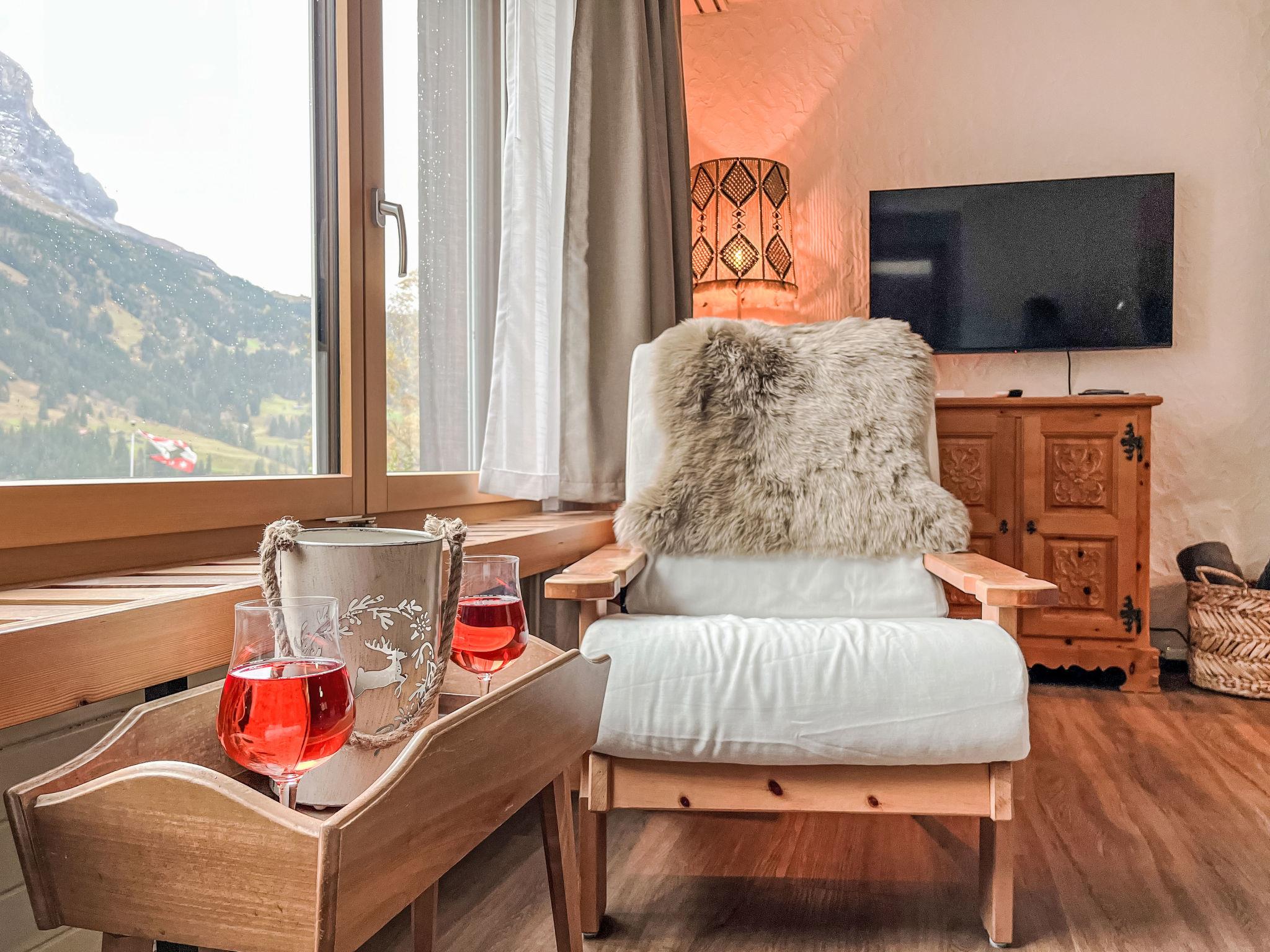 "SnowKaya Grindelwald", 2-room apartment 65 m2, on the upper ground floor, south facing position. Bright, cosy furnishings: living/sleeping room with 2 beds (90 cm, length 200 cm), open-hearth fireplace, cable TV, flat screen and radio. Exit to the balcony, south facing position. 1 double bedroom. Exit to the balcony. Open kitchen (4 hot plates, oven, 4 ceramic glass hob hotplates, toaster, microwave, electric coffee machine, Capsules for coffee machine (Nespresso) extra, raclette grill, fondue Set (cheese)) with hatch. Bath/WC. Balcony 9 m2, south facing position. Balcony furniture. Marvellous view of the mountains and Eiger. Facilities: Internet (WiFi, free). Parking, garage at the house. Please note: suitable for families. Non-smokers only. Private entrance.