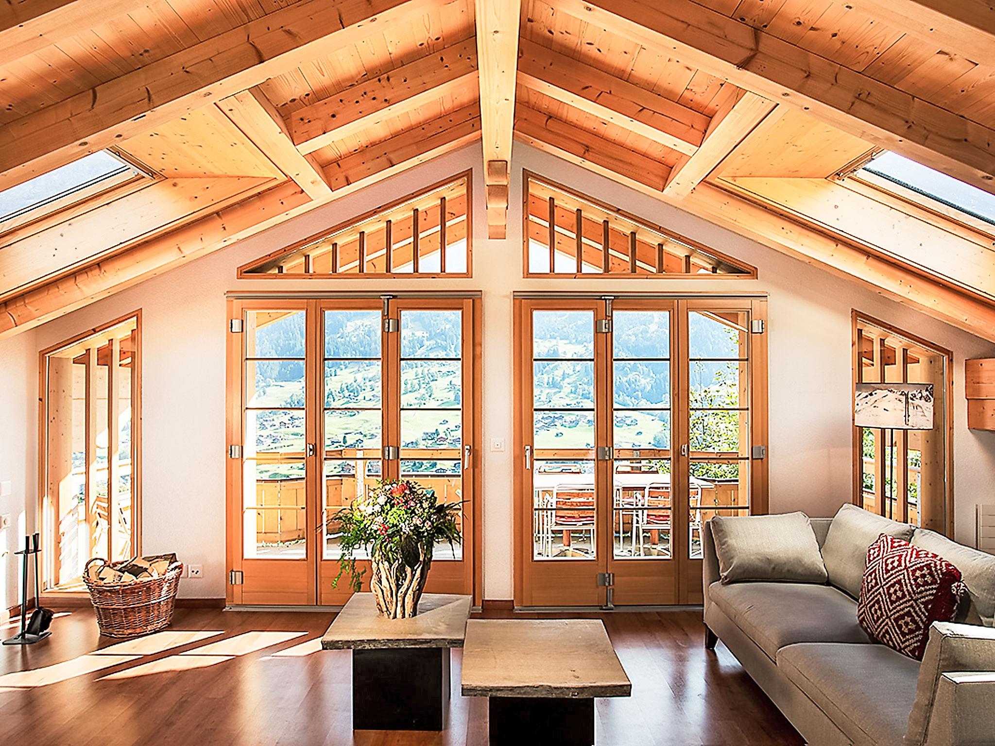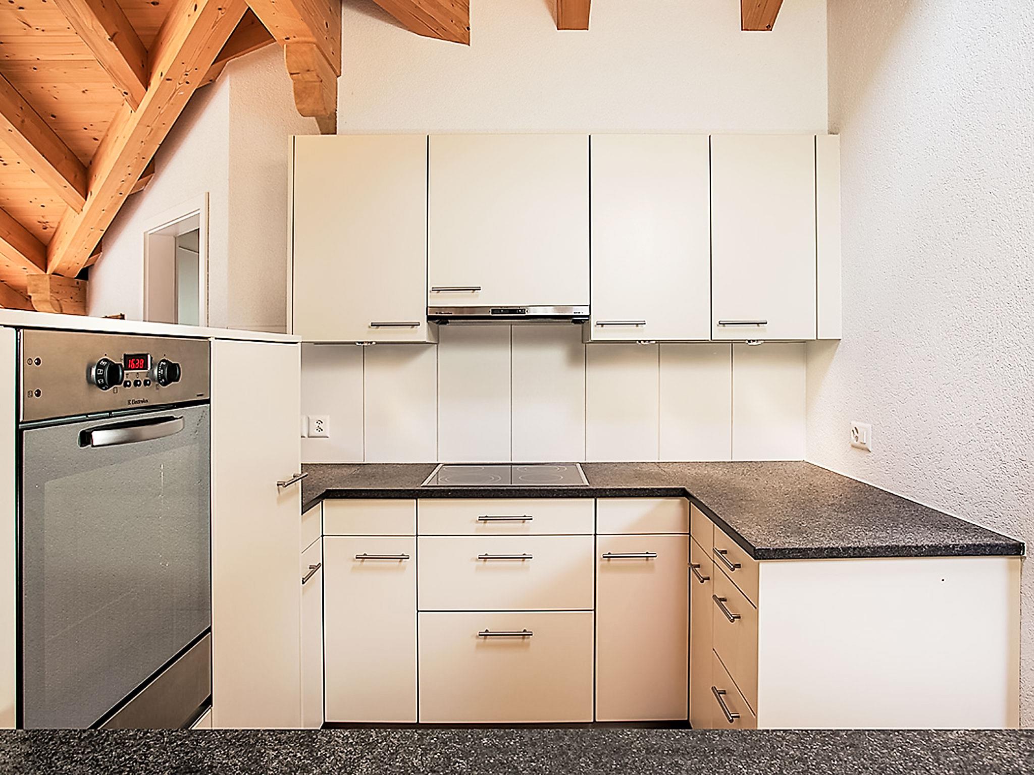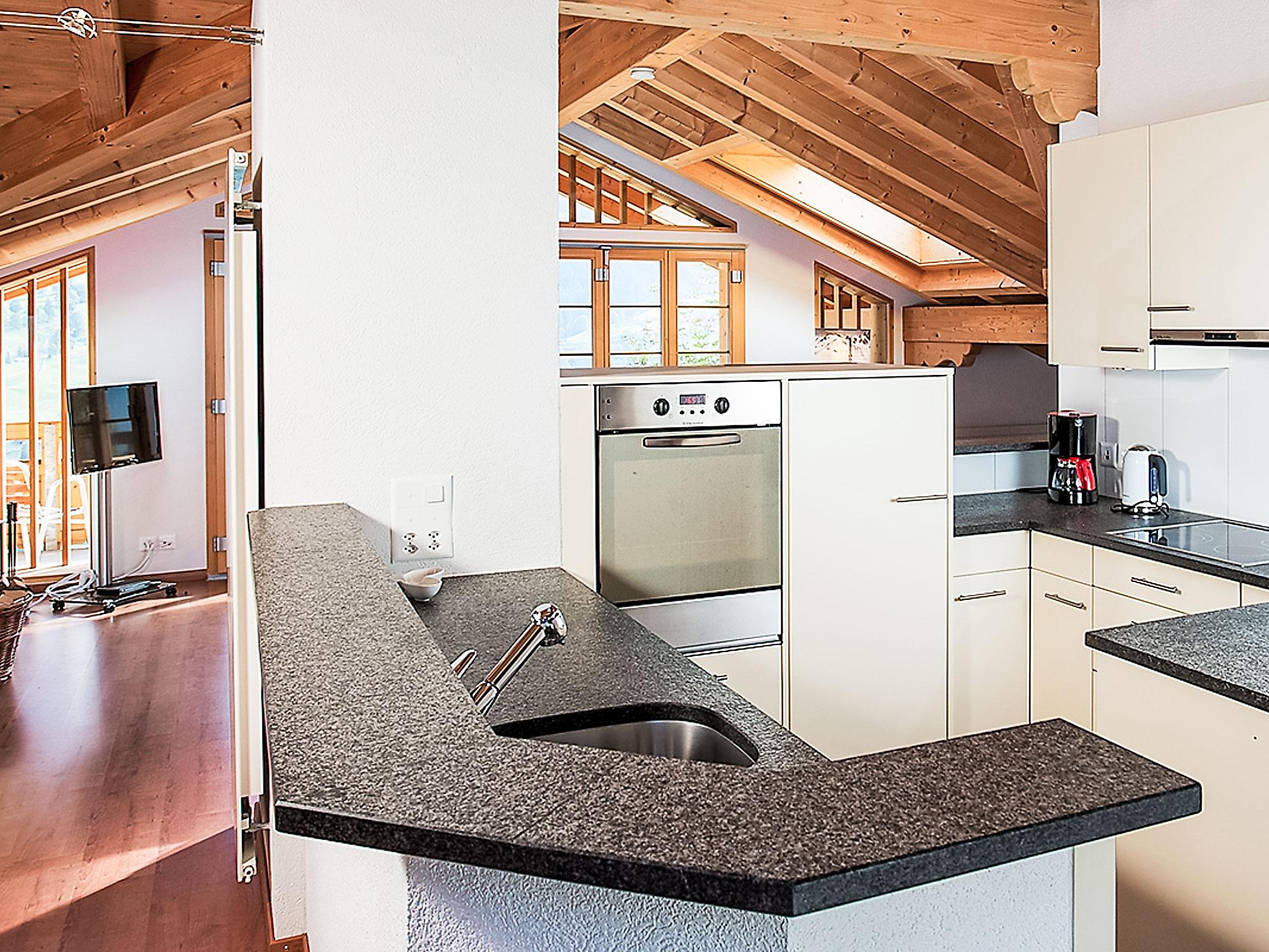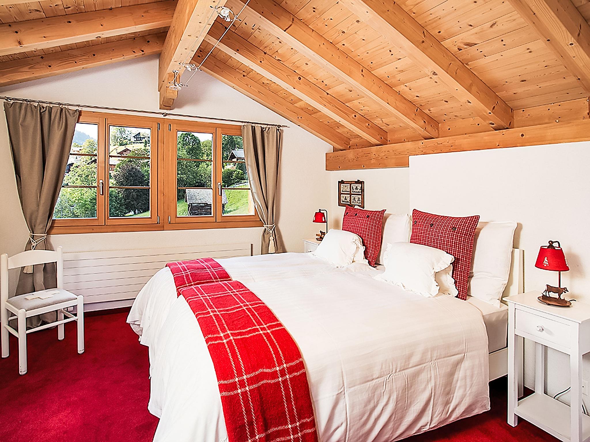 4-room apartment 130 m2, on the top floor, south facing position. Partly with sloping ceilings, beautiful and tasteful furnishings: open living/dining room with sloping ceilings with open-hearth fireplace and cable TV (flat screen), radio. Exit to the balcony, south facing position. 1 room with 1 double bed (2 x 90 cm, length 200 cm). 1 room with 2 beds (90 cm, length 200 cm). 1 small room with 1 bed (90 cm, length 200 cm). Open kitchen (oven, dishwasher, 4 ceramic glass hob hotplates, electric coffee machine, Capsules for coffee machine (Nespresso) extra, raclette grill, fondue Set (cheese)). Bath/WC, shower/WC. Floor heating, boiler (300 litres). Large balcony, south facing position. Balcony furniture. Marvellous view of the mountains, the valley and Eiger. Facilities: hair dryer. Internet (WiFi, free). Parking space n 2 (roofed, 1 car). Please note: non-smokers only. Private entrance, fire extinguisher.