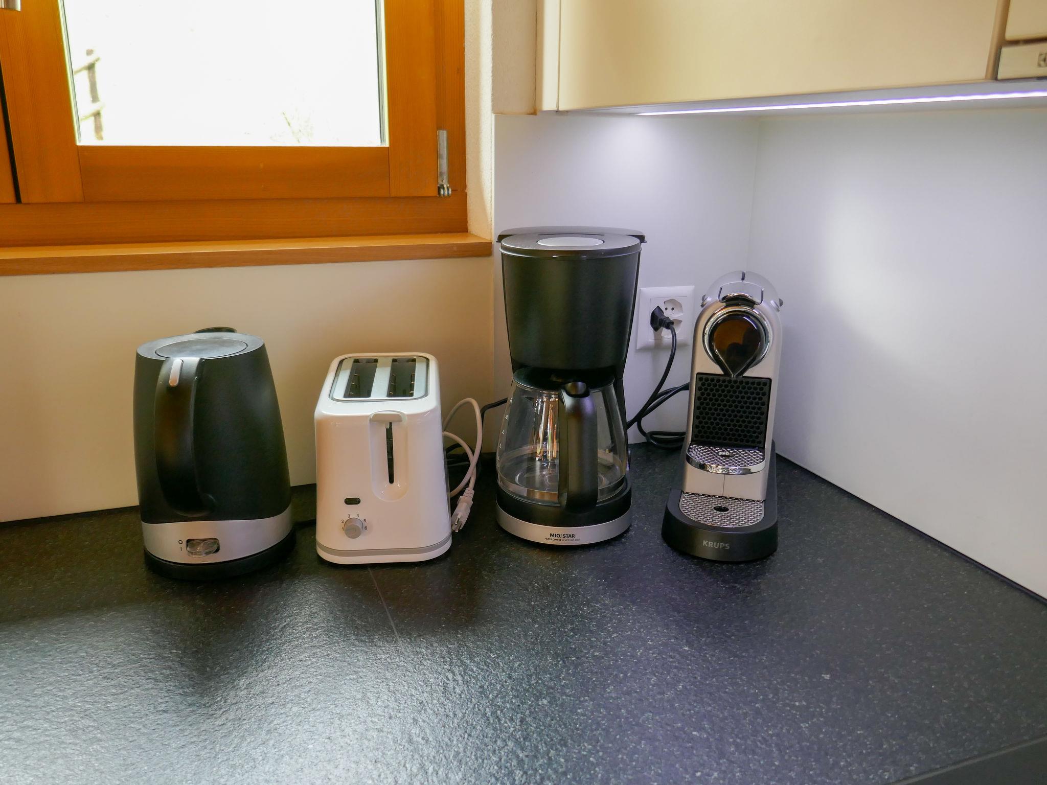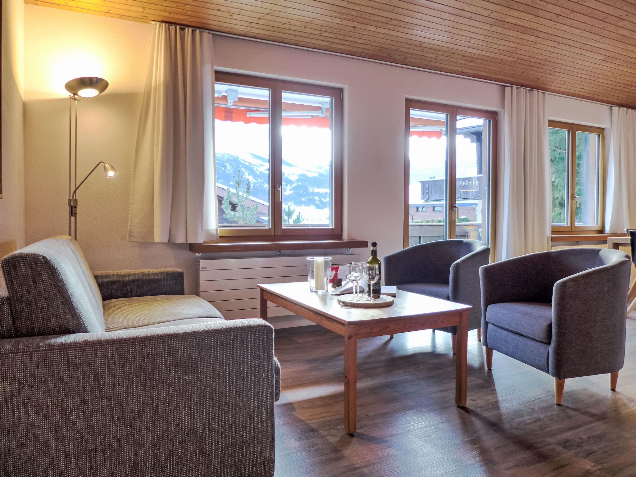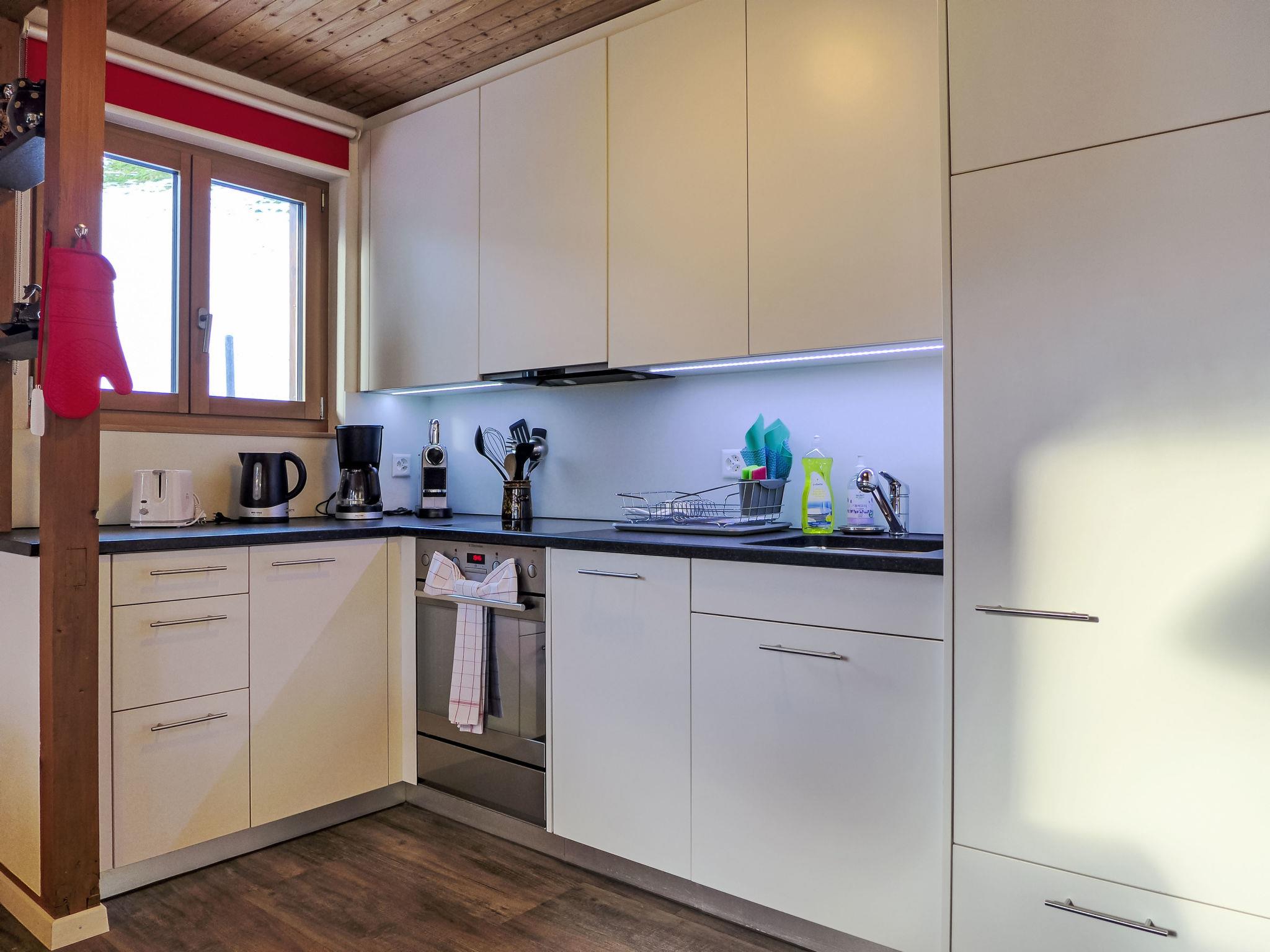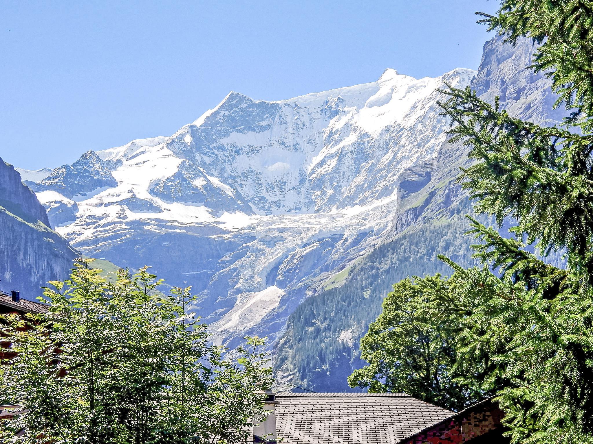 "Chalet Bienli Mitte", 3-room apartment 80 m2, on the upper ground floor, south facing position. Spacious and bright, partly renovated in 2024, very comfortable and cosy furnishings: open living/dining room with dining nook and cable TV (flat screen), radio. Exit to the balcony, south facing position. 1 room with 1 double bed (2 x 80 cm, length 200 cm). Exit to the balcony, south facing position. 1 room with 2 beds (90 cm, length 200 cm). Open kitchen (oven, dishwasher, 4 ceramic glass hob hotplates, toaster, kettle, microwave, electric coffee machine, Capsules for coffee machine (Nespresso) extra, raclette grill, fondue Set (cheese)). Bath/WC. Parquet floors. Balcony 18 m2, south facing position. Balcony furniture. Marvellous panoramic view of the mountains and Eiger. Facilities: children's high chair, baby cot (extra), hair dryer. Internet (WiFi, free). Parking (1 car) at 50 m. Please note: non-smokers only. Fire extinguisher. When there are less than the maximum number of guests staying at the property, not all of the bedrooms will be available for use.