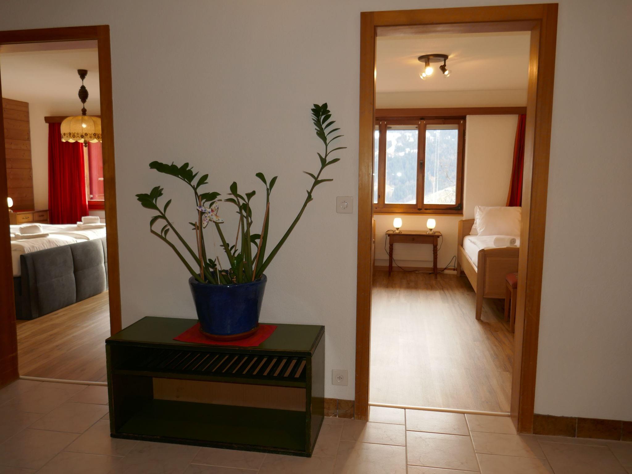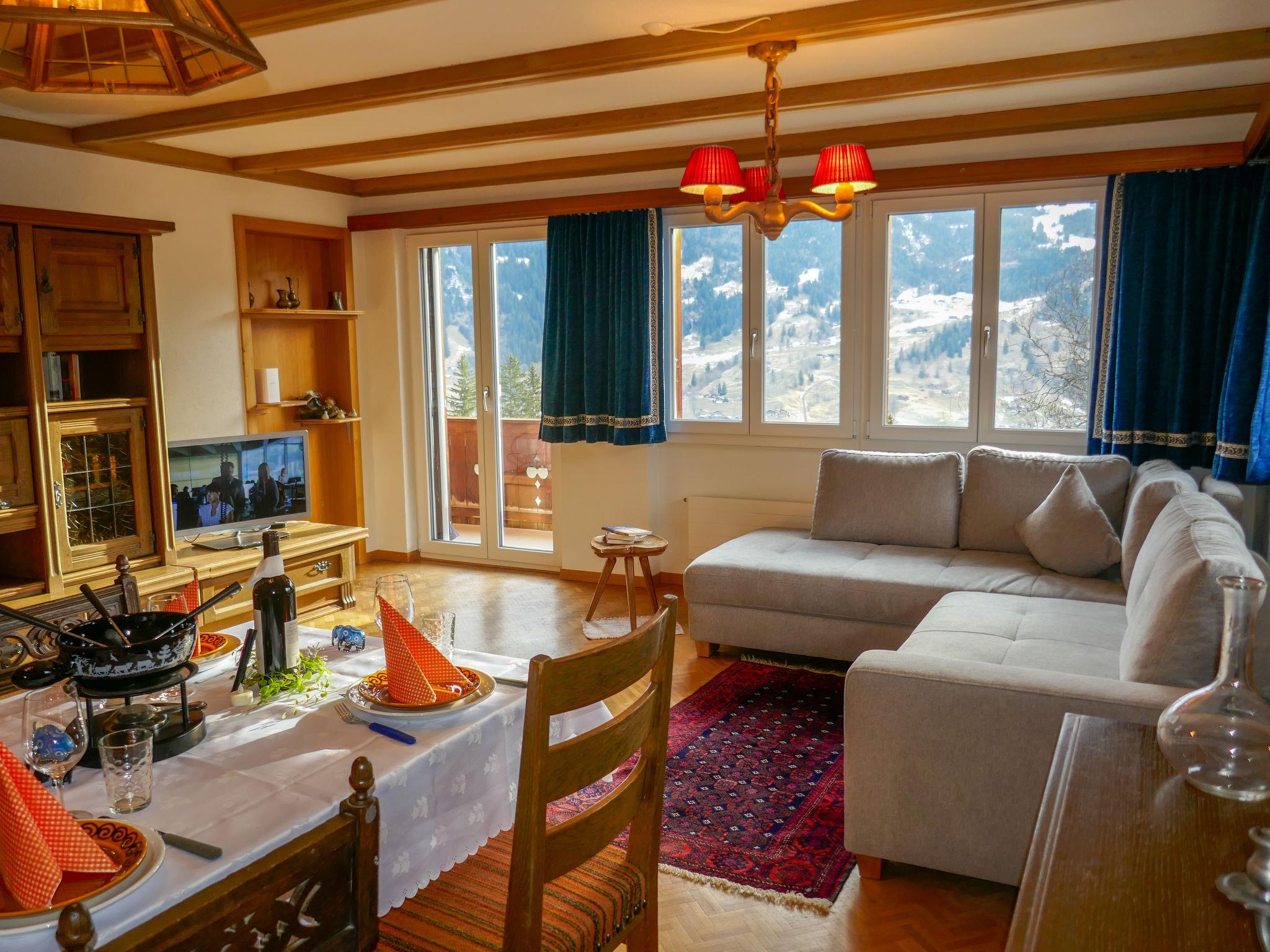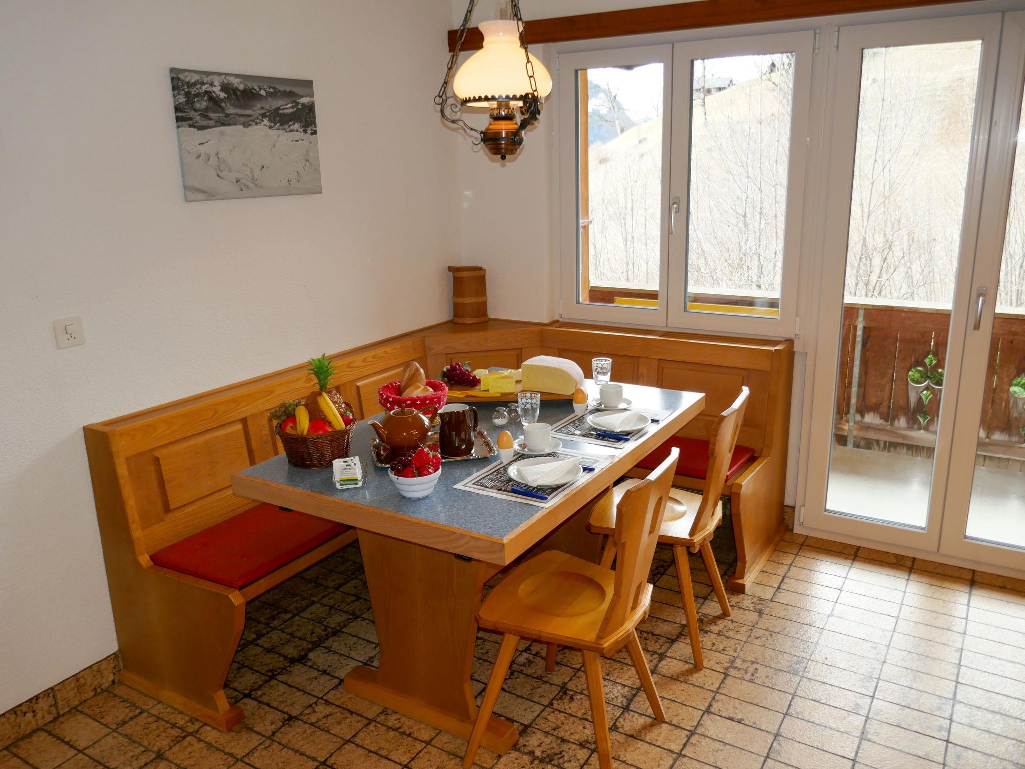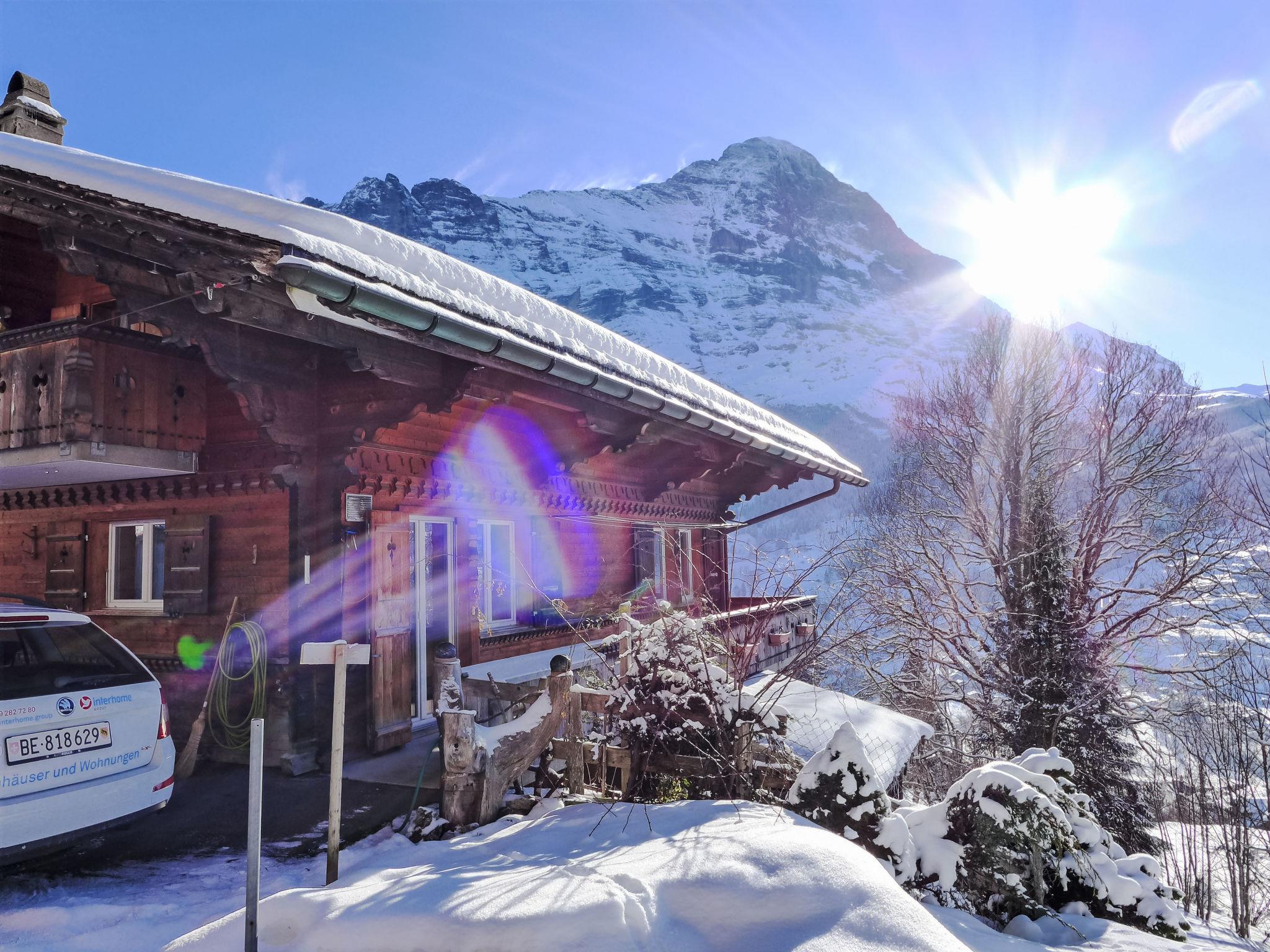 Beautiful, cosy apartment house "Chalet uf Duft". In the district of uf Tuft, 2 km from the centre, in a secluded, quiet position on a slope, in the countryside. In the house: central heating system. Steep, narrow motor access. In Winter: please take snow chains. Parking at the house. Shopping centre 2 km, restaurant 2 km, bicycle rental 2.3 km, 30 minute walk to the centre, bus stop "Gaggi Säge" 300 m, railway station "Dorf" 1.9 km, outdoor swimming pool 3.5 km, indoor swimming pool 2 km. Golf course (9 hole) 4.8 km, tennis 4 km, minigolf 2.5 km, sports centre 2 km, walking paths from the house 30 m, gondola lift 2.6 km, ski rental 1.3 km, ski bus stop 300 m, ski school 1.3 km, children's ski school 1.3 km, children's playground 2 km. Well-known lakes can easily be reached: Thuner-/Brienzersee 20 km. Please note: ski bus (free of charge). The keys‘ handover takes place by the agency Int in Grindelwald, 3 km. The owner lives in the same residence. Neighbourhood highly sensitive to noise. Quietness and good behaviour expected.