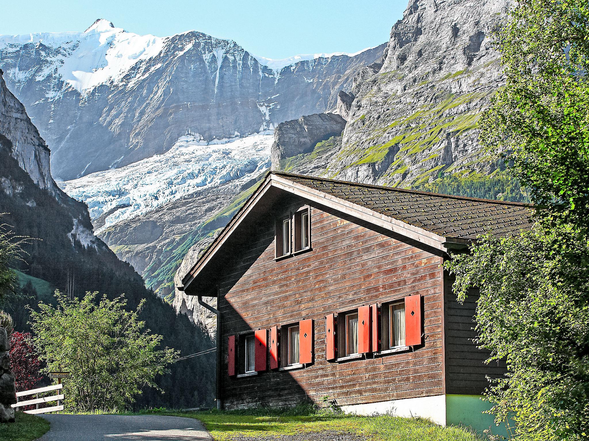 Cosy chalet "Egg-Isch", detached. In the district of Isch, 1.2 km from the centre, in a quiet, sunny position on a slope, in the countryside, south facing position. Private: property. In the house: central heating system. Parking at the house. Shopping centre 1.2 km, restaurant 400 m, bakery 1 km, café 800 m, bicycle rental 1.2 km, bus stop "Lauberhorn" 400 m, railway station "Dorf" 1.8 km, outdoor swimming pool 2.8 km, indoor swimming pool 1.7 km. Golf course (9 hole) 2.5 km, tennis 1.8 km, minigolf 1.5 km, sports centre 1.7 km, mountain railway 1.8 km, gondola lift 1.2 km, children's playground 1.7 km. Well-known lakes can easily be reached: Thuner-/Brienzersee 20 km. Please note: car recommended, no lift. The keys‘ handover takes place by the agency Interhome in Grindelwald.