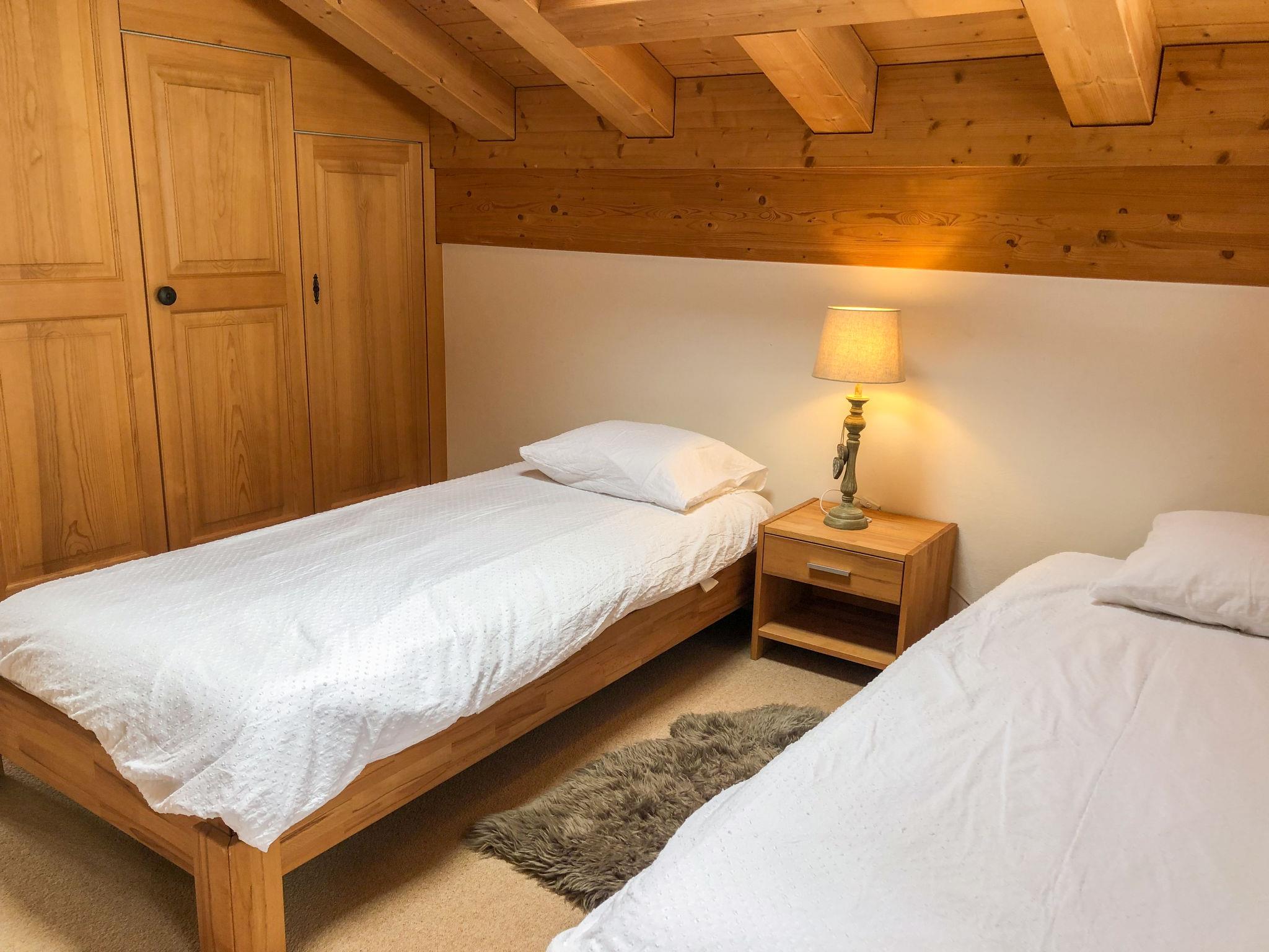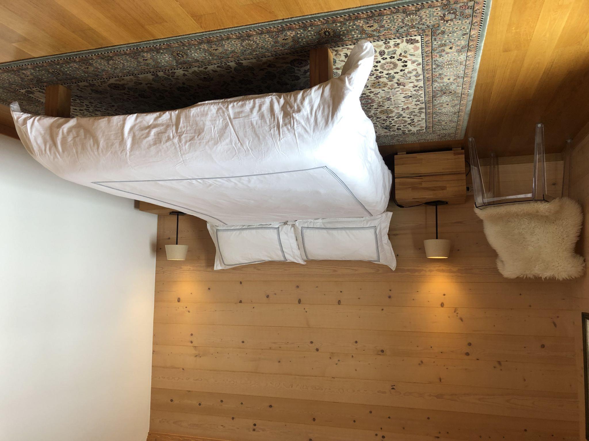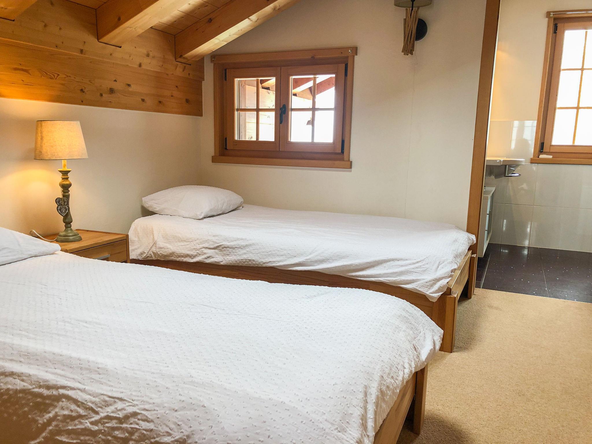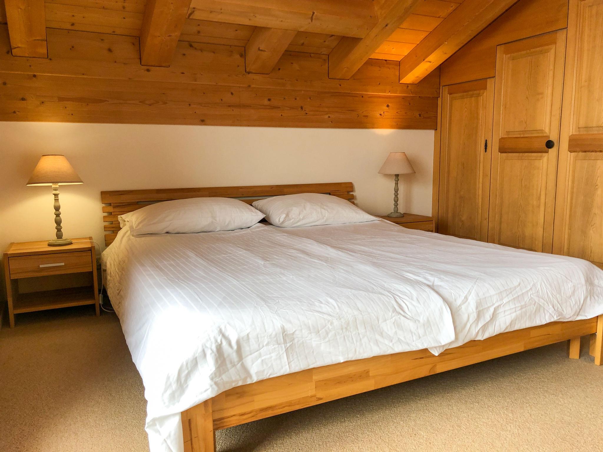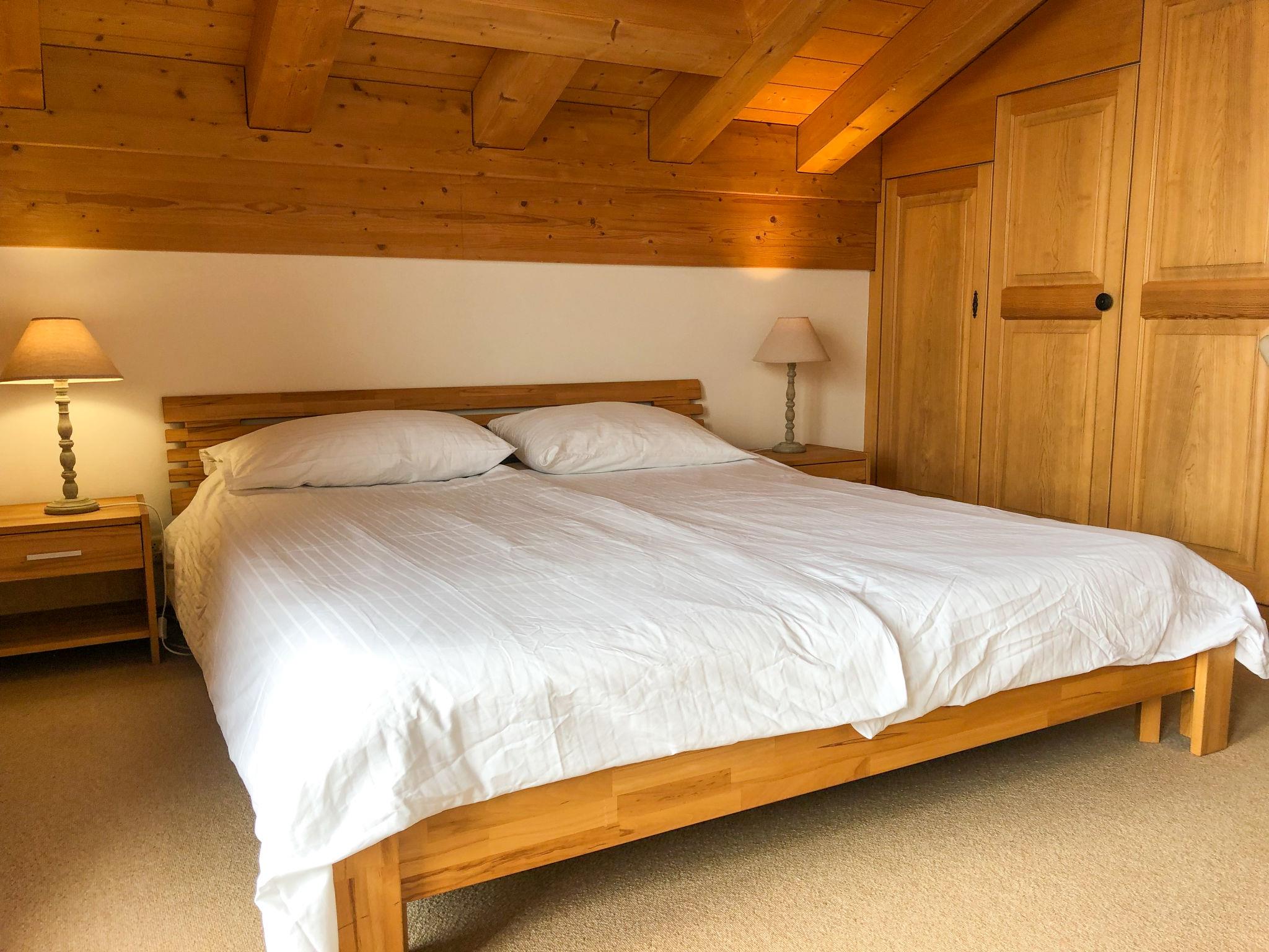 4-room apartment 119 m2 on 1st floor, south facing position. Comfortable and cosy furnishings: living/dining room with Scandinavian wood stove and digital TV. Exit to the balcony, south facing position and west facing position. 1 room with 1 double bed (2 x 90 cm, length 200 cm). Exit to the balcony, west facing position. Open kitchen (dishwasher, 4 ceramic glass hob hotplates, toaster, kettle, microwave, electric coffee machine, Capsules for coffee machine (Nespresso) extra, raclette grill, fondue Set (cheese)). Shower/WC. Upper floor: 1 room with 1 double bed (2 x 90 cm, length 200 cm), bath/WC. Exit to the balcony, south facing position. 1 room with 2 beds (90 cm, length 200 cm), shower/WC. Parquet floors, carpet. Marvellous panoramic view of the mountains and Eiger. Facilities: iron, baby cot for up to 3 year olds, logs (extra). Internet (WiFi, free). Parking (1 car), garage space n 15. Please note: non-smokers only. Private entrance, fire extinguisher.