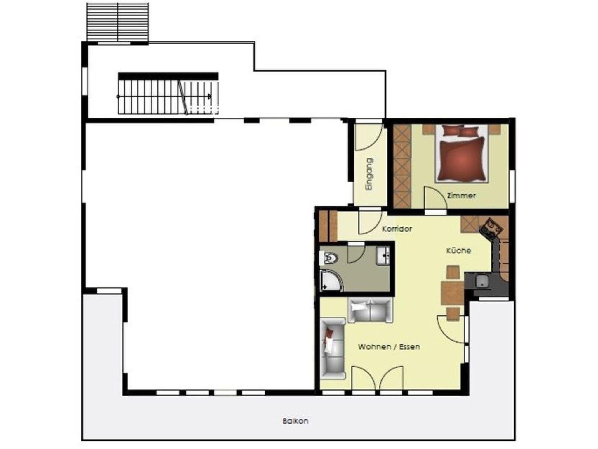In this flat you will find a pleasant living atmosphere, emphasised by the comfortable furnishings that will make your stay as pleasant as possible. Underfloor heating provides cosy warmth throughout the flat, while the darkenable bedroom (bed 180x200cm) and living room (sofa bed 180x200m) guarantee you a restful night's sleep. For your convenience, the kitchen is equipped with a ceramic hob, microwave, capsule coffee machine and dishwasher, so you can prepare and enjoy meals with ease.