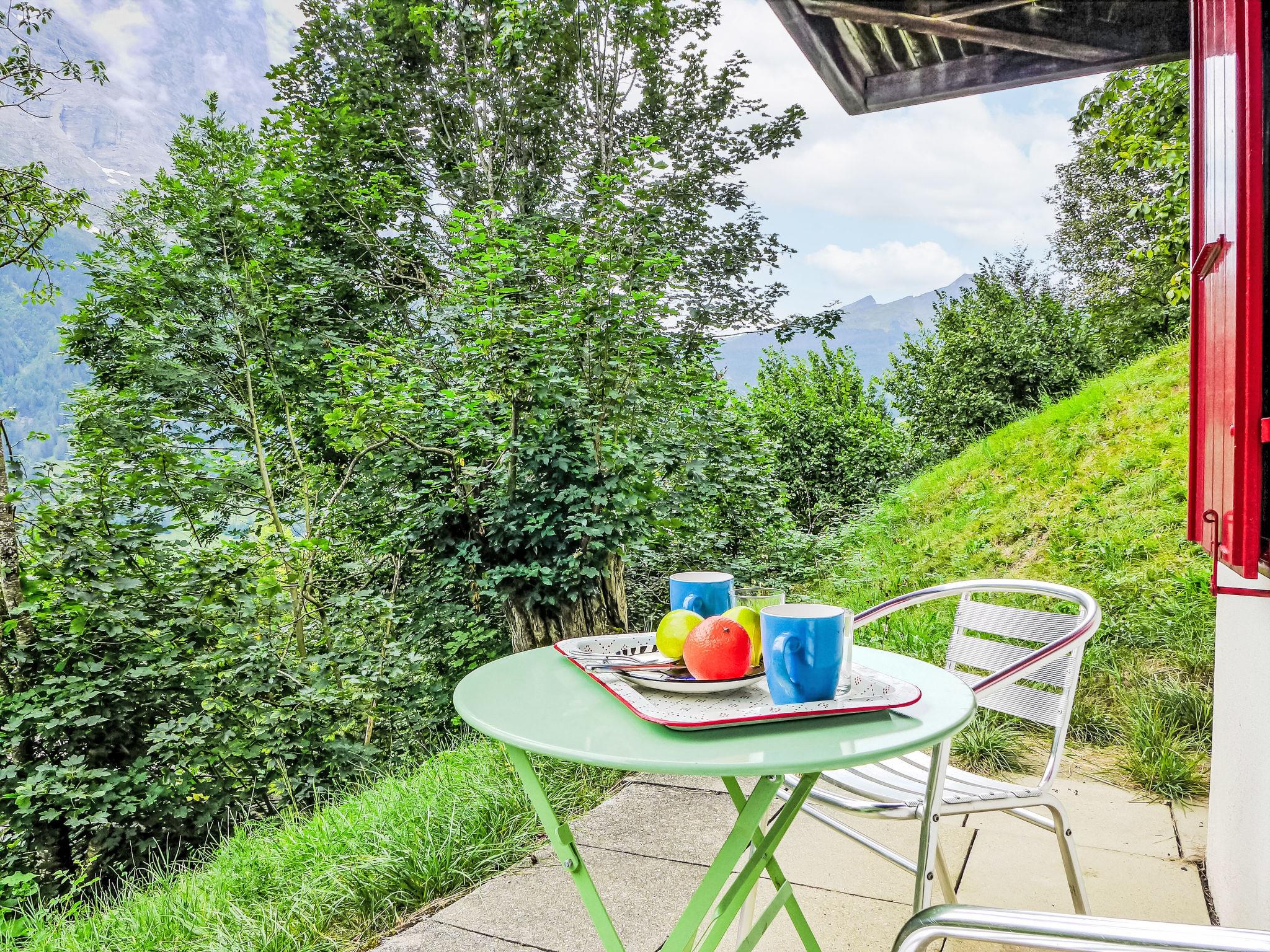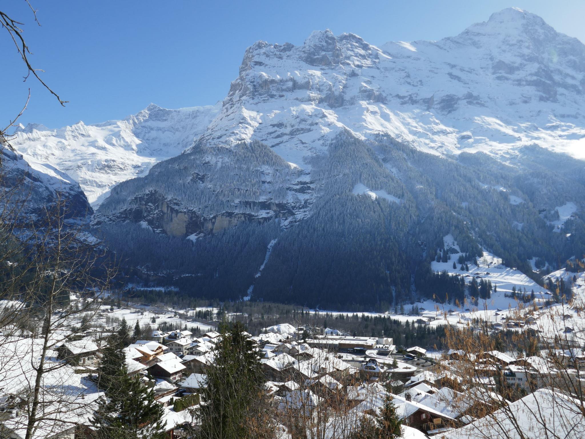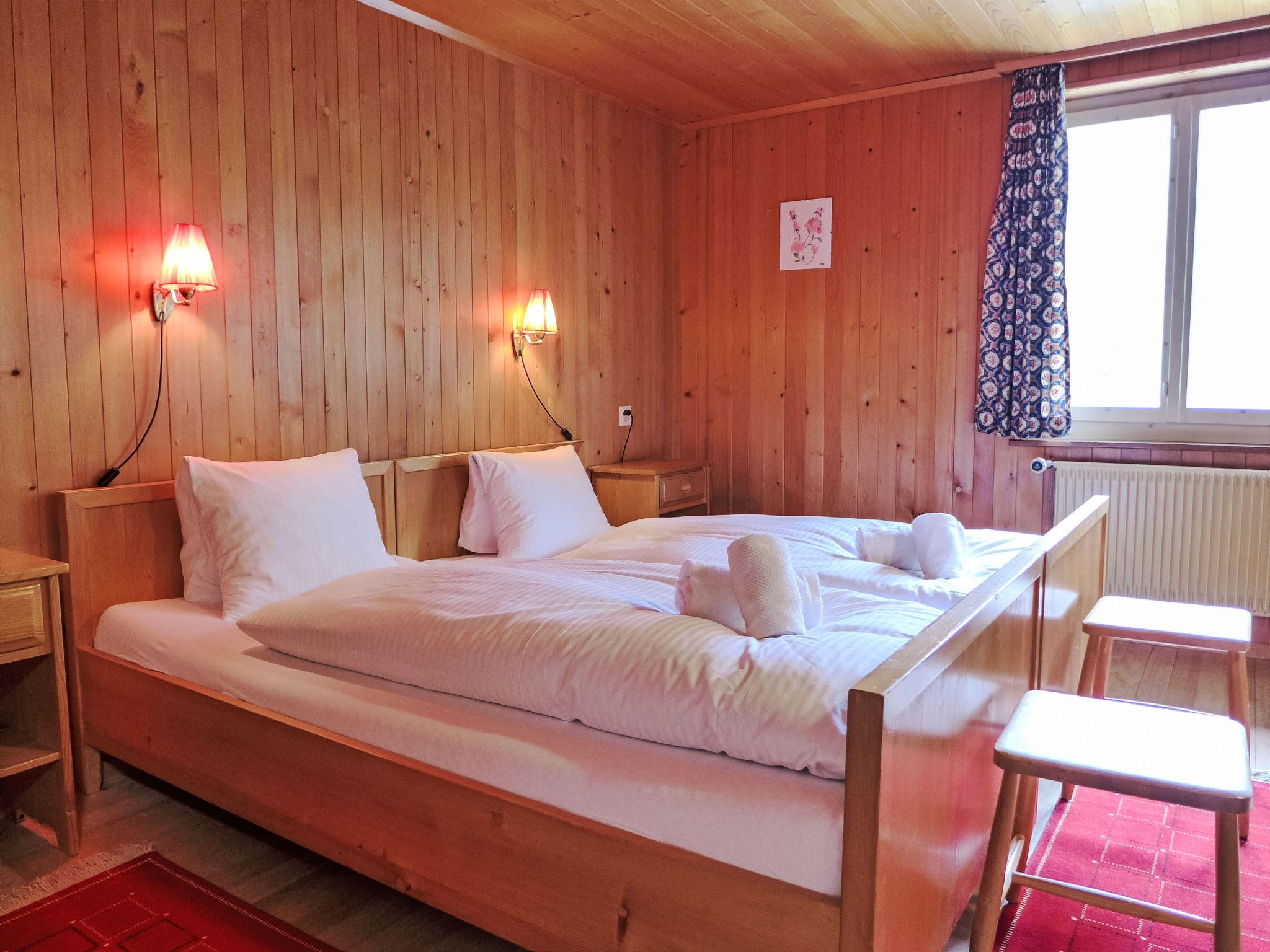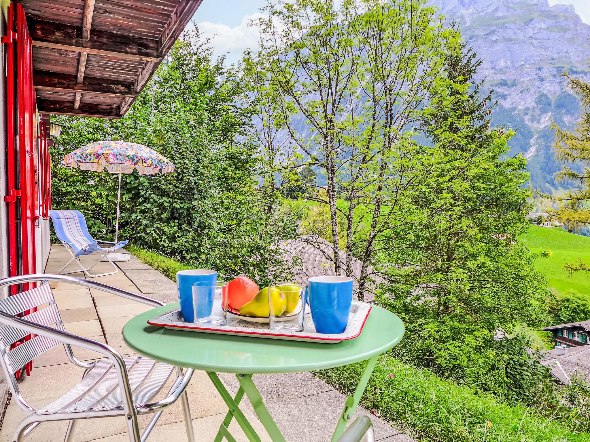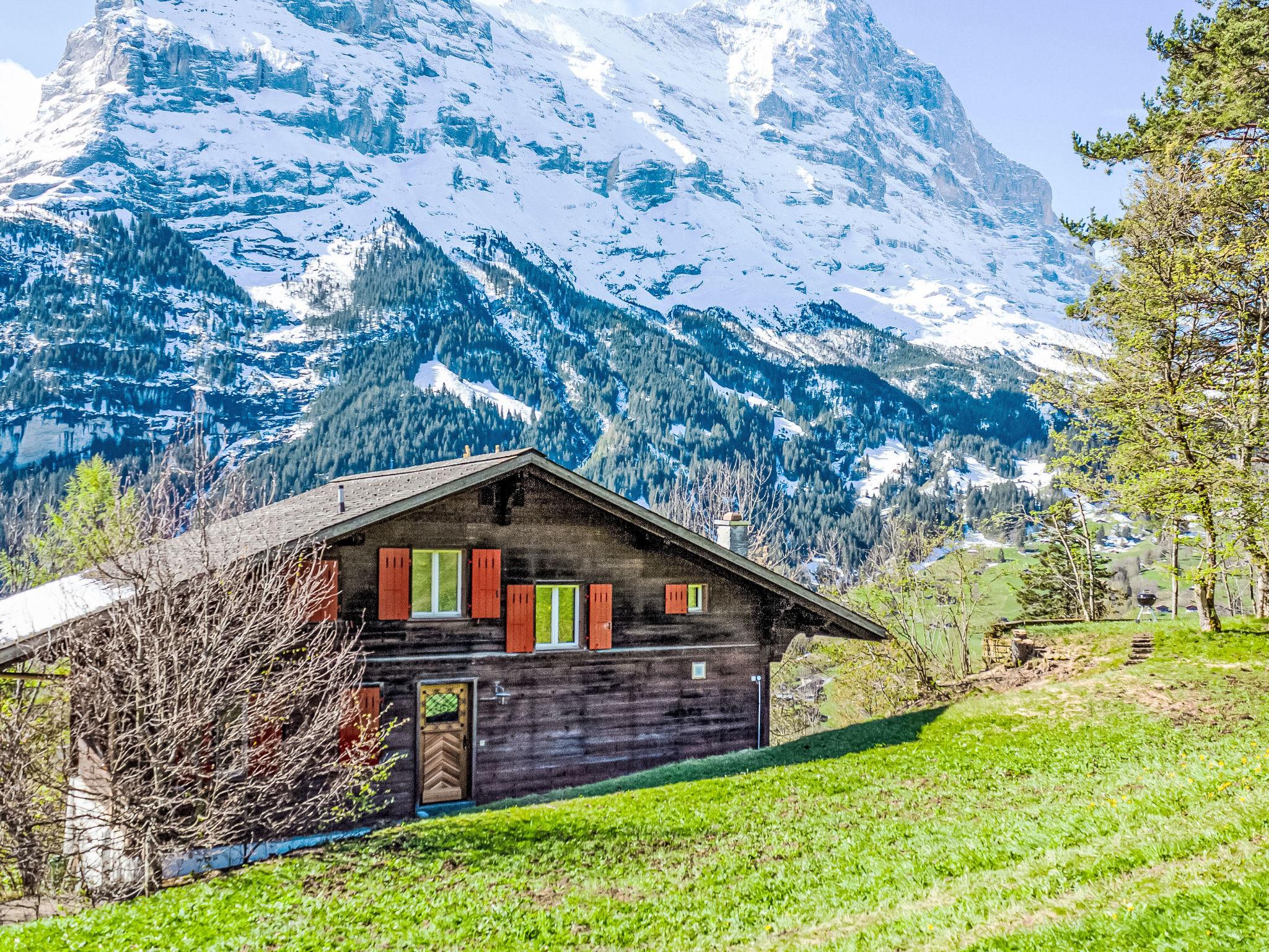 Cosy, rustic 2-family house "Chalet Colette", 2 storeys, detached, surrounded by meadows. In the district of Schybersboden, 550 m from the centre, in a quiet, sunny, elevated position on a slope, excellent location: right in the centre but still quiet, in the countryside, south facing position. For shared use: natural state property. Patio. In the house: storage room for skis, central heating system, washing machine, tumble dryer (for shared use, extra). Very steep motor access. In Winter: please take snow chains, 4x4 car recommended in winter. 80 m steep footpath to the house. Parking at 50 m. Shopping centre 550 m, restaurant 600 m, bakery 700 m, bicycle rental 1 km, 10 minute walk to the centre, bus stop "Kreuzweg Bus Nr. 122" 350 m, railway station "Grindelwald Dorf" 700 m, indoor swimming pool 300 m. Golf course (9 hole) 3.5 km, tennis 2 km, minigolf 800 m, sports centre 600 m, cable car 1 km, mountain railway 600 m, gondola lift 800 m, ski rental 300 m, ski bus stop 650 m, cross country ski track 2 km, children's playground 600 m. Well-known lakes can easily be reached: Thuner-/Brienzersee 18 km. Please note: no lift. Ski bus (free of charge). Free ski bus service to the ski region First, Männlichen/kl. Scheidegg.