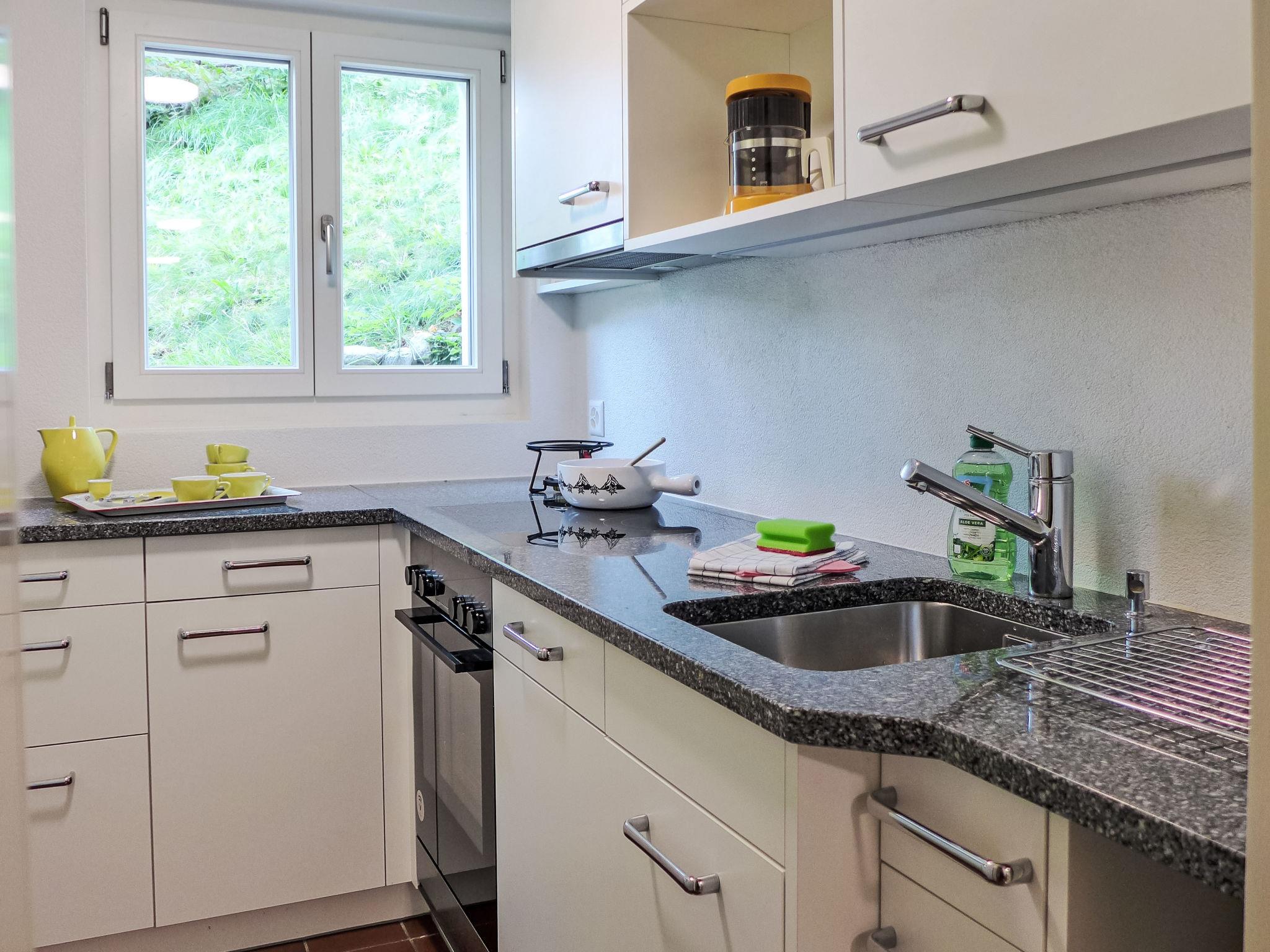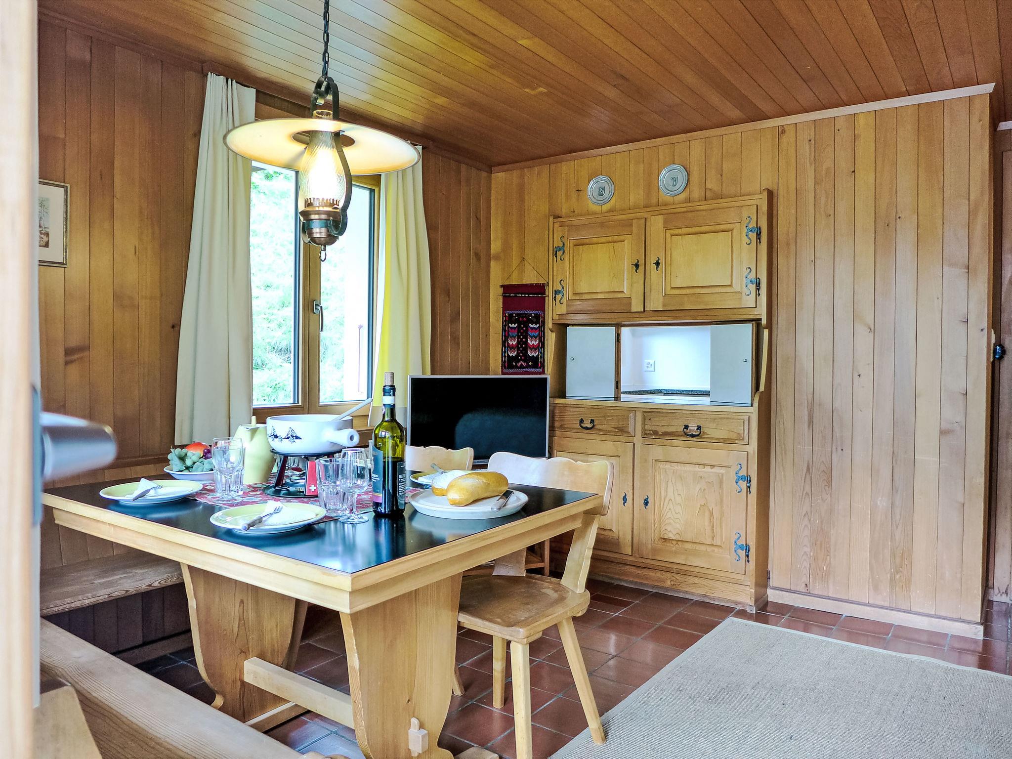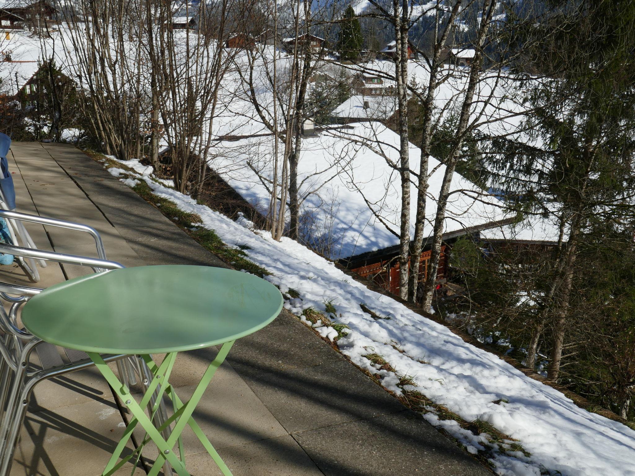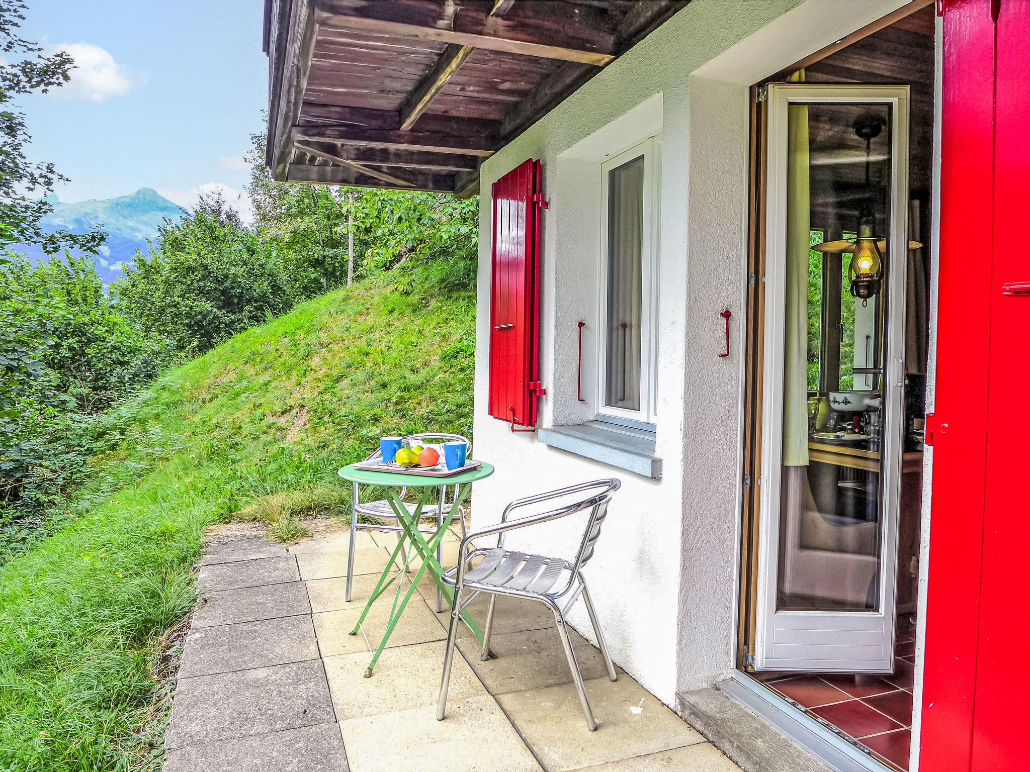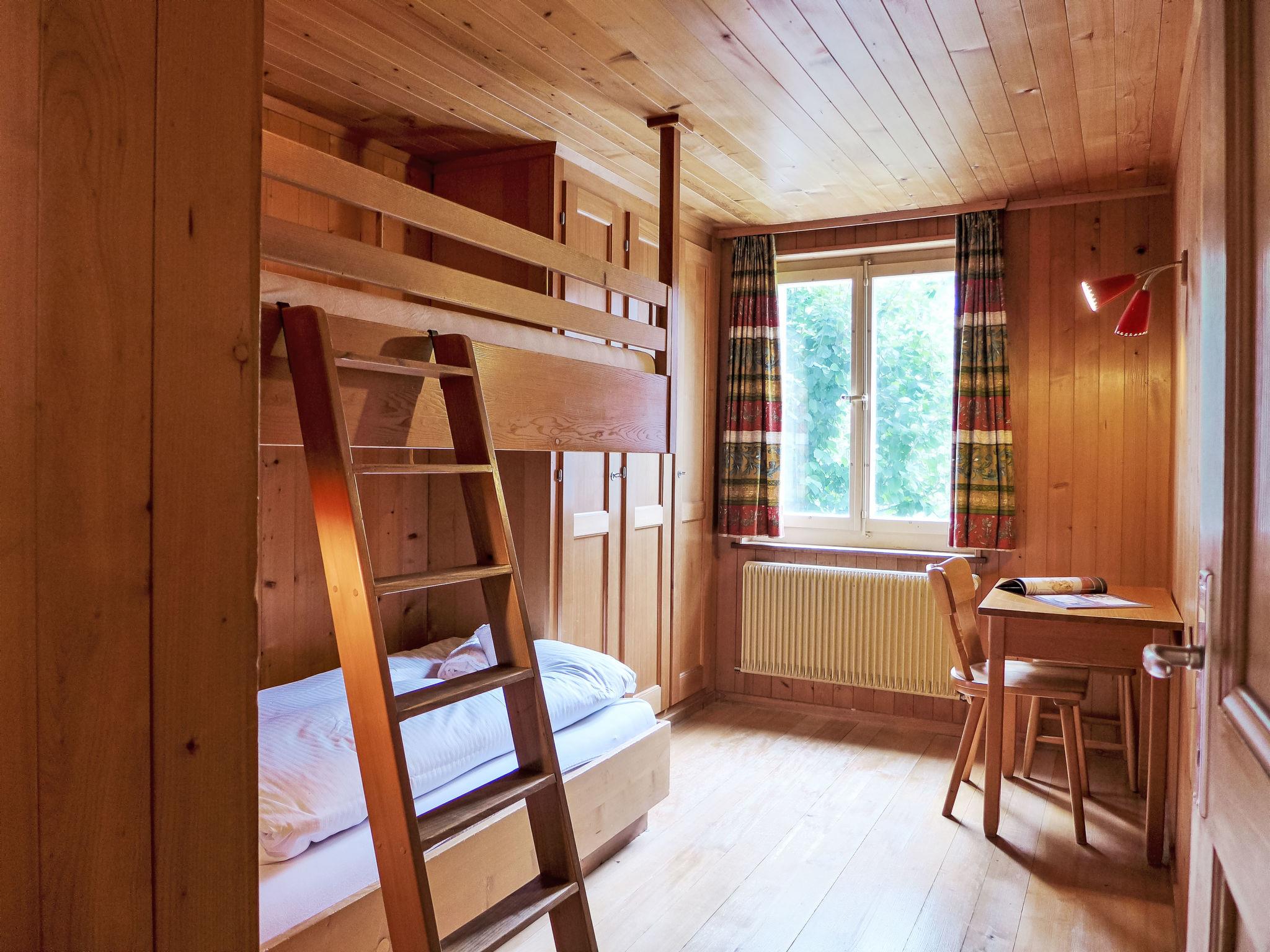 Cosy, rustic 2-family house "Chalet Colette", 2 storeys, detached, surrounded by meadows. In the district of Schybersboden, 550 m from the centre, in a quiet, sunny, elevated position on a slope, excellent location: right in the centre but still quiet, in the countryside, south facing position. For shared use: natural state property. Patio. In the house: storage room for skis, central heating system, washing machine, tumble dryer (for shared use, extra). Very steep motor access. In Winter: please take snow chains, 4x4 car recommended in winter. 80 m steep footpath to the house. Parking at 50 m. Shopping centre 550 m, restaurant 600 m, bakery 700 m, bicycle rental 1 km, 10 minute walk to the centre, bus stop "Kreuzweg Bus Nr. 122" 350 m, railway station "Grindelwald Dorf" 700 m, indoor swimming pool 300 m. Golf course (9 hole) 3.5 km, tennis 2 km, minigolf 800 m, sports centre 600 m, cable car 1 km, mountain railway 600 m, gondola lift 800 m, ski rental 300 m, ski bus stop 650 m, cross country ski track 2 km, children's playground 600 m. Well-known lakes can easily be reached: Thuner-/Brienzersee 18 km. Please note: no lift. Ski bus (free of charge). Free ski bus service to the ski region First, Männlichen/kl. Scheidegg.