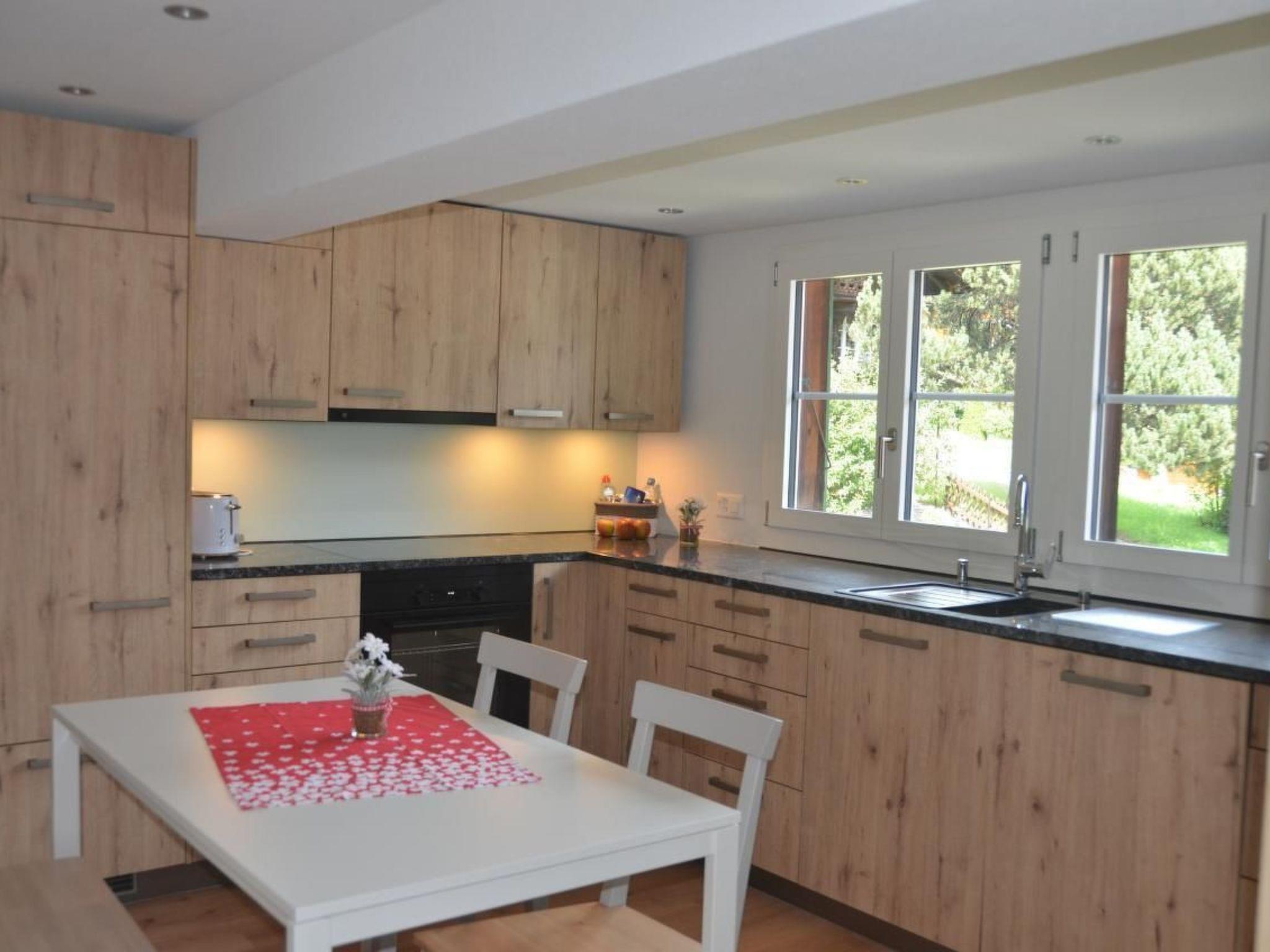 Die renovierte Whg 100Meter2 befindet sich im Dachgeschoss des Chalet Fluehbluemli. Die Wohnung mit neuer Küche ausgestattet mit modernen Geräten stellt den Mittelpunkt der Wohnung dar. Sie lädt ein zum Verweilen und gemütlichen Zusammensitzen. Das neue Bade-Zimmer ist modern ausgestattet. 3 Schlaf-Zimmer bieten genügend Platz für maximal 5 Personen. Das grosszügiges Wohn-Zimmer mit neuem Sofa, flach TV, UPC Box (Replay TV inklusive gratis W-LAN) bieten unseren Gästen einen angenehmen Aufenthalt. Hier befindet sich zusätzlich ebenfalls eine gemützliche Sitzecke. Inklusive EHP. Die Jungfraujoch-, Eigerexpress, Männlichenbahn und das Freibad Hellbach sind in 250 Meter erreichbar. Die Busstation ins Dorf befindet sich in unmittelbarer Nähe. (3 Minuten Fahrzeit). Exclusive Kur-Taxen 4.70 pro/Person und Tag.