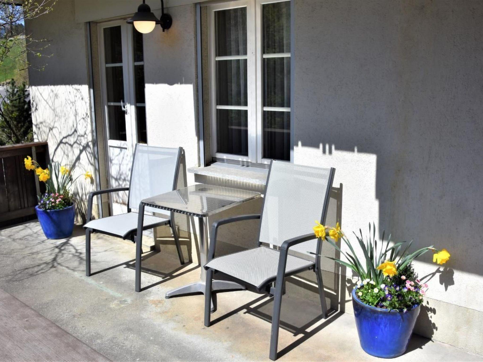 Cosy 2 room apartment, 34m2. Southfacing balcony with patio and wonderful view to the mountains, eat-in kitchen, bedroom with a doube bed. Shower/WC, Wifi, cable-TV, radio.