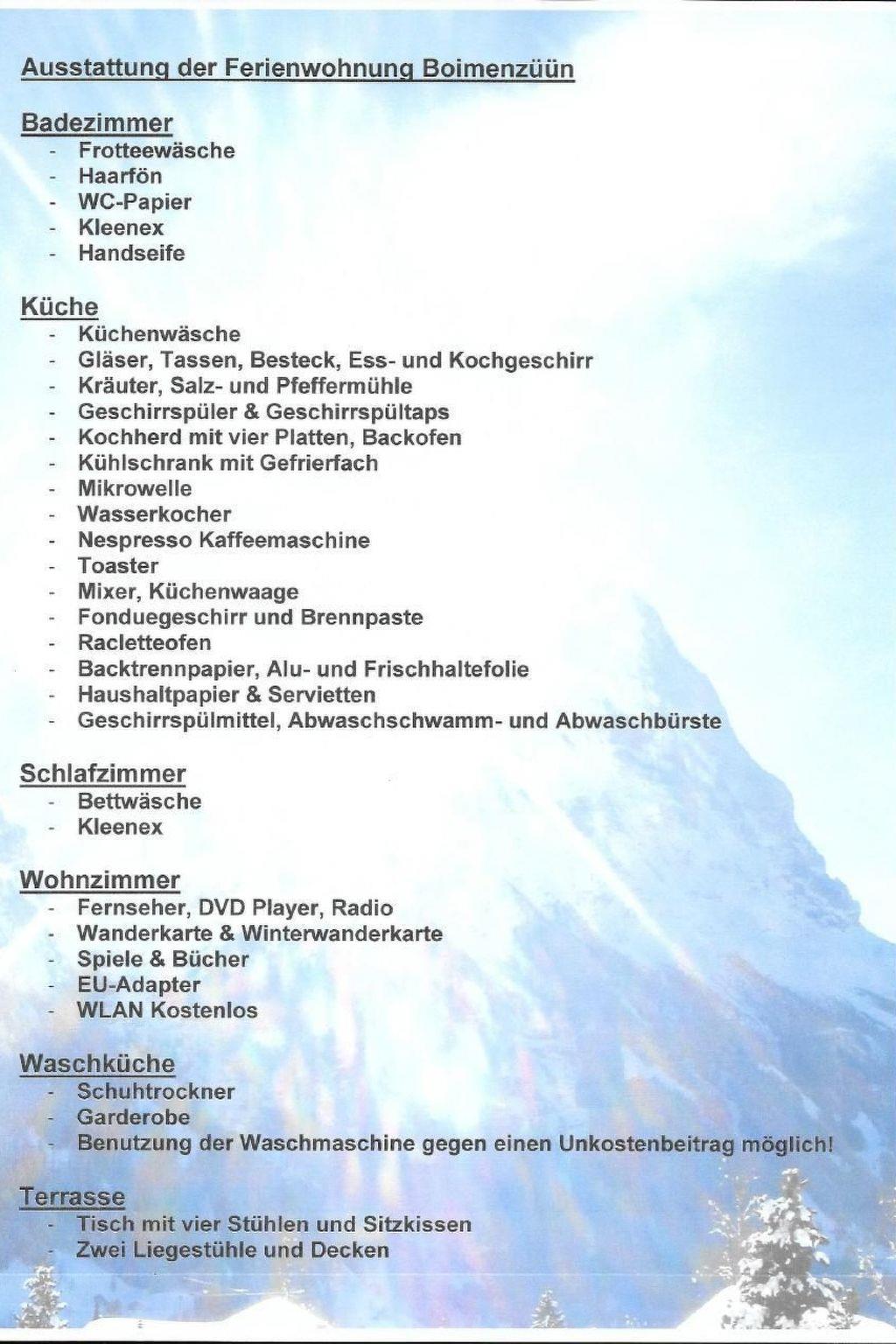 The chalet was newly built in 2012 and has a high standard of finish. The cosily furnished flat is located on the ground floor of the chalet. The kitchen is very comfortably equipped. Coffee, tea and spices are available free of charge.