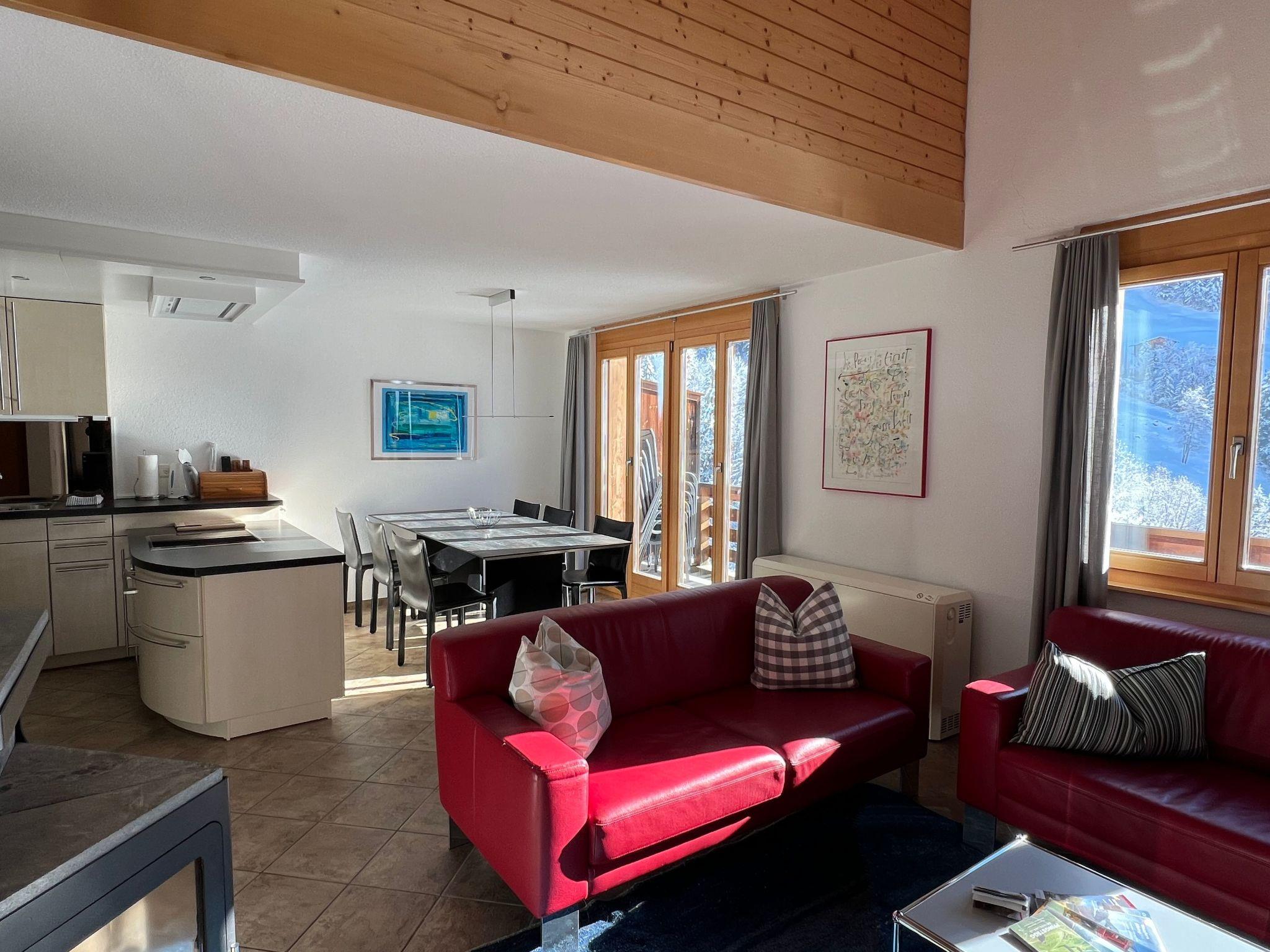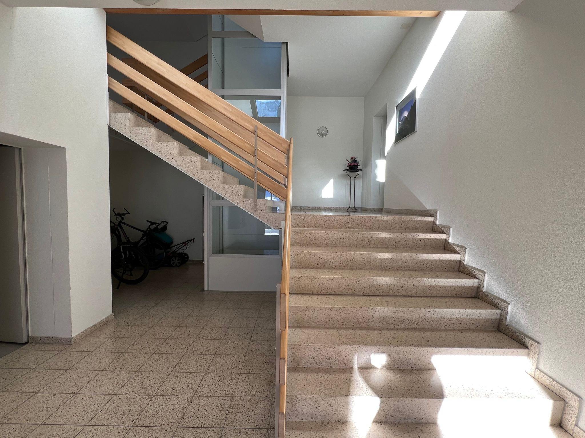4½-room attic flat on 2 floors, 120m2, in a multiple chalet, built in 1998. Quiet and central location. 3 bedrooms, modern kitchen with dish-washer and microwave, big living room with fireplace, TV-SAT/stereo system/W-Lan, 2 bathrooms, WC/shower/bath. Balcony, 2 parkings. Domestic animals are not allowed. Apartment only for non-smokers.
