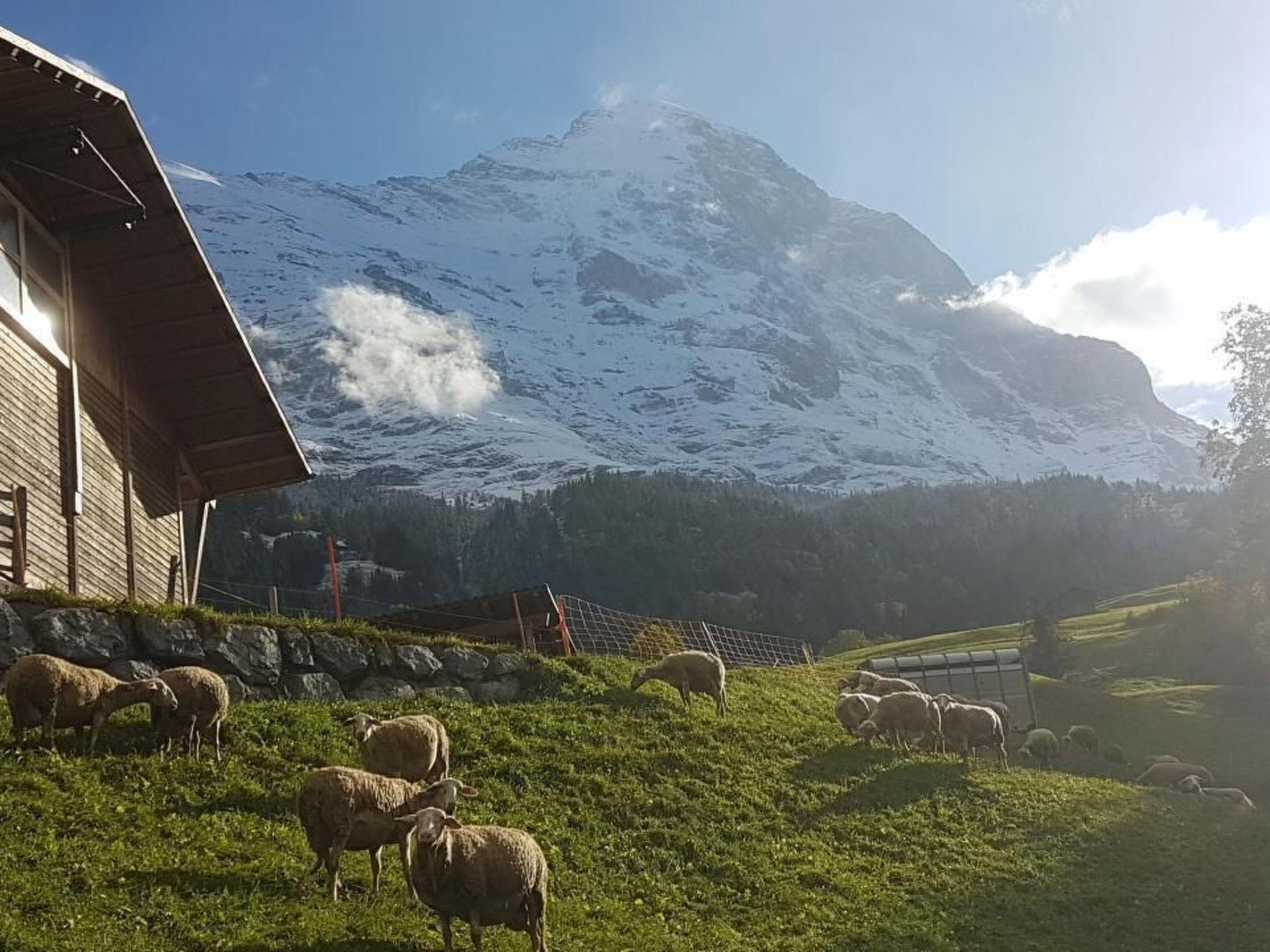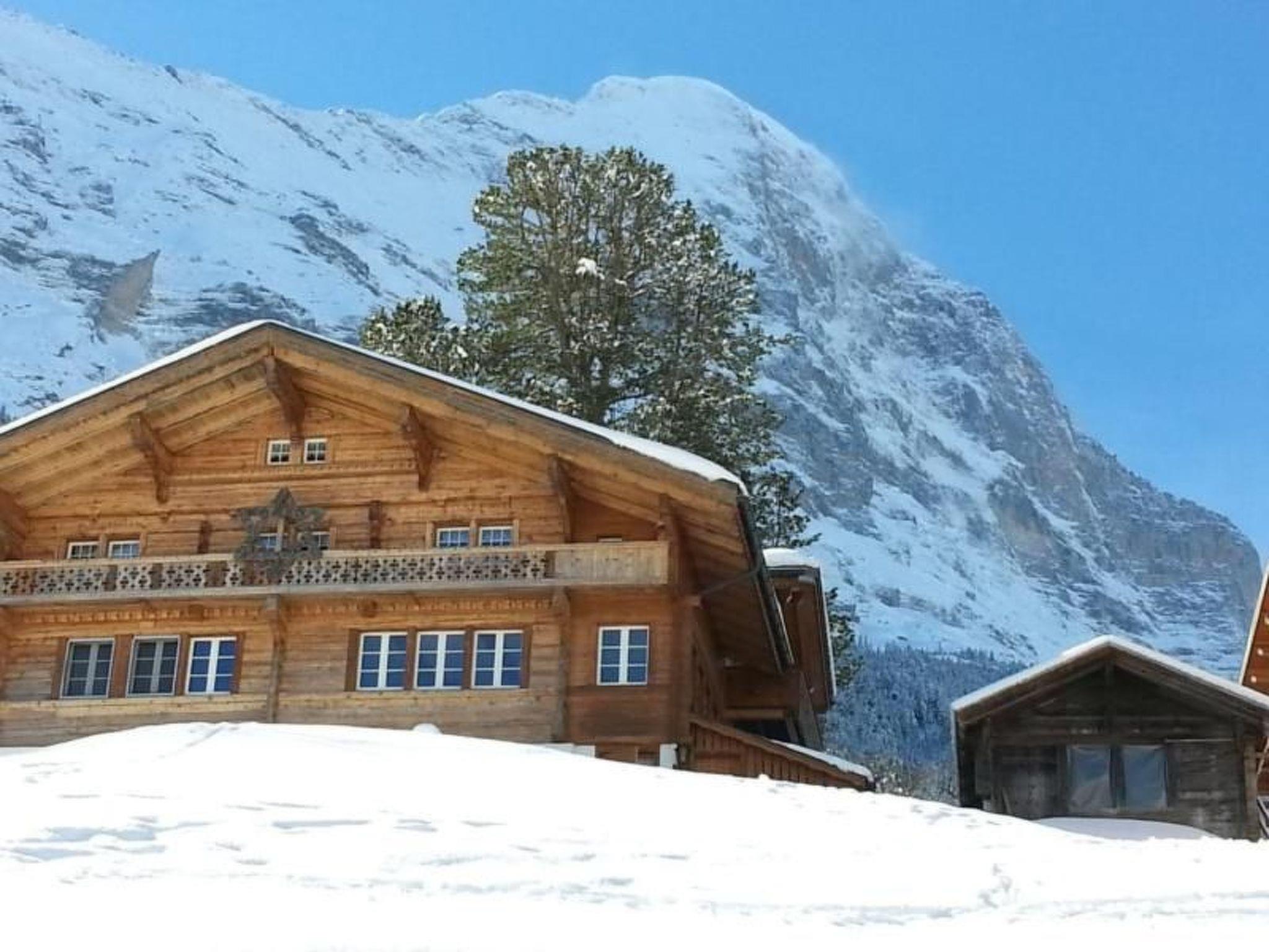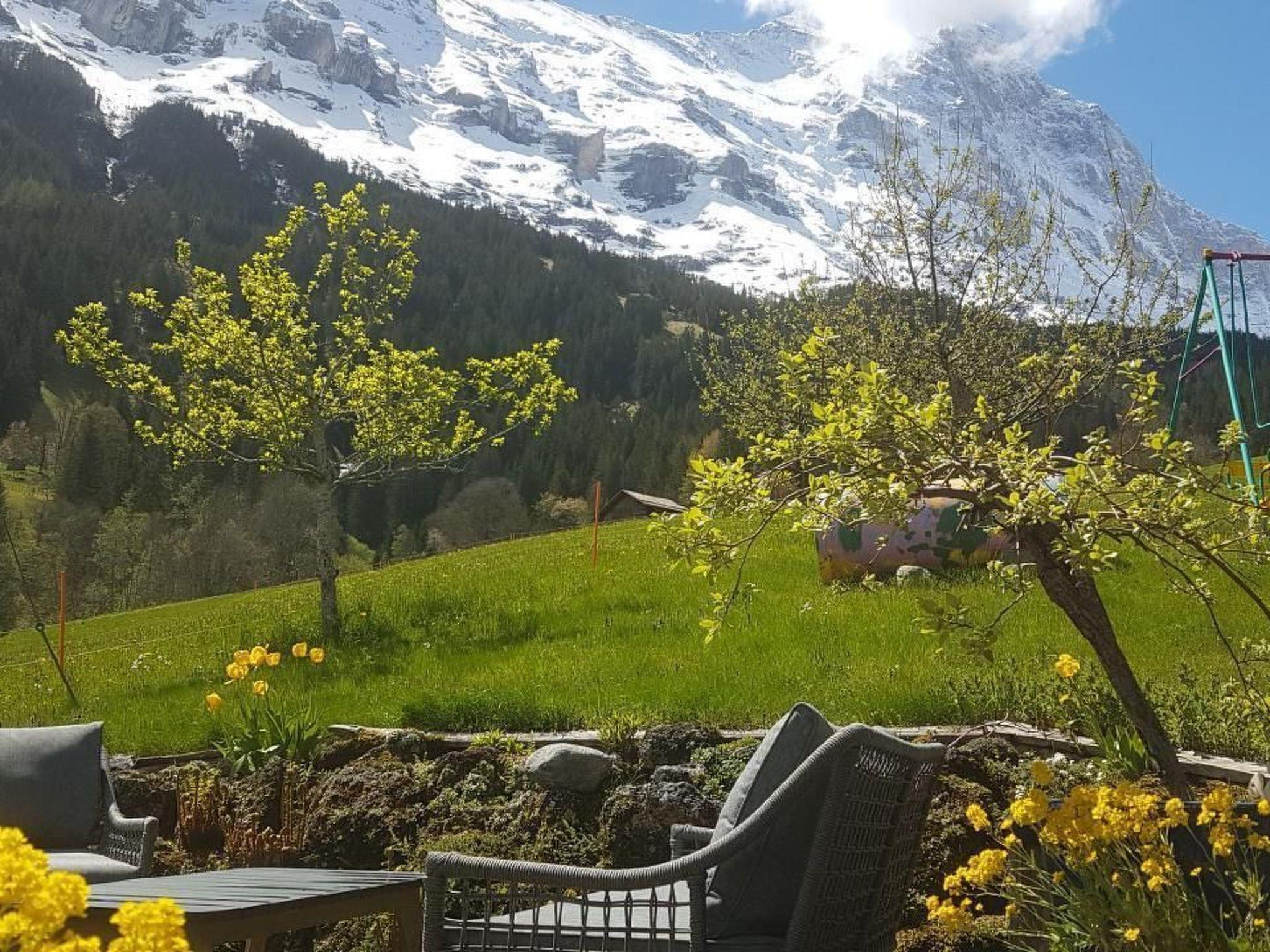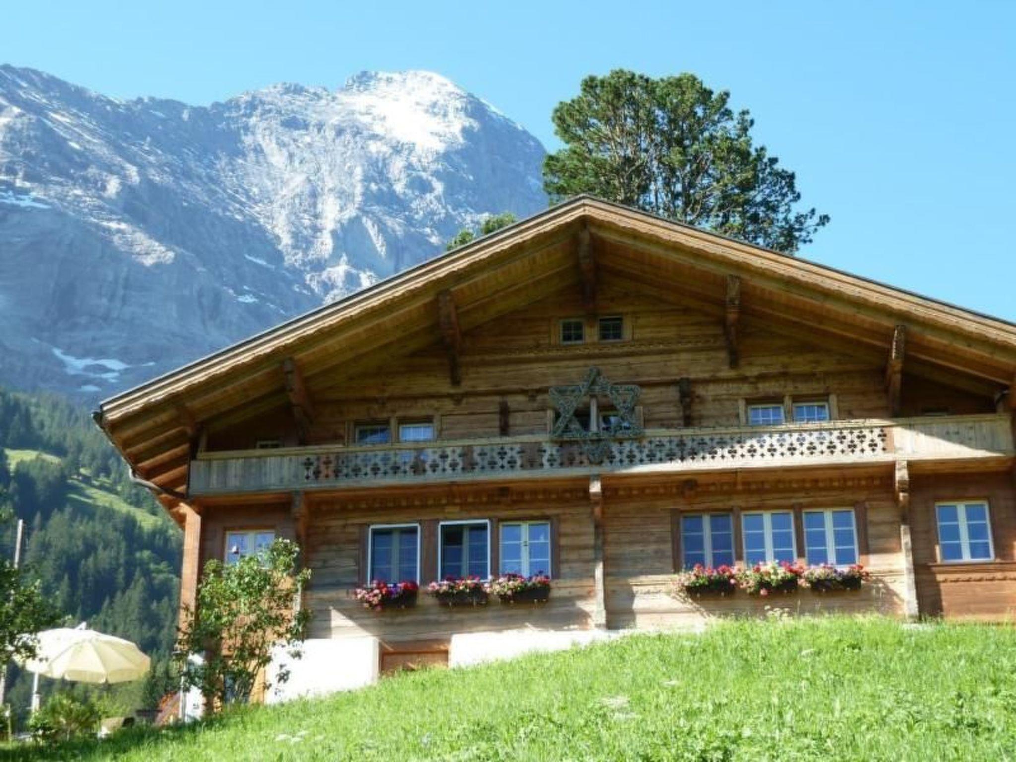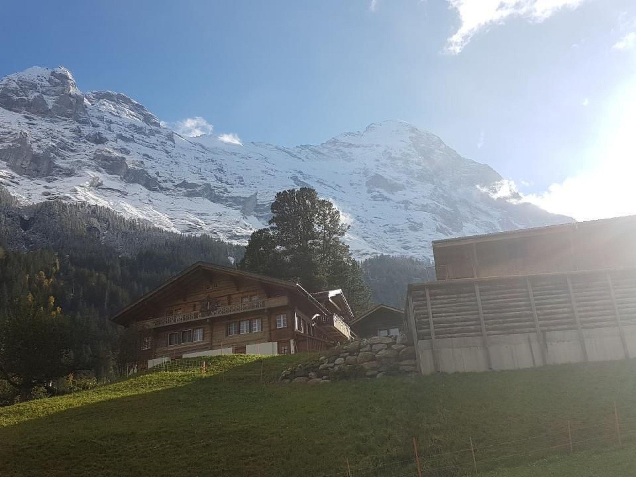 Traditional Grindelwaldner chalet in a quiet, idyllic location under the north face of the Eiger with a beautiful 360° view of Grindelwald and the mountains (Wetterhorn, Mettenberg, Eiger). Our chalet is located on ski run no. 22 from Kleine Scheidegg to Brandegg/Grund, 2 minutes from the bus station, 5 minutes from the nearest shopping centre. The 3.5 room apartment (4138) is on the 2nd floor of our 2 family house. It has a garden sitting area, a children's playground with tree house, swing and a parking place for your car next to our chalet. Non-smoking apartment, pets are not allowed.