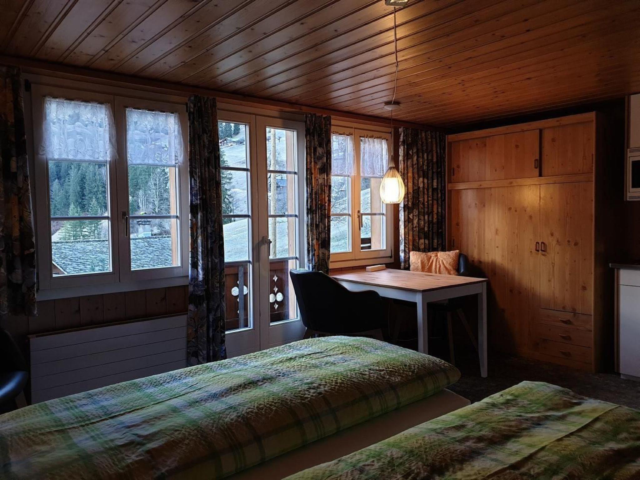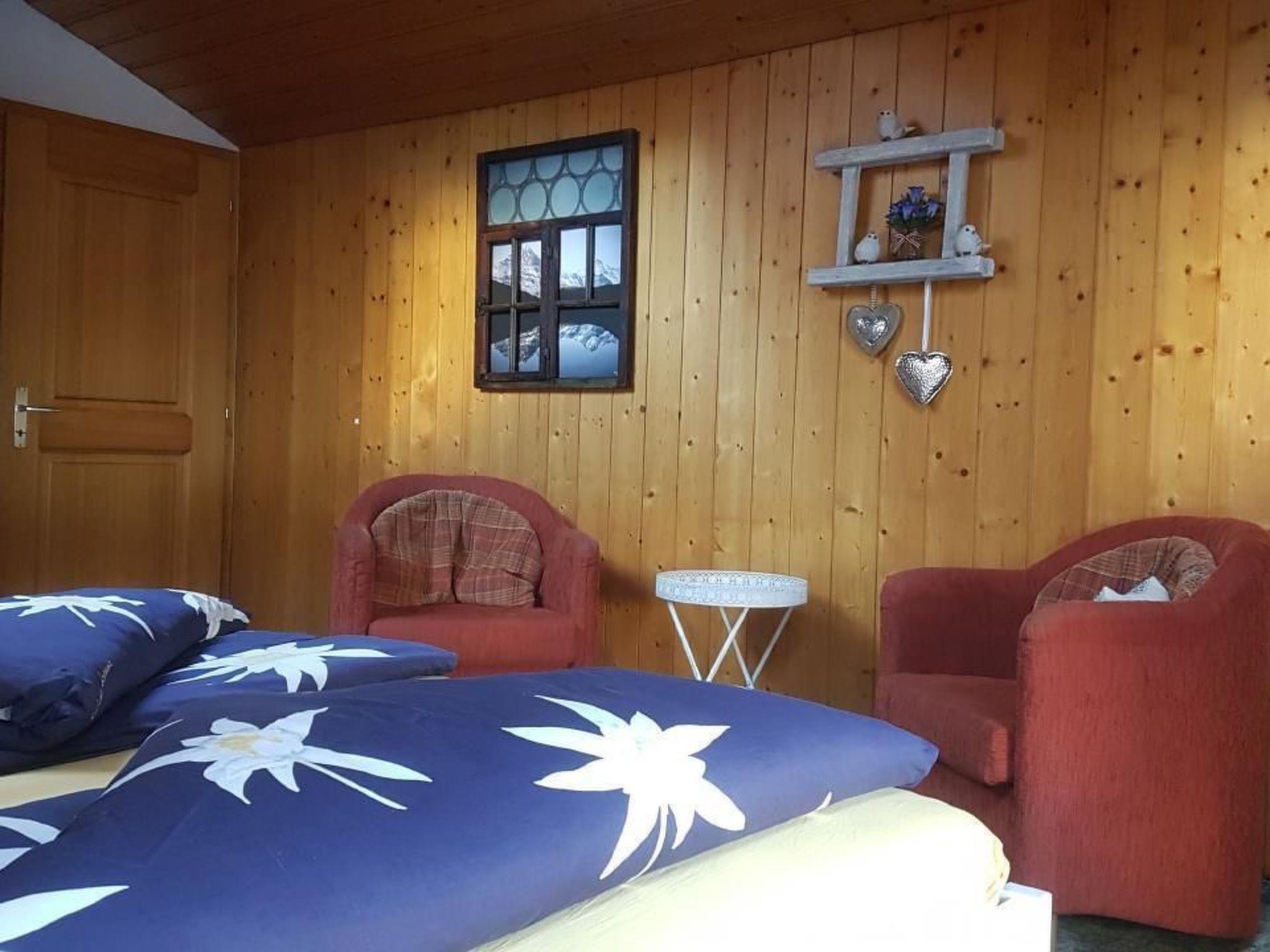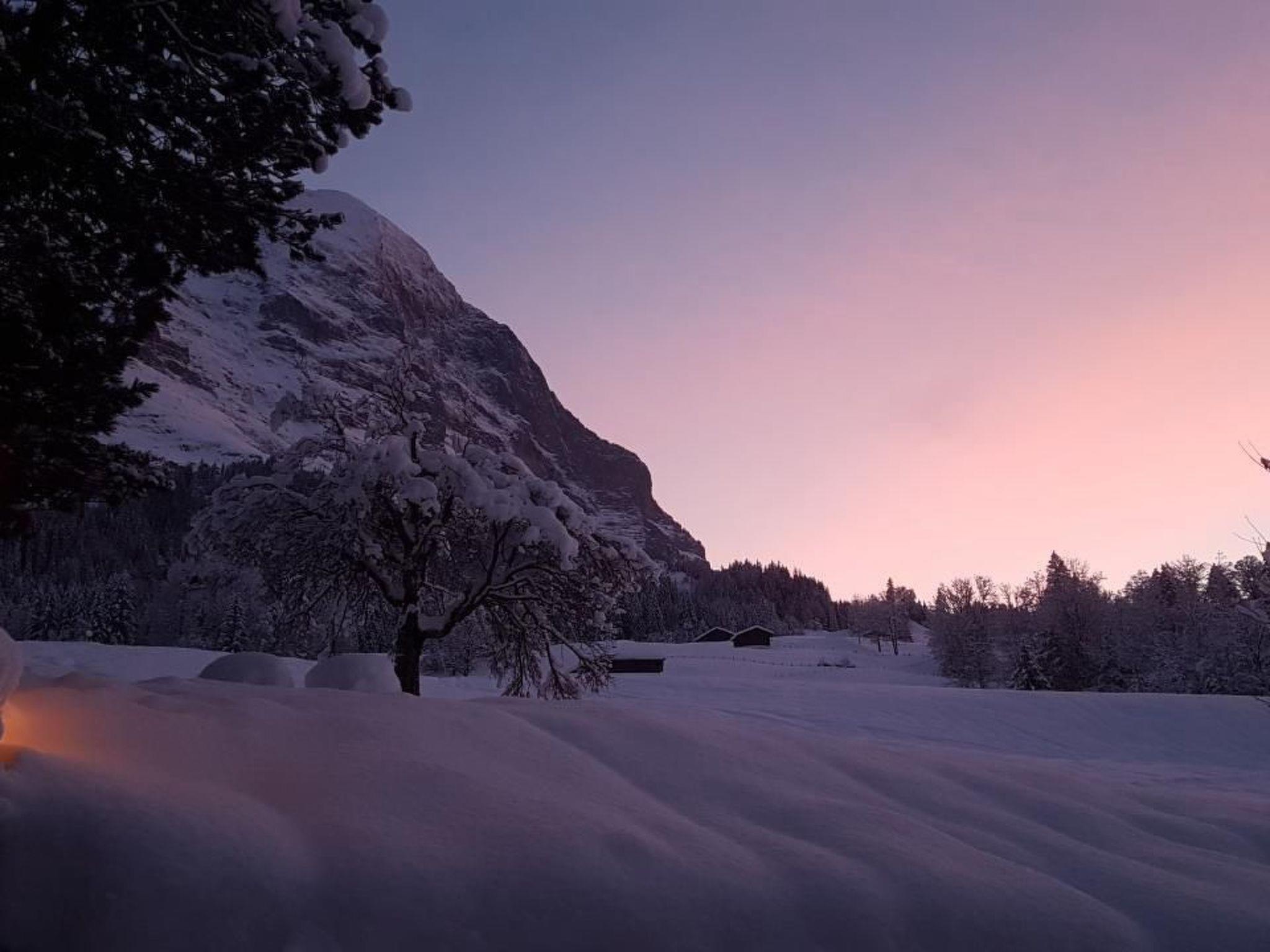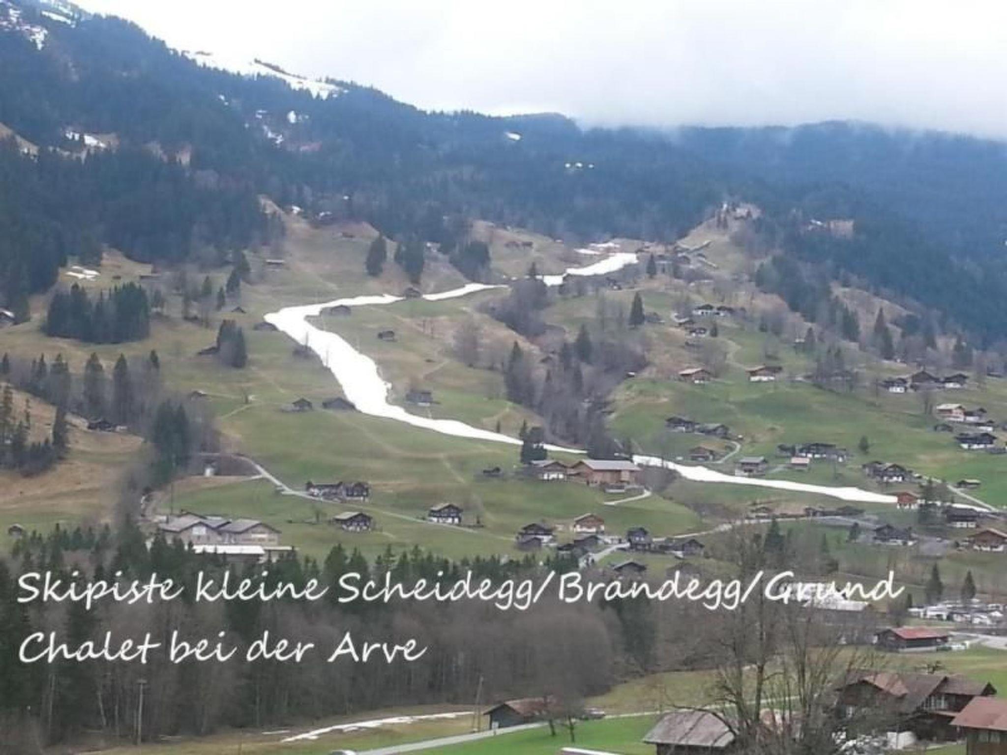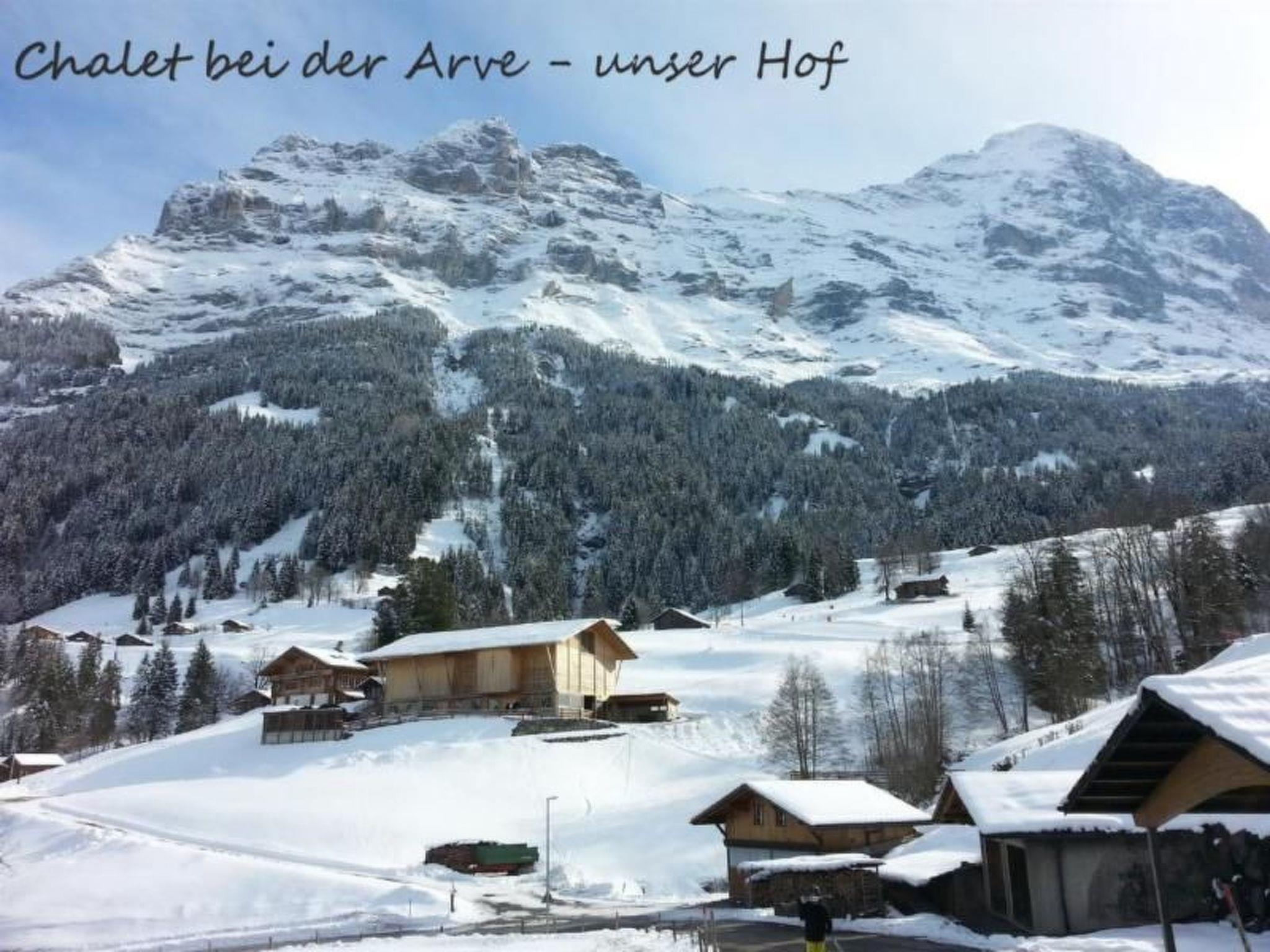 Traditional Grindelwaldner chalet in a quiet, idyllic location under the north face of the Eiger with a beautiful 360° view of Grindelwald and the mountains (Wetterhorn, Mettenberg, Eiger). Our chalet is located on ski run no. 22 from Kleine Scheidegg to Brandegg/Grund, 2 minutes from the bus station, 5 minutes from the nearest shopping centre. The 3.5 room apartment (4138) is on the 2nd floor of our 2 family house. It has a garden sitting area, a children's playground with tree house, swing and a parking place for your car next to our chalet. Non-smoking apartment, pets are not allowed.
