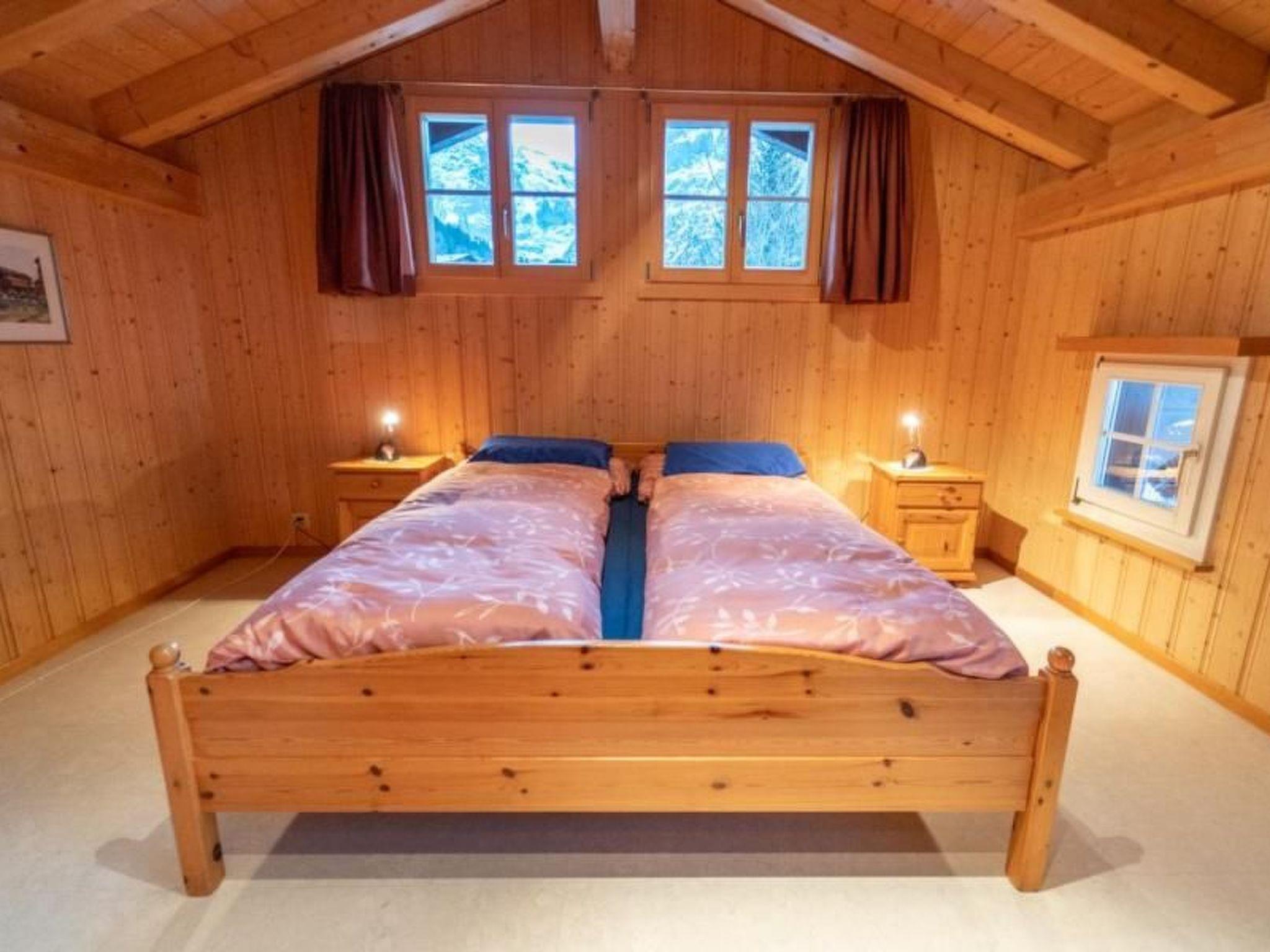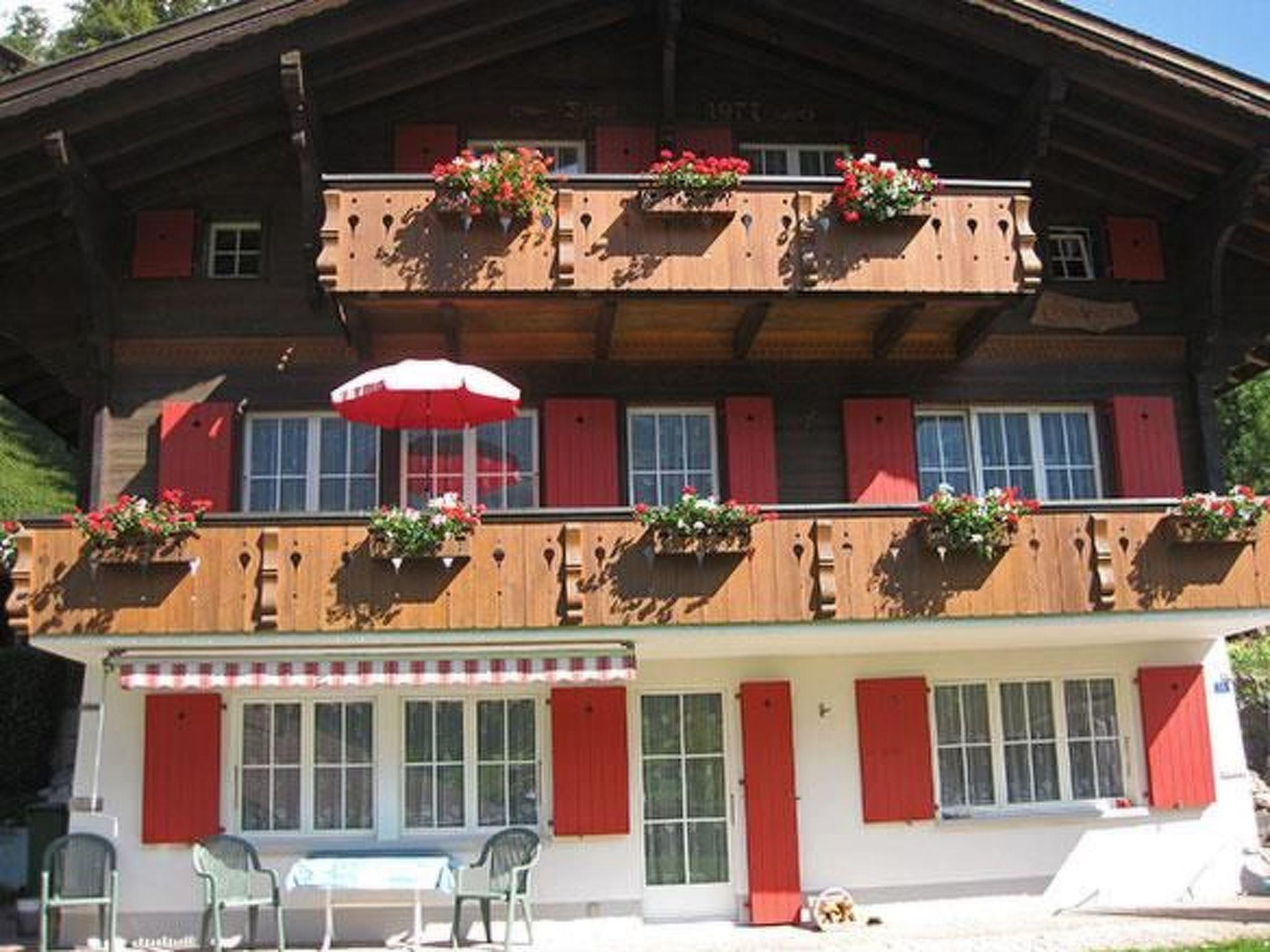 2-room apartment (90m2) on the 2nd floor of a three-family house, with balcony and garden seating area. There is a view of the mountains, it's in a quiet location and there is year-round access with parking space in front of the the house. Double bedroom with armchair. Living room with upholstered suite and lounge table, pine furniture, fireplace, TV/radio/ internet. Modern kitchen with dining/living room, dishwasher, microwave, glass ceramic, hot air oven. Large shower. Additional sleeping facilities in the living room. NON SMOKING ONLY! The house is in a very quiet residential area and yet the BOB to Interlaken or to Grindelwald can be reached in 5 minutes as well as to the Männlichenbahn and Jungfraubahn. For the skis there is a place in the garage.