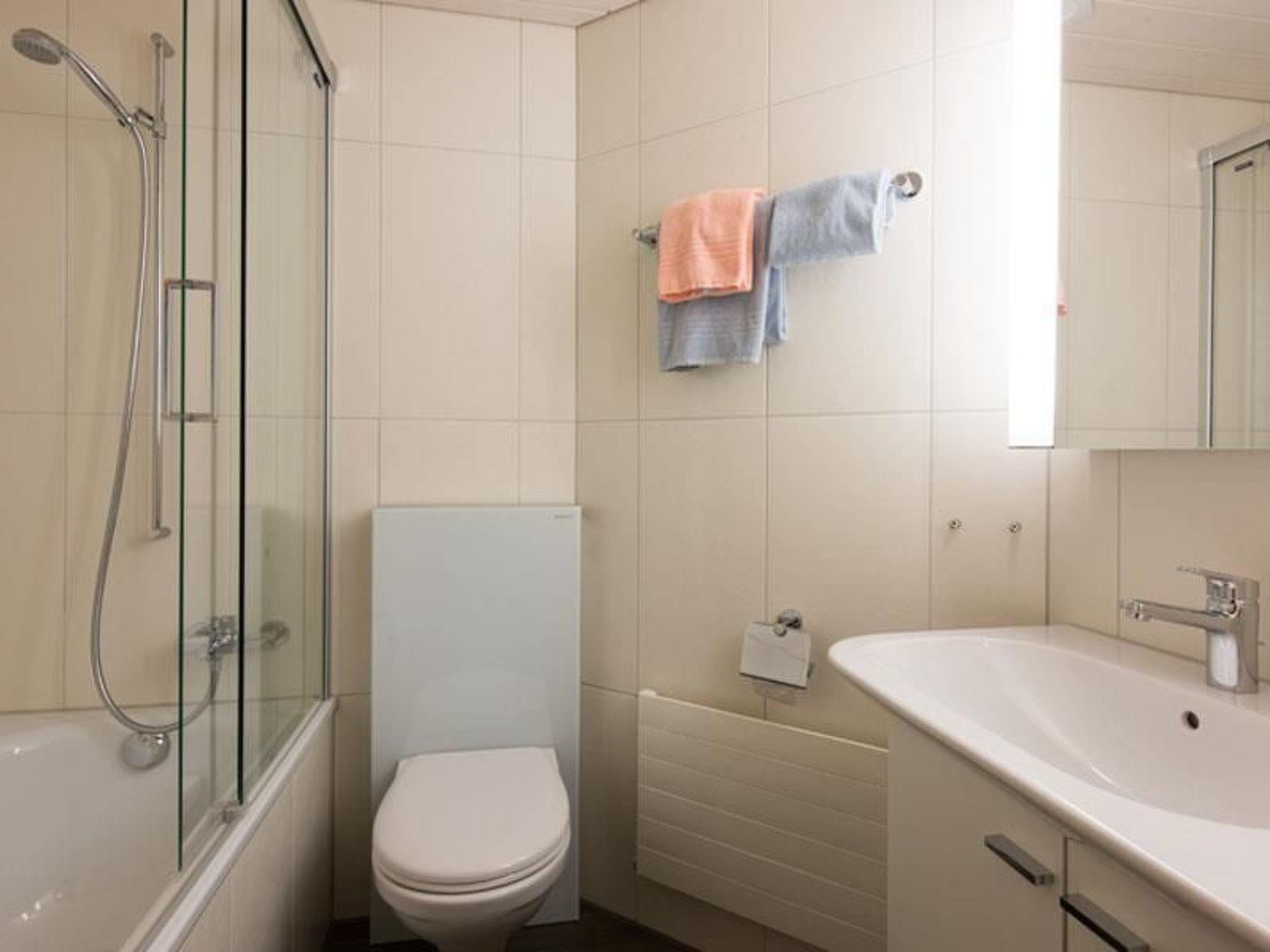 The 2.5-room flat is on the ground floor and has 55m2. It has a separate, well-equipped, modern kitchen. The living / dining room is very cosy. It has a bedroom with a double bed. Bathroom with bath/shower/WC. Satellite TV, radio, Internet/W-LAN. The flat has a beautiful seating area with its own sunbathing lawn. Direct view of the beautiful mountain range.